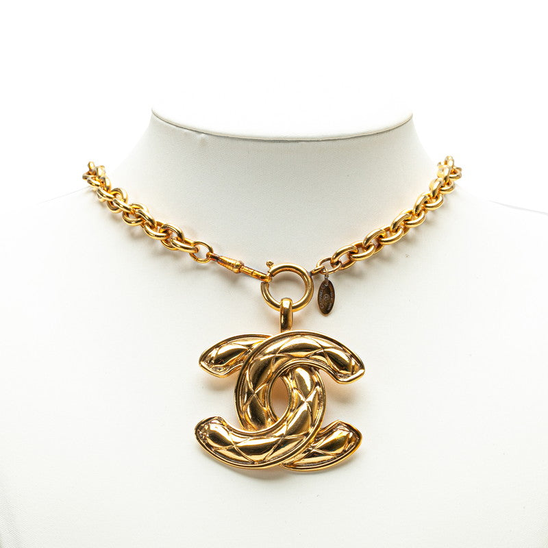 Chanel Quilted CC Logo Pendant Necklace Metal Necklace in Good condition