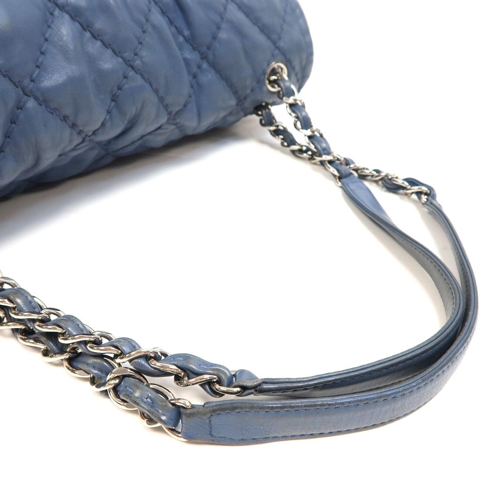 Elevate your style with the iconic Chanel Quilted CC SHW Chain Shoulder Bag in luxurious calfskin leather. The stunning blue hue adds a pop of color to any outfit, making a statement wherever you go. The classic quilted design and silver-tone hardware exude timeless elegance and sophistication.