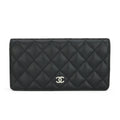 Chanel Quilted Classic Long Flap Yen Wallet Black Caviar Silver Hardware 2014