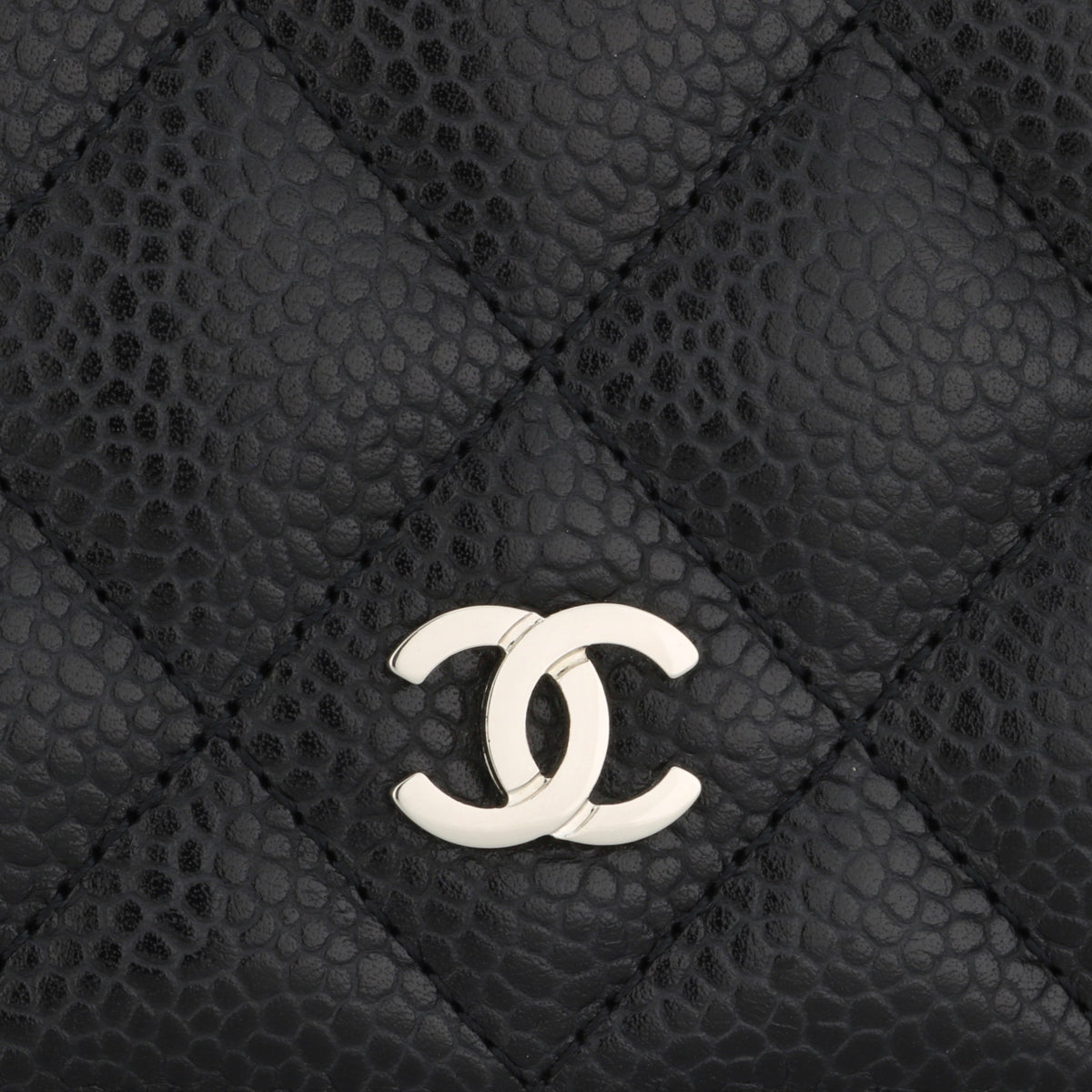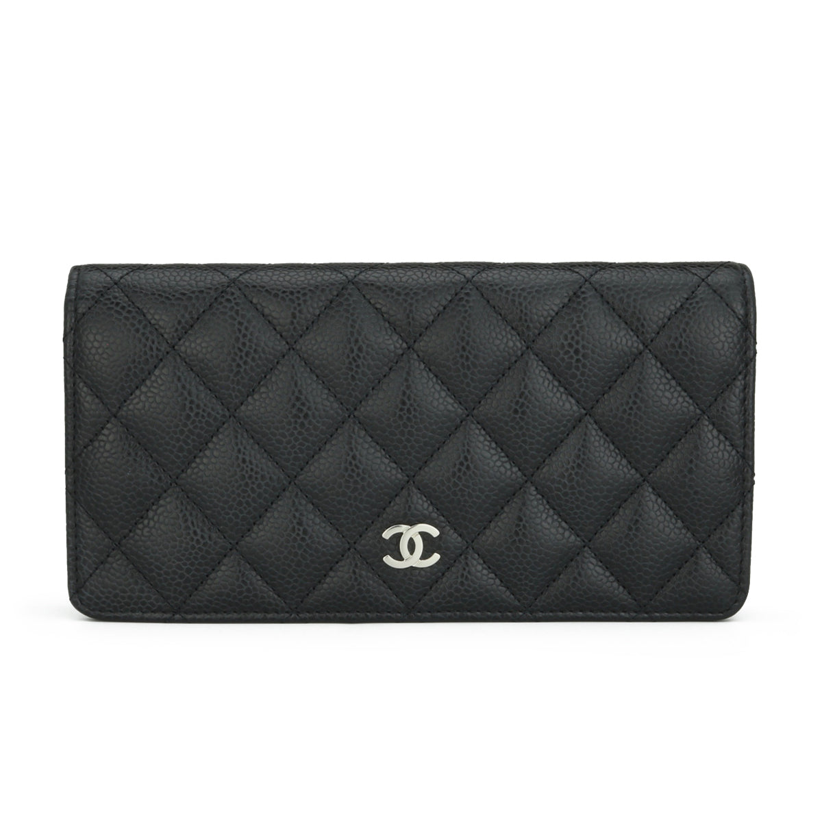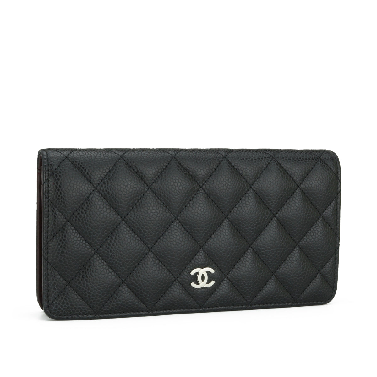 Chanel Quilted Classic Long Flap Yen Wallet in Black Caviar with Silver Hardware 2014.