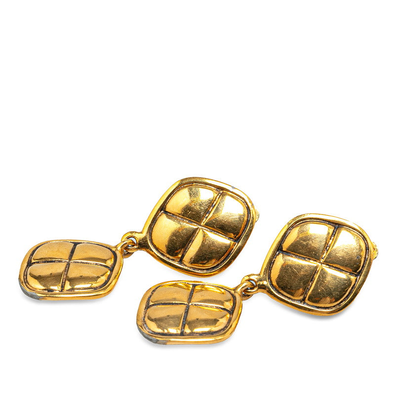 Chanel Quilted Diamond Shaped Drop Earrings Metal Earrings in Good condition