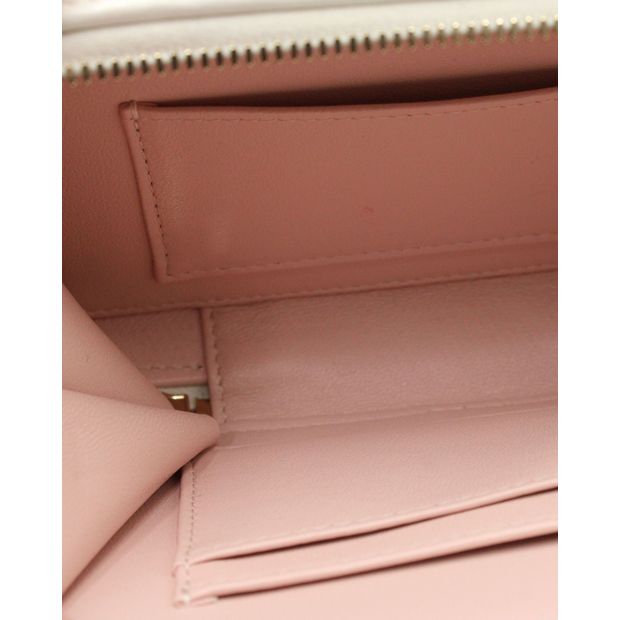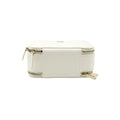 A limited-edition quilted leather bag from the Pre-Fall 2016 Collection, the Double Zip Small Vanity Case is crafted from white polished lambskin, smooth calfskin and shiny patent leather.