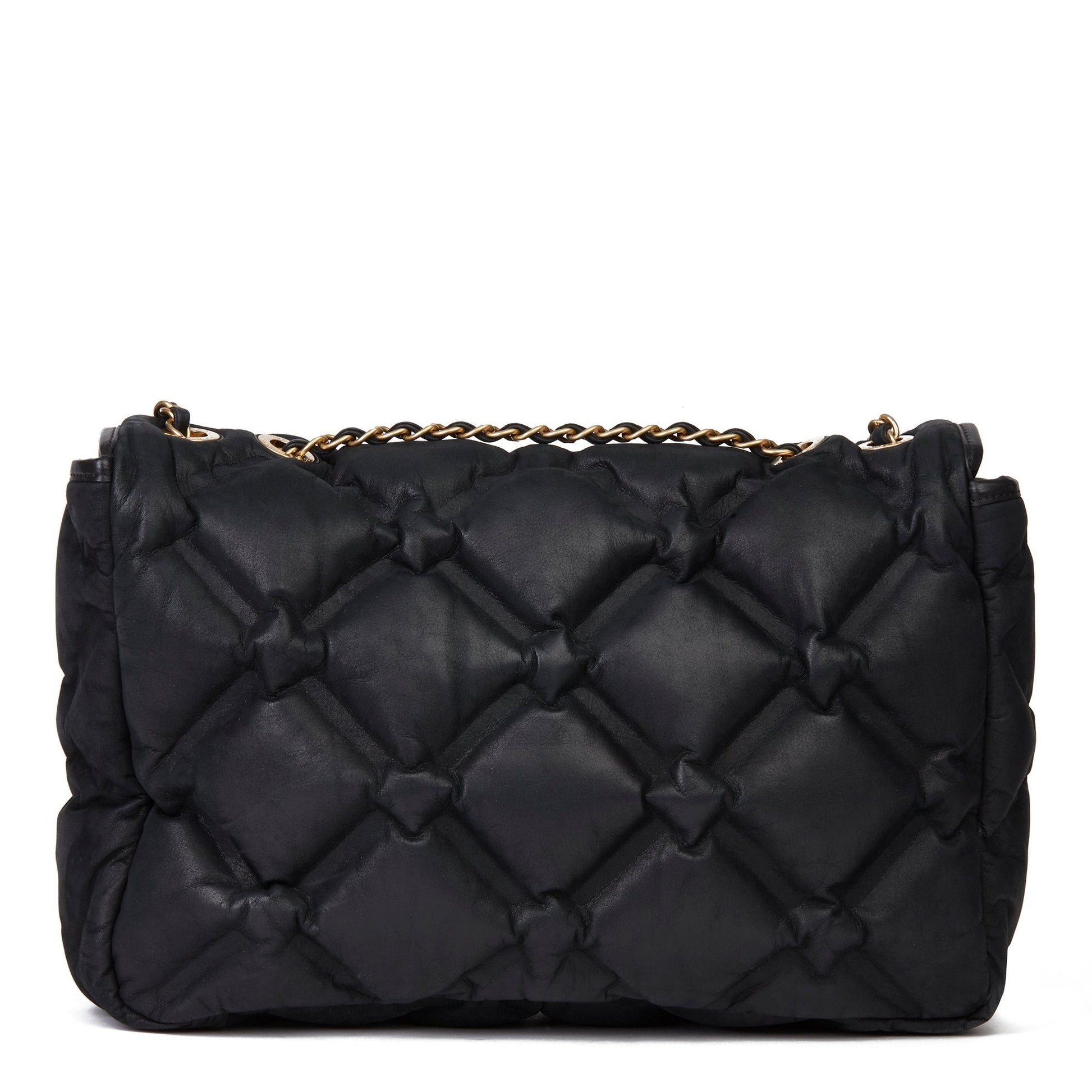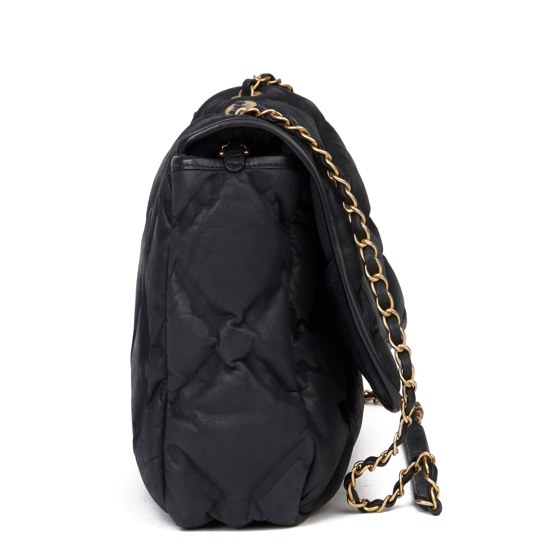 CHANEL QUILTED IRIDESCENT CALFSKIN LEATHER JUMBO CHESTERFIELD FLAP BAG-BLACK