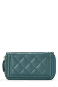 Chanel wallet crafted in green quilted lambskin, finished with signature Boy bag border and 'CC' hardware.