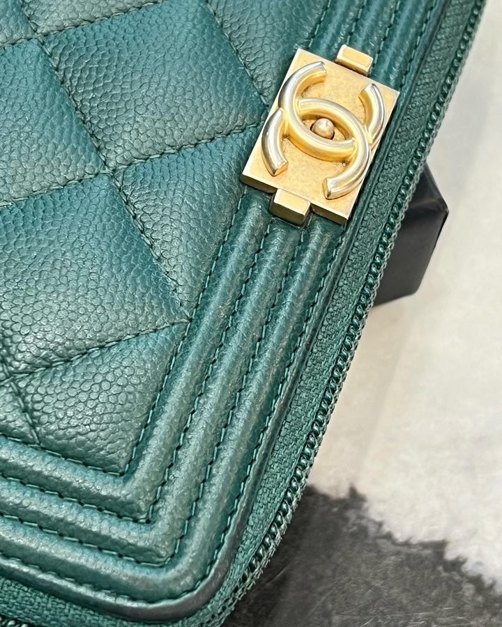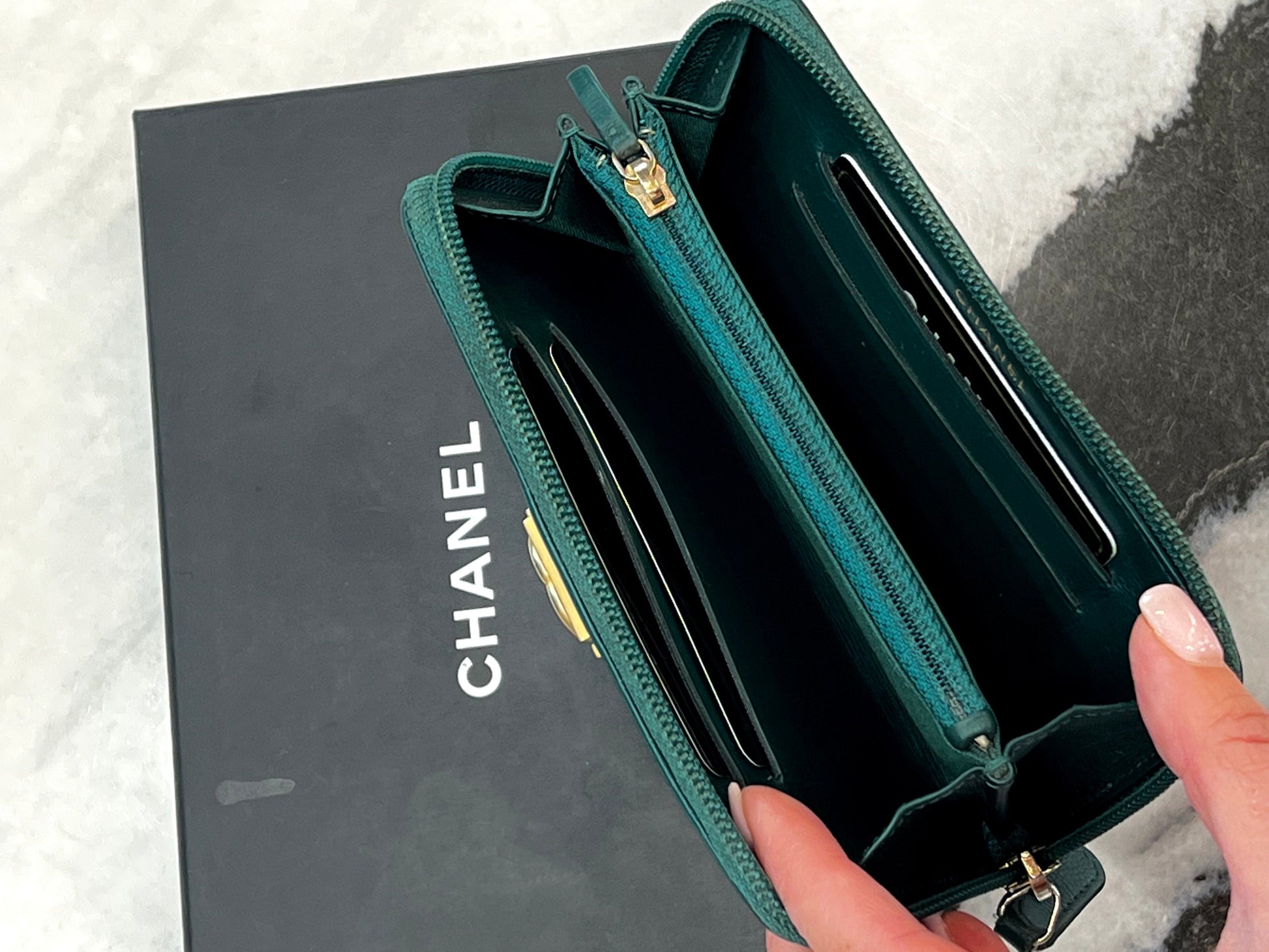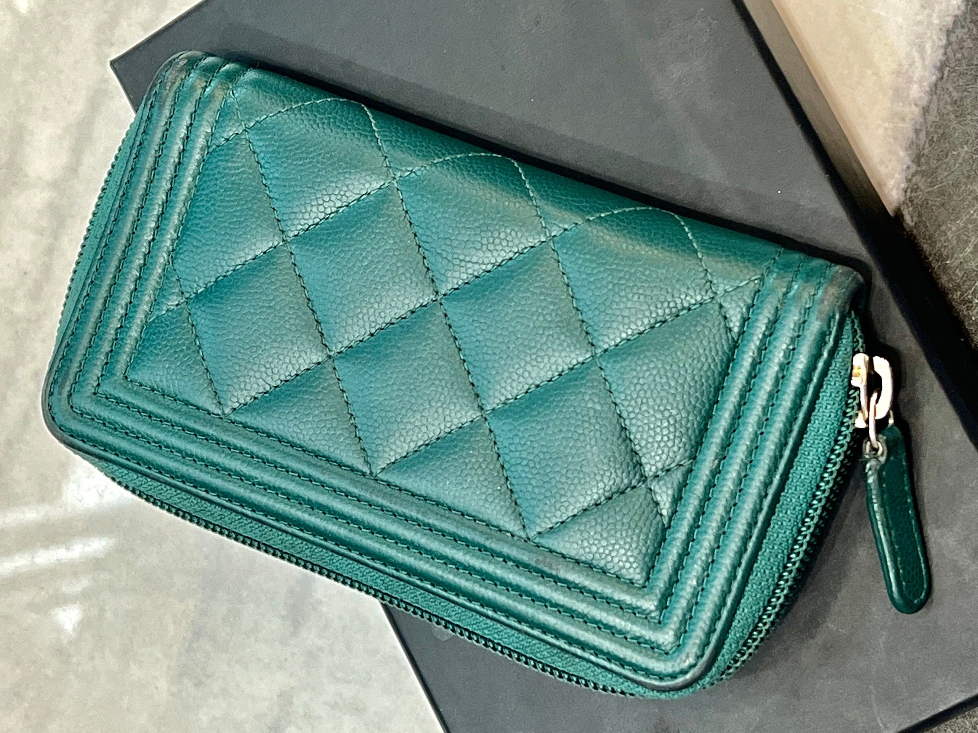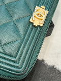 CHANEL QUILTED LAMBSKIN BOY WALLET IN GREEN