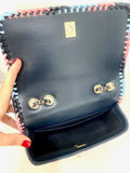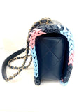Lambskin & Gold Metal Navy Blue, Light Blue & Pink Braided Trim