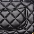 This stylish shoulder bag is crafted of diamond quilted lambskin leather in black.