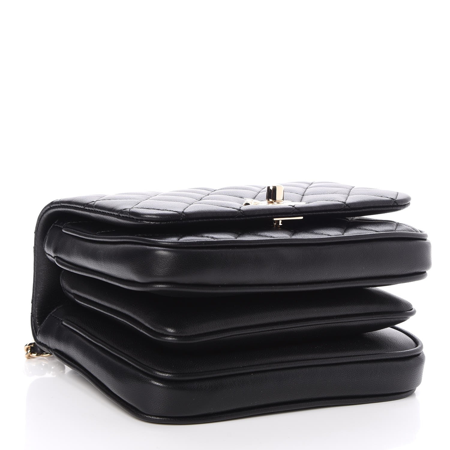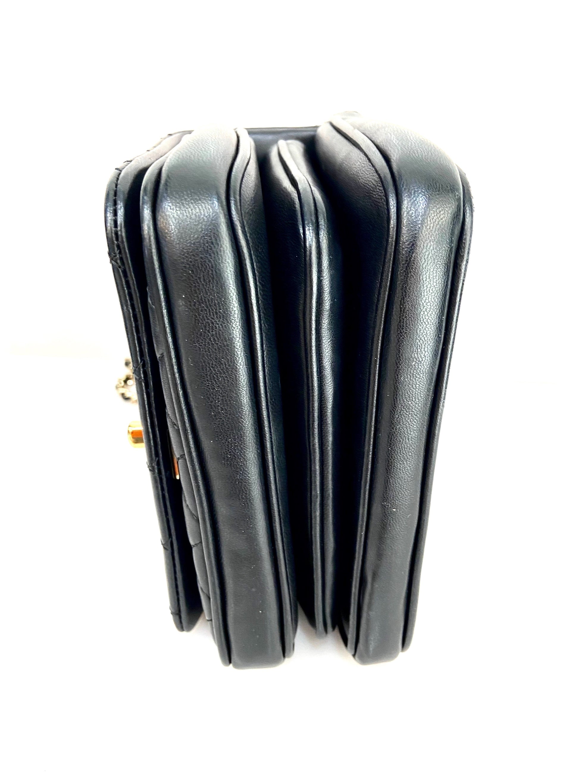 This Stunning bag is crafted of smooth diamond quilted lambskin leather in black.
