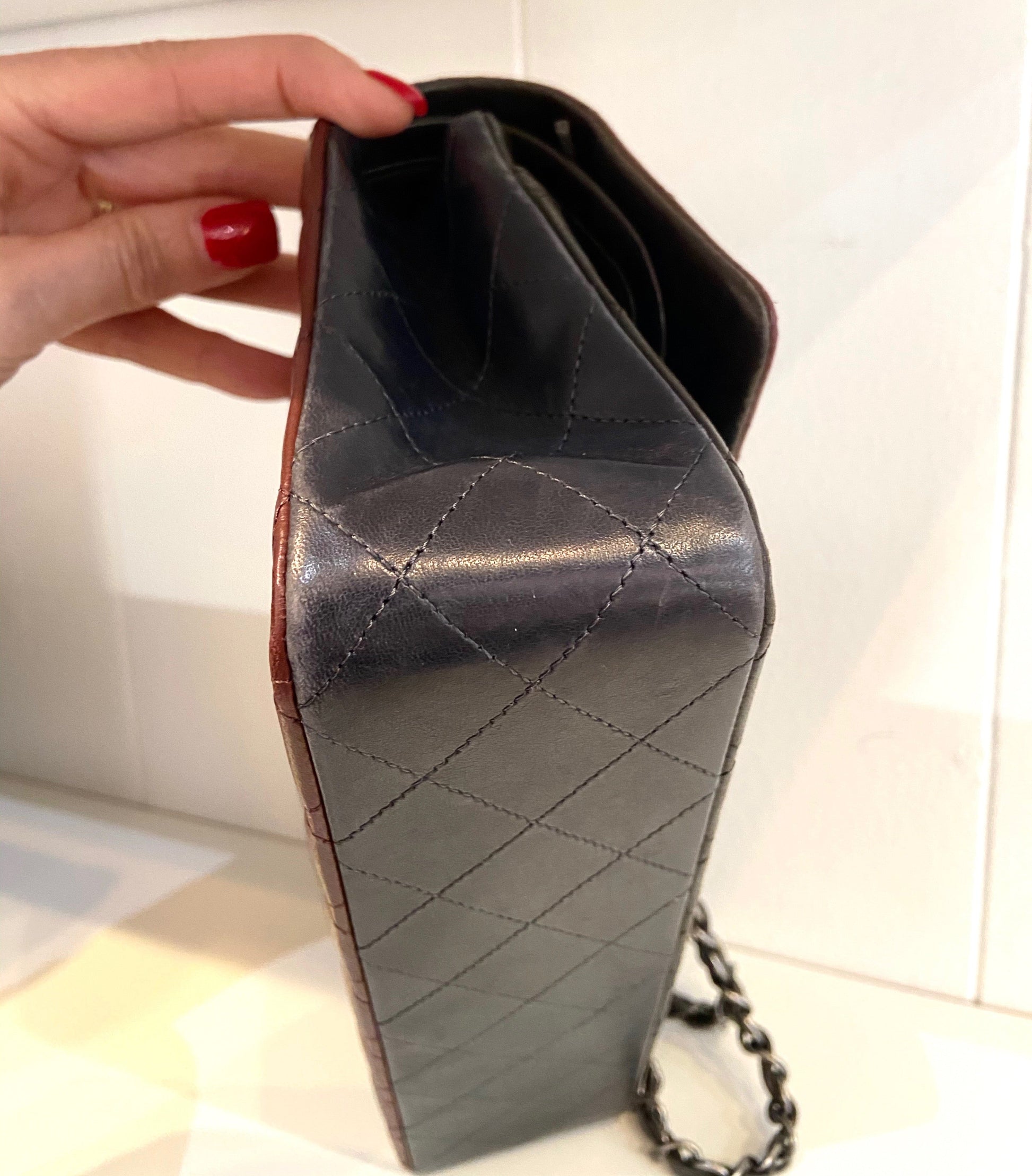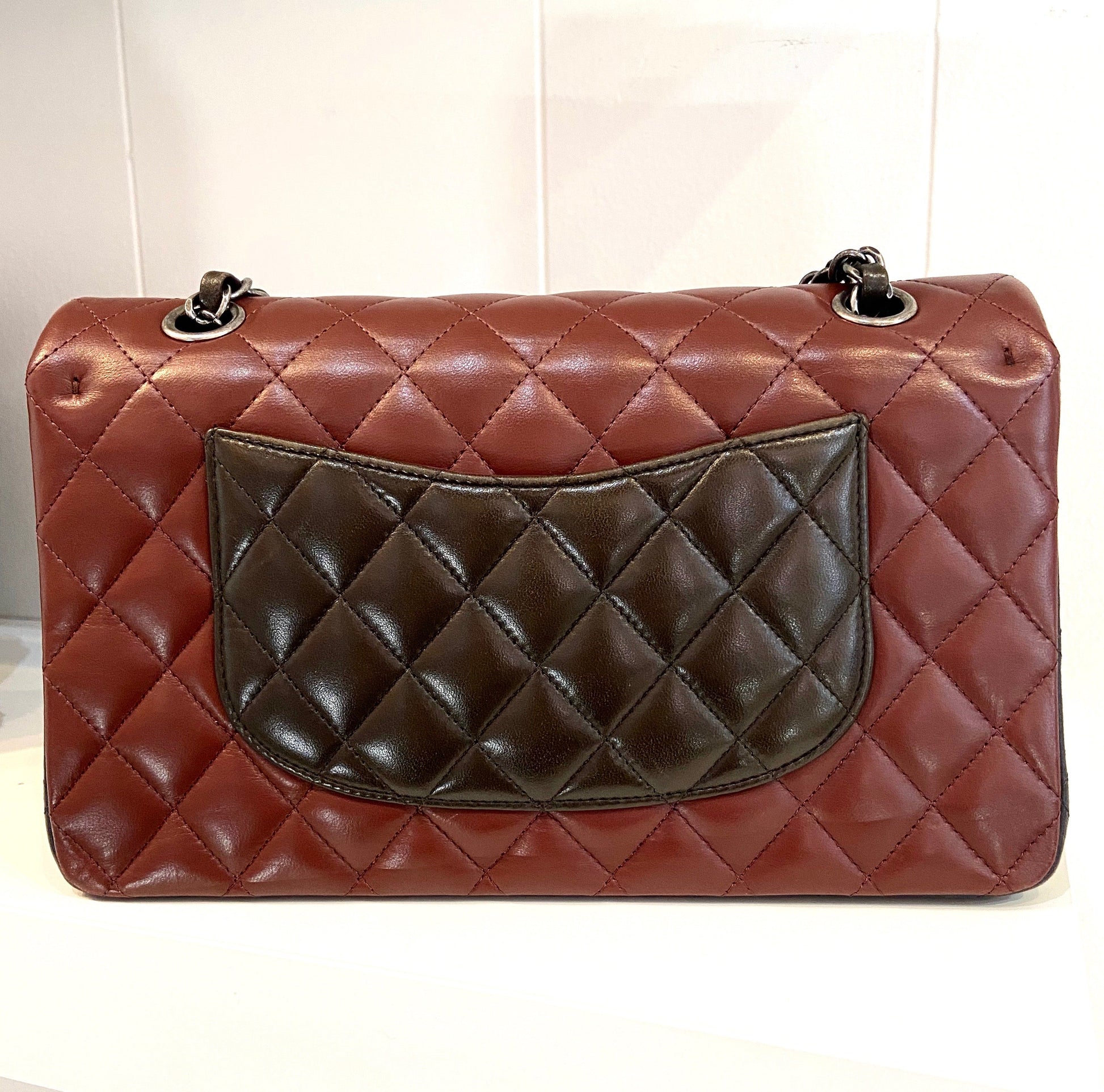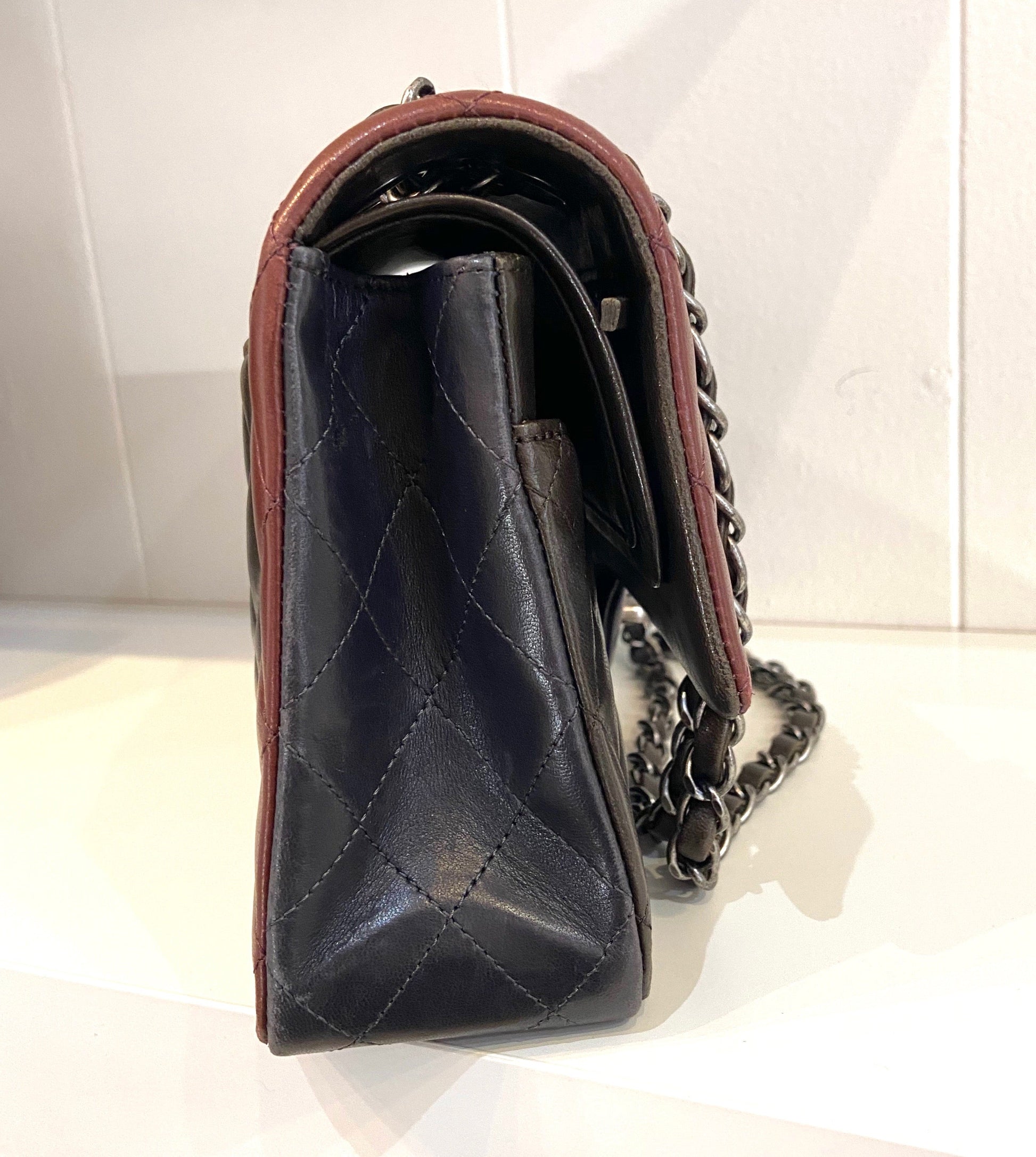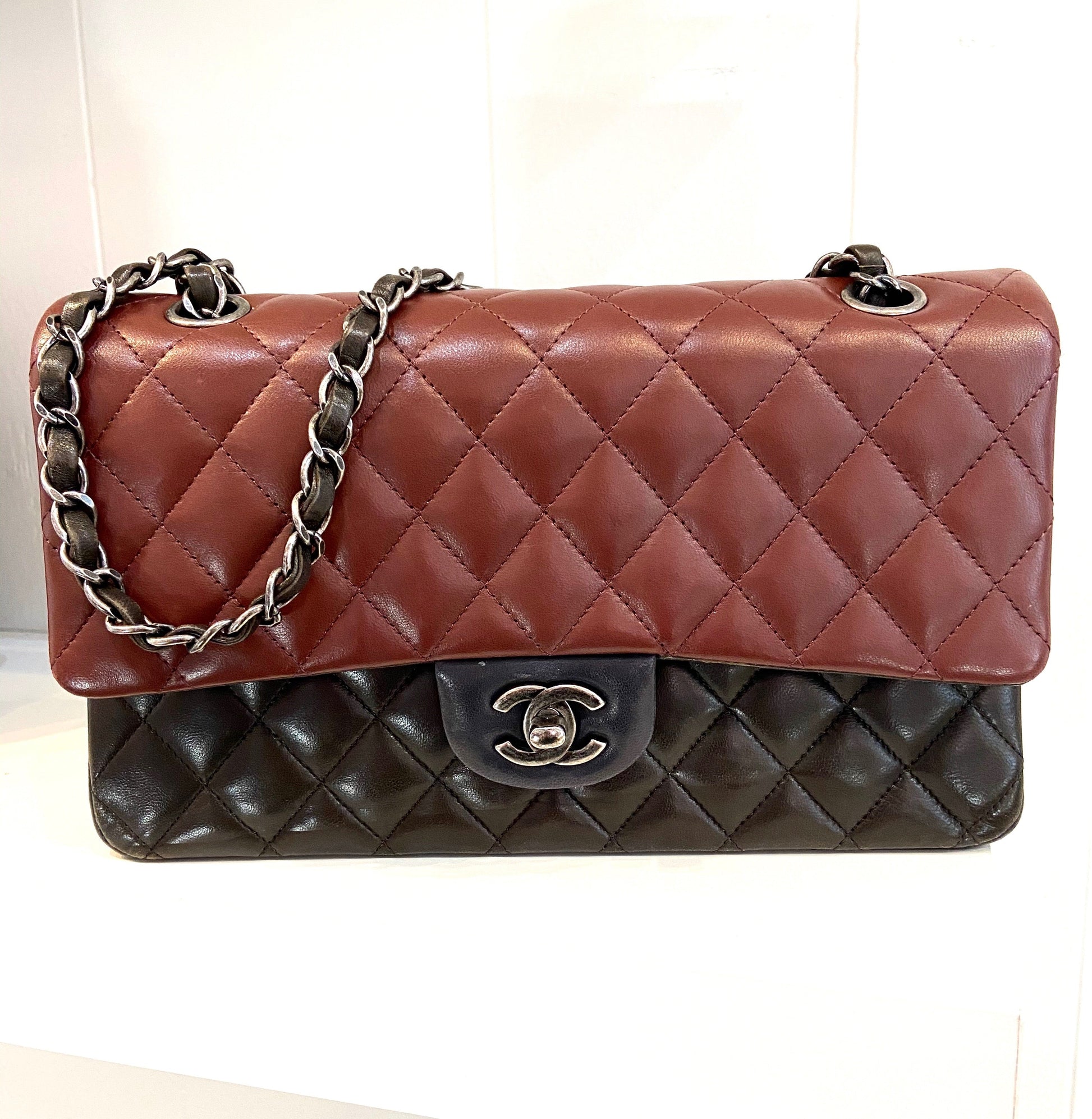 CHANEL QUILTED LAMBSKIN TRICOLOR CLASSIC DOUBLE FLAP BAG MEDIUM