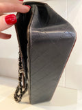 This Paris Edinburgh double-flap bag is crafted of quilted lambskin leather in burgundy, navy blue, and olive green with ruthenium hardware. The bag features one rear slip pocket, ruthenium chain link leather threaded shoulder straps, and a ruthenium CC logo with turn-lock closure. This opens to a send flap with a zipped pocket and a black leather interior with patch pockets.
