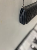 Features an adjustable leather threaded chain shoulder strap and a flap with a CC clasp.