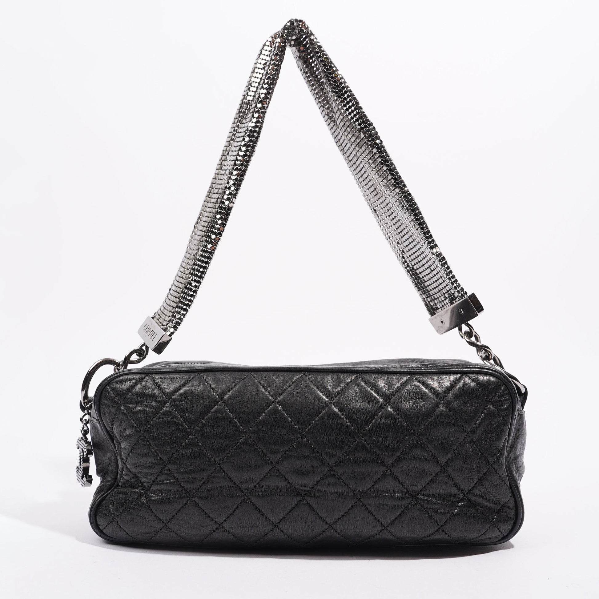 Chanel Womens Lambskin Quilted Leather Shoulder Bag Black
