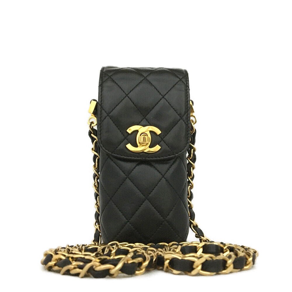 CHANEL Quilted Matelasse CC Logo Lambskin Chain Crossbody Bag