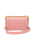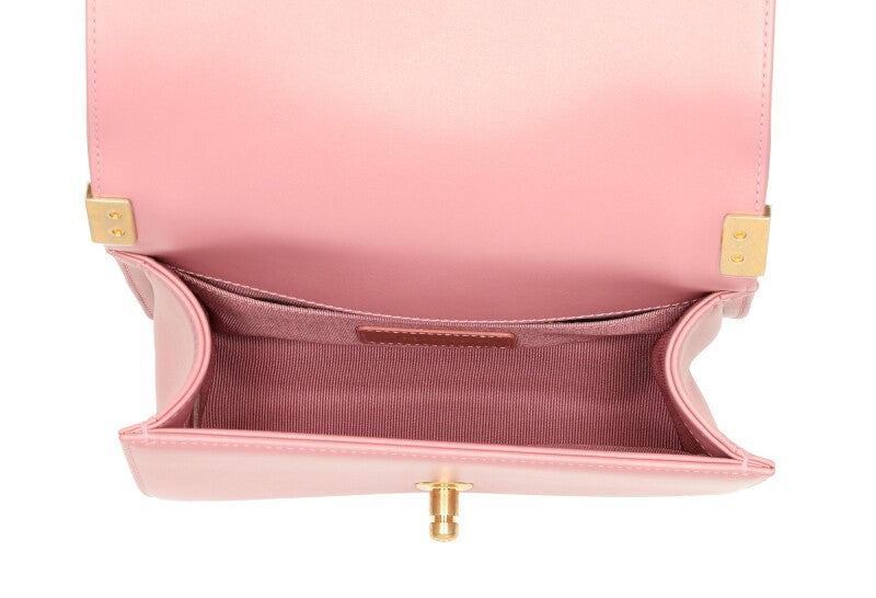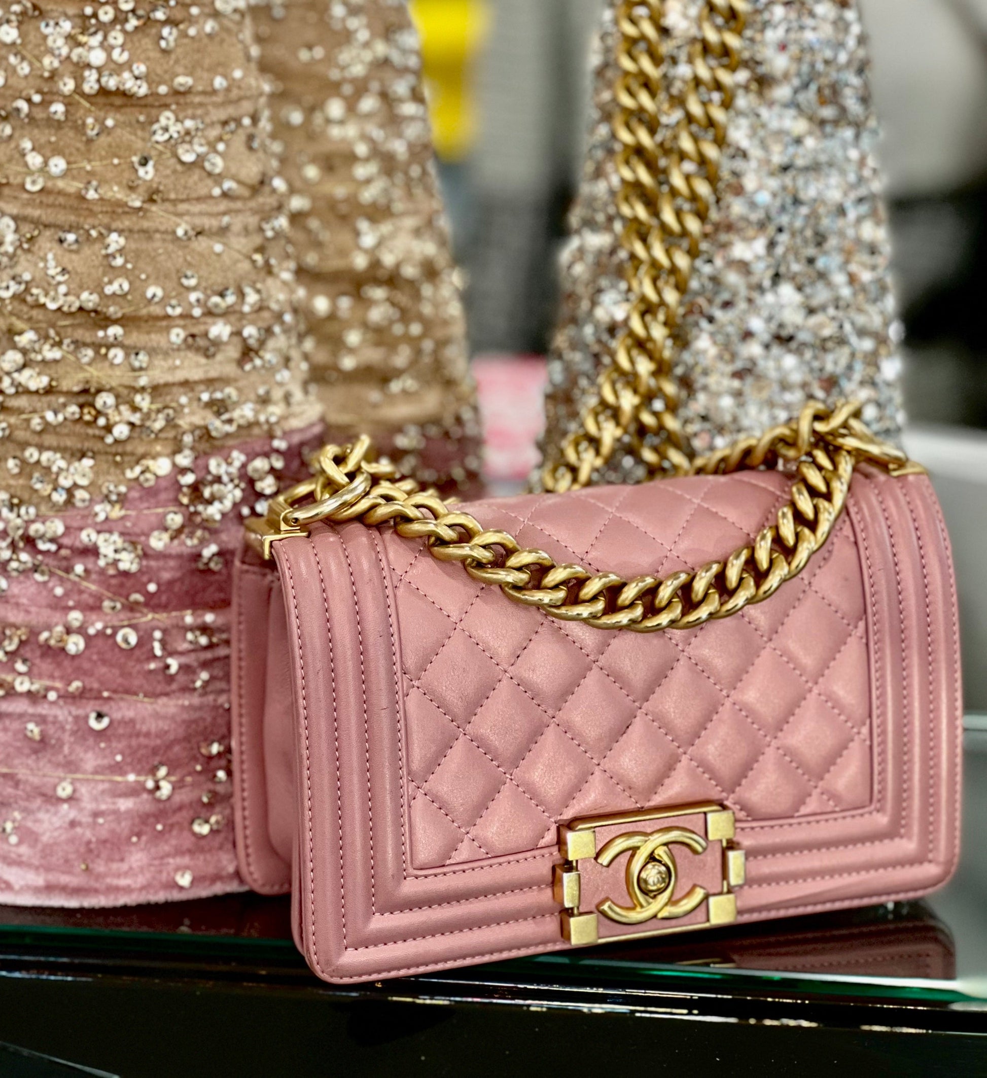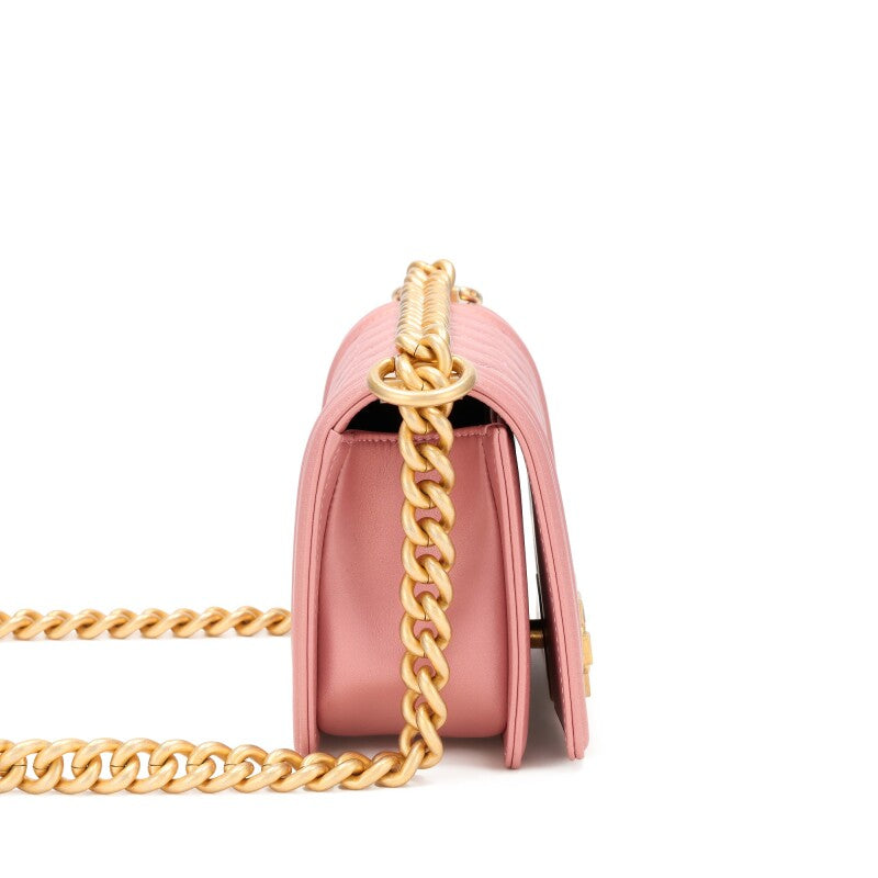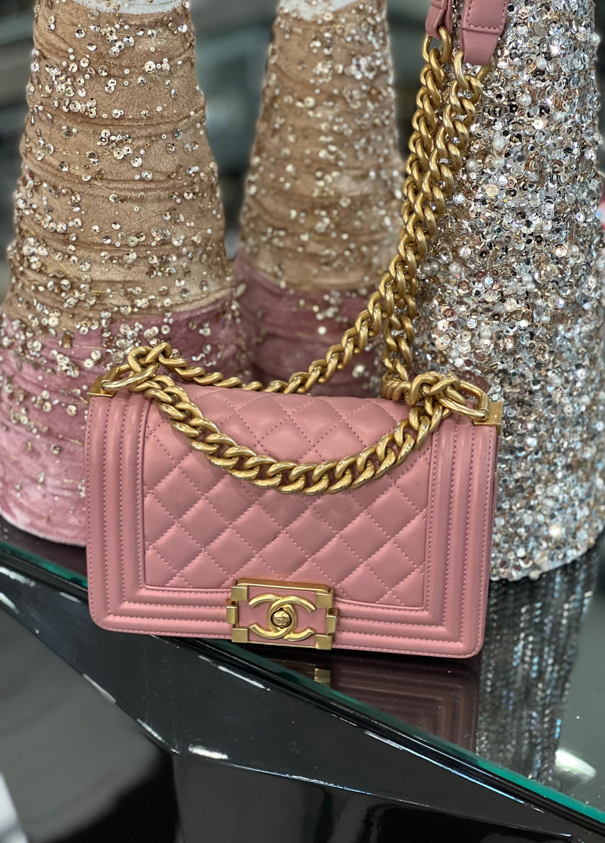 CHANEL QUILTED METALLIC PINK CALFSKIN SMALL BOY FLAP BAG