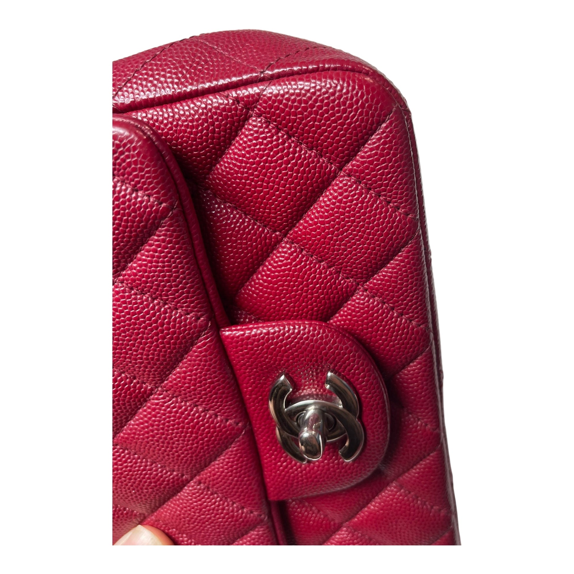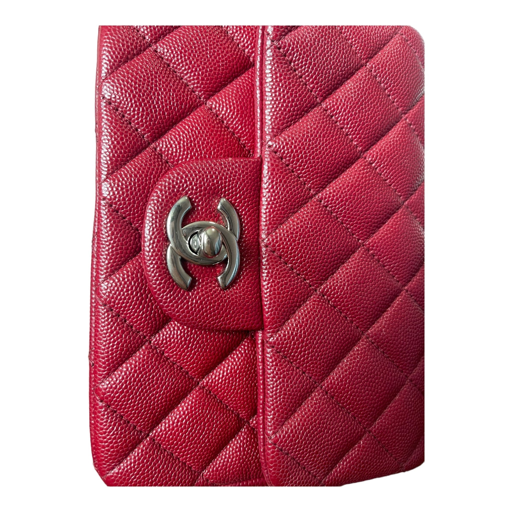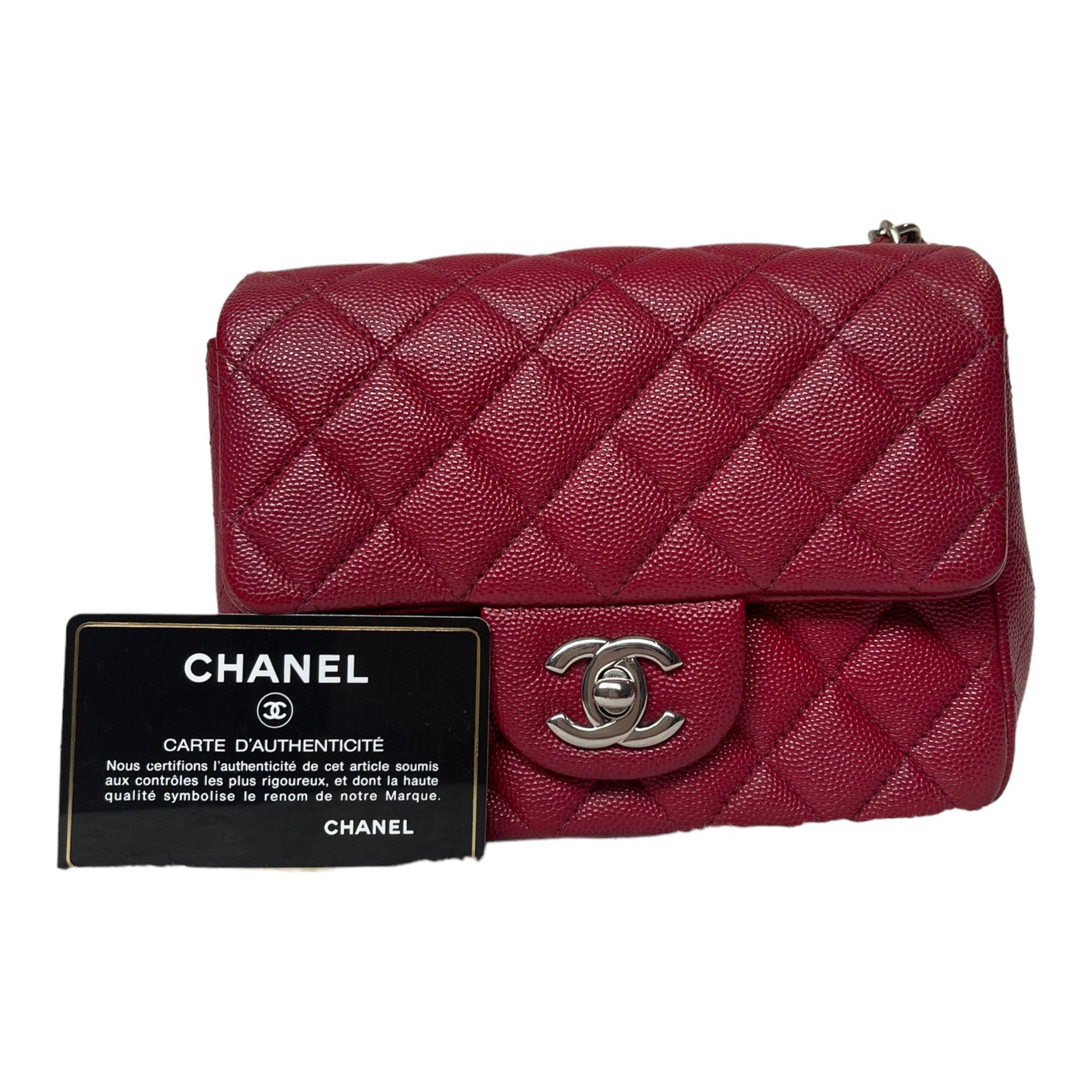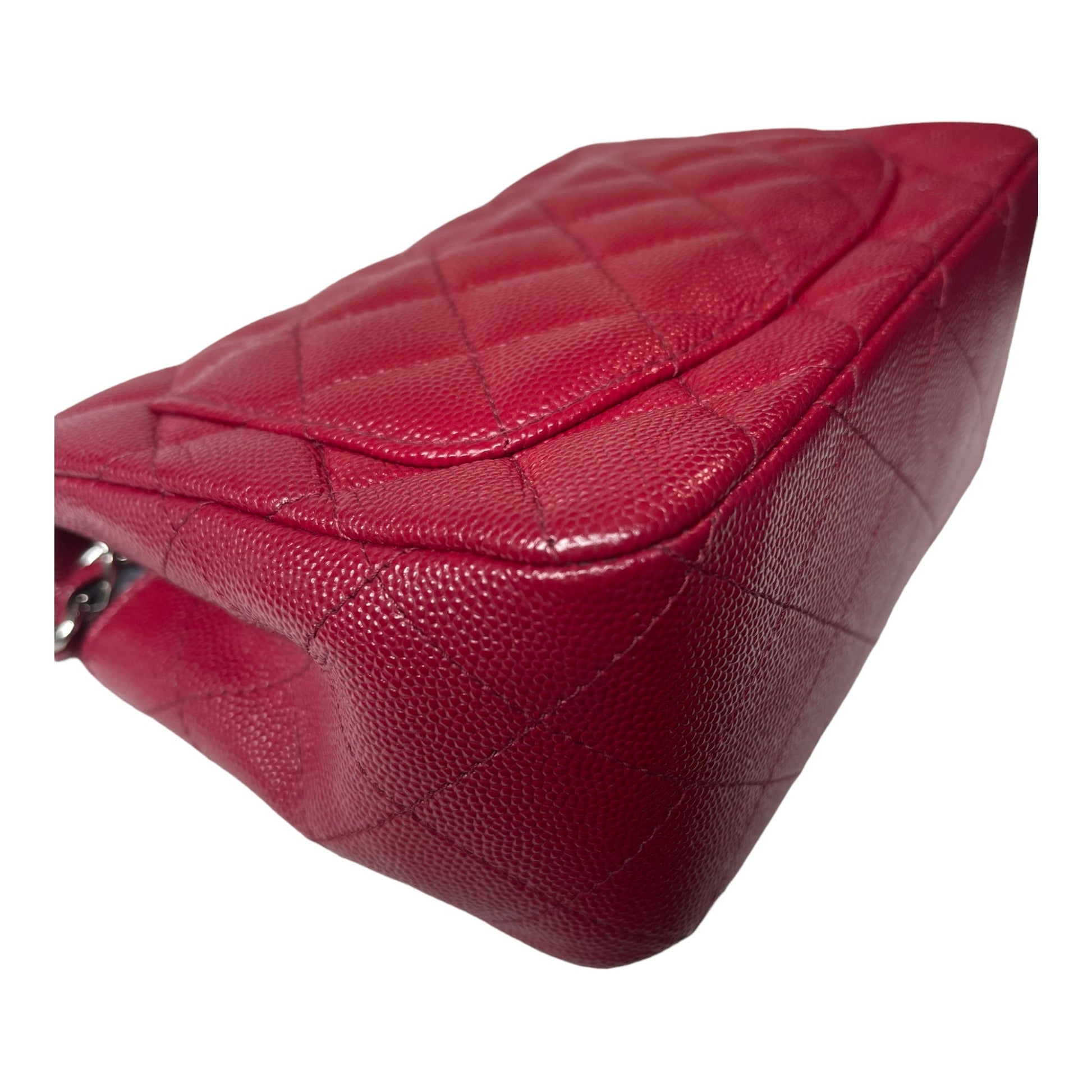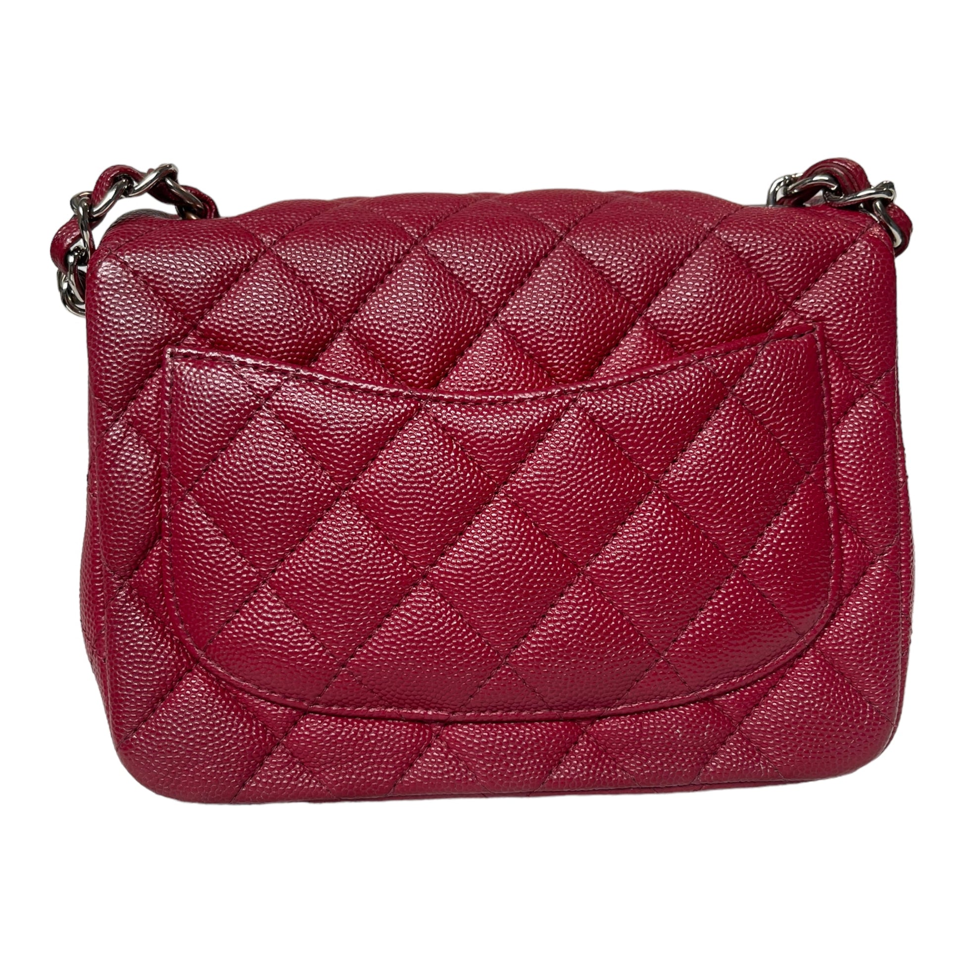 Chanel Quilted Mini Square Flap Red Caviar Silver Hardware 17B