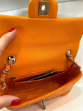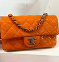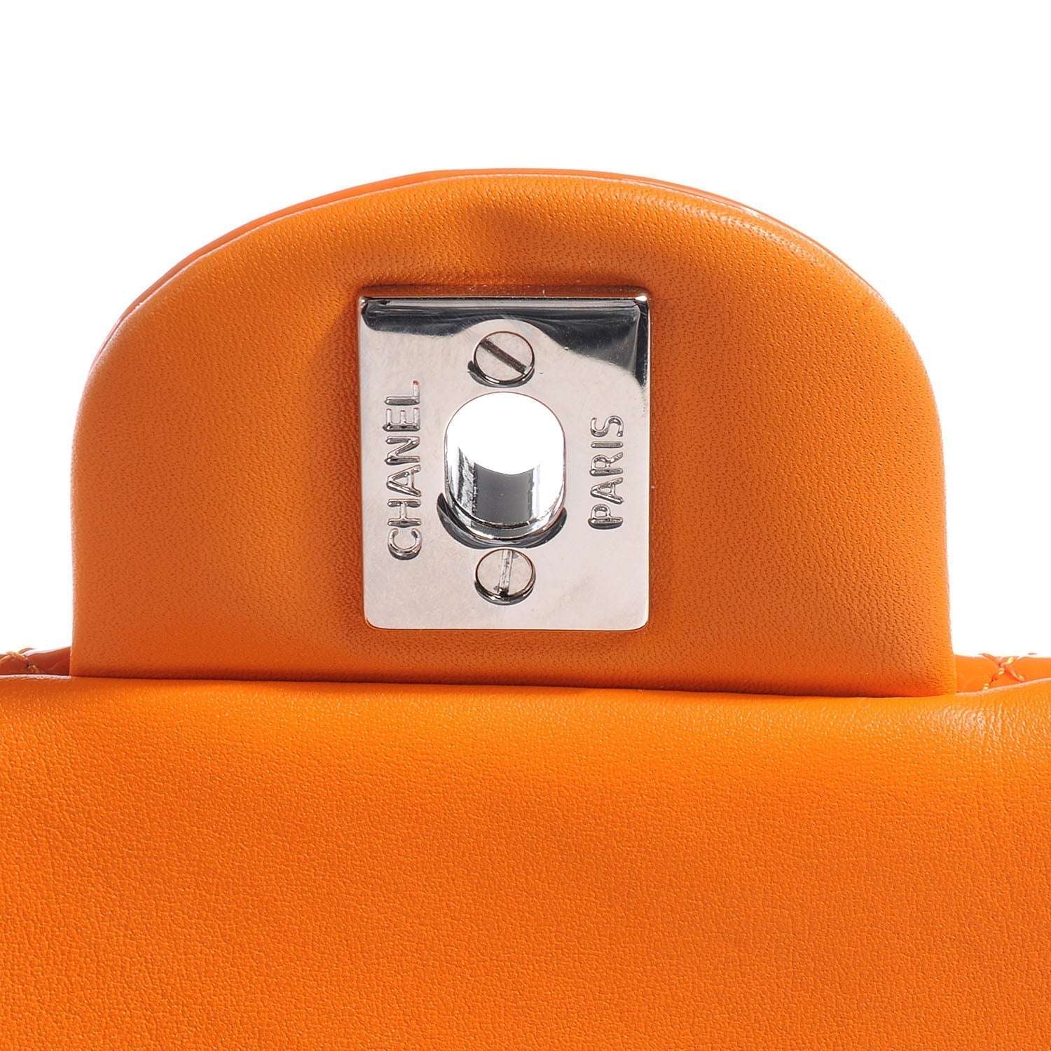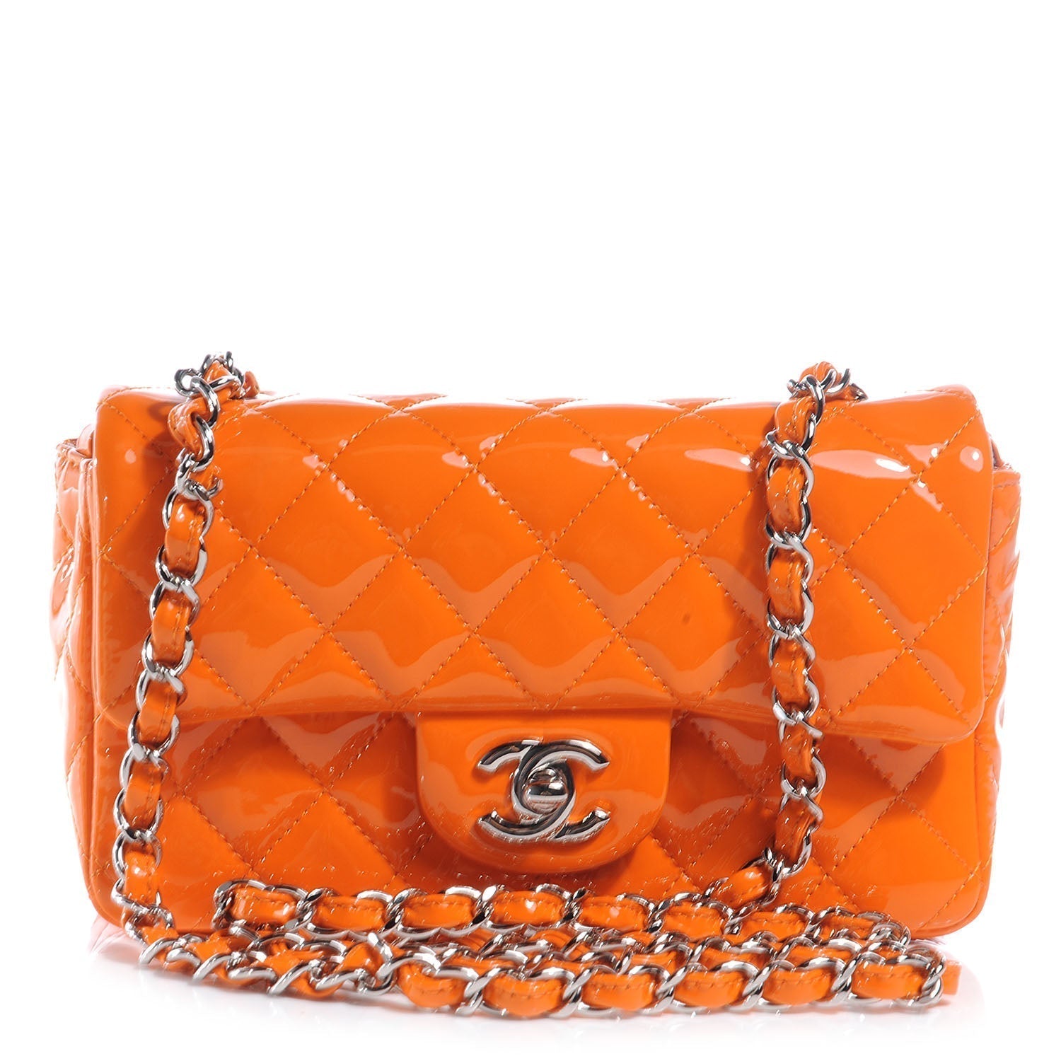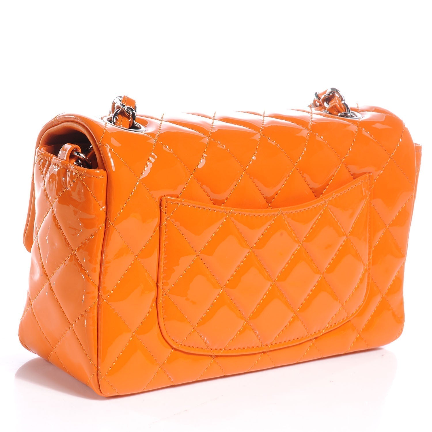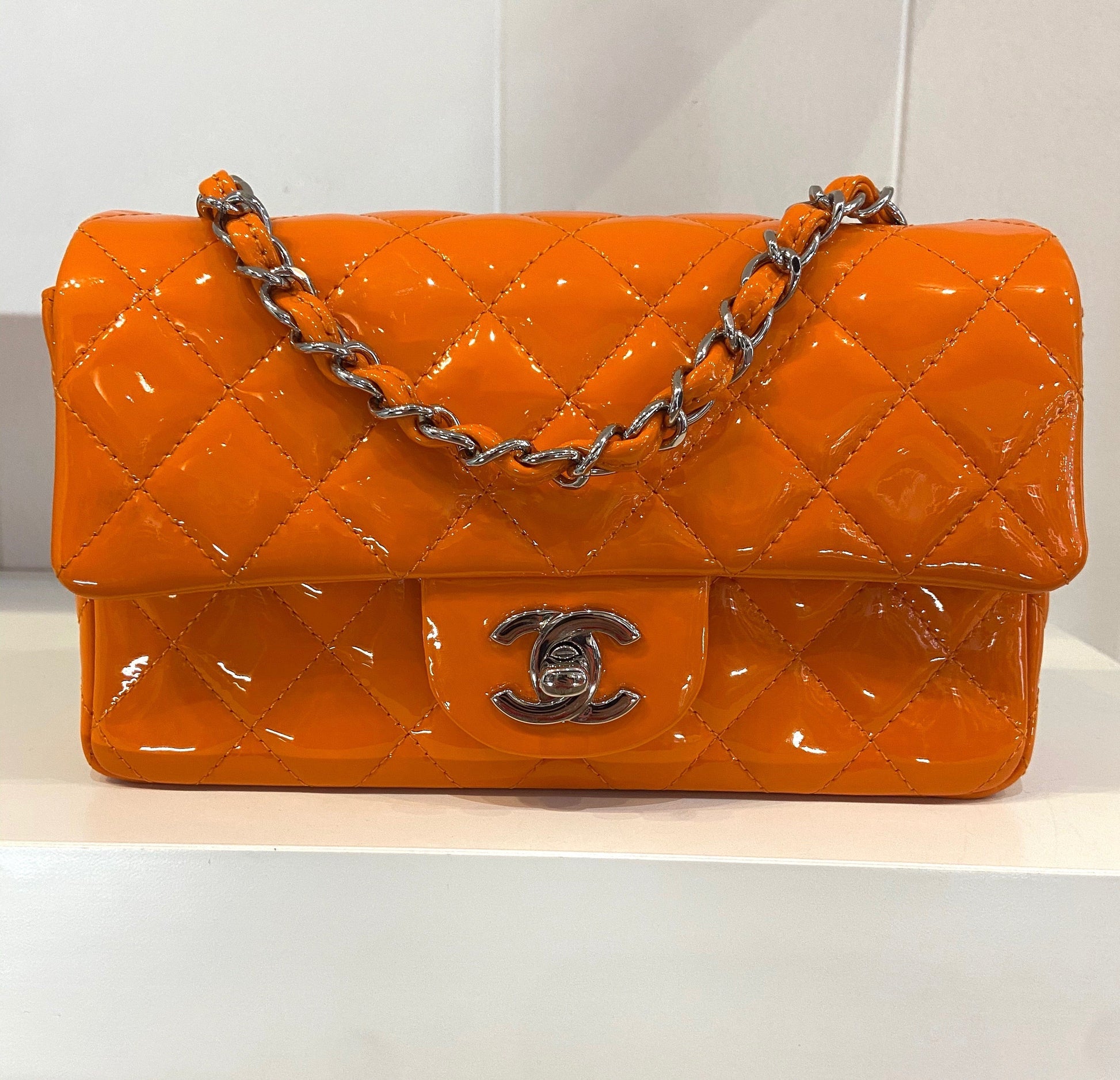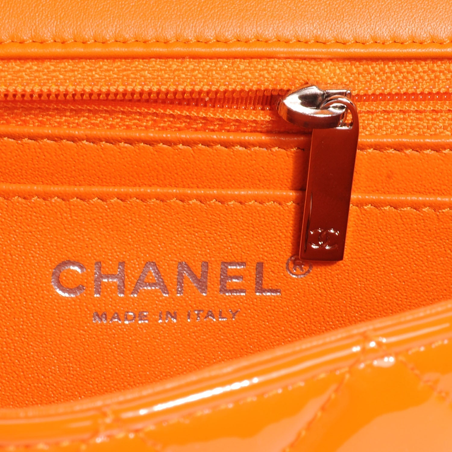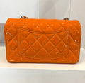 CHANEL QUILTED PATENT LEATHER MINI FLAP BAG-ELECTRIC ORANGE