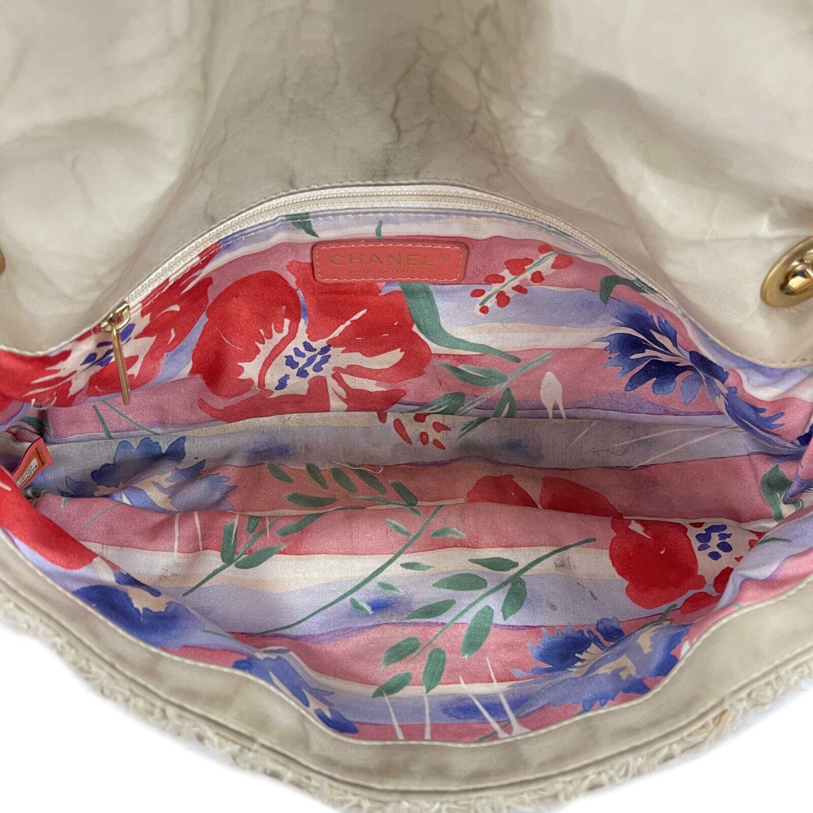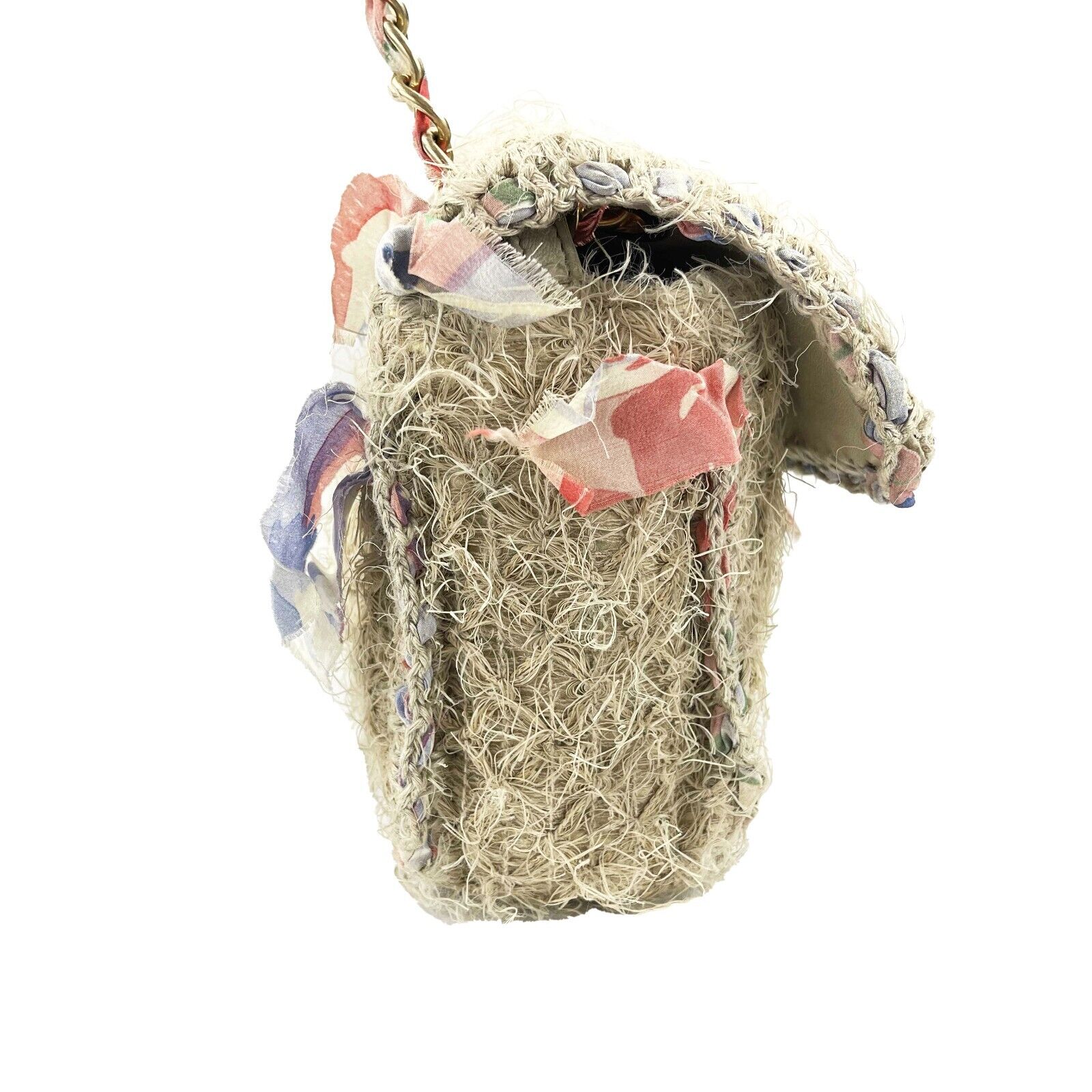 CHANEL - Quilted Stitched Raffia Country Flap - Tan, Blue, Pink, Green, Ivory, Gold-Toned Hardware - Handbag