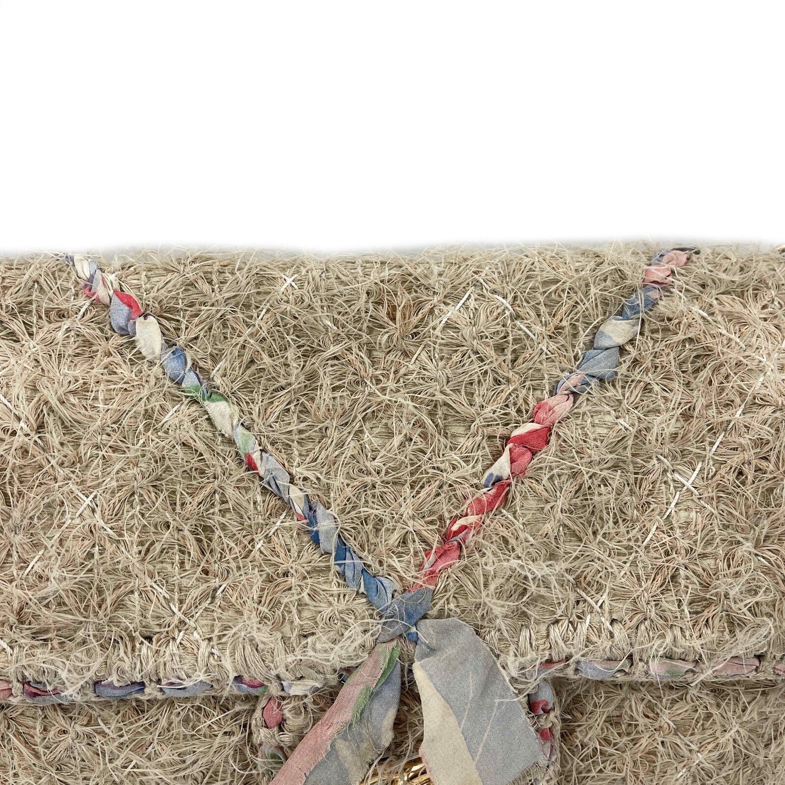 CHANEL - Quilted Stitched Tan Raffia / Straw CC Country Flap Shoulder Bag