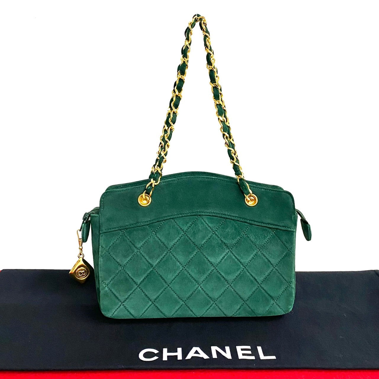 Chanel Quilted Suede Chain Handbag Suede Handbag in Good condition
