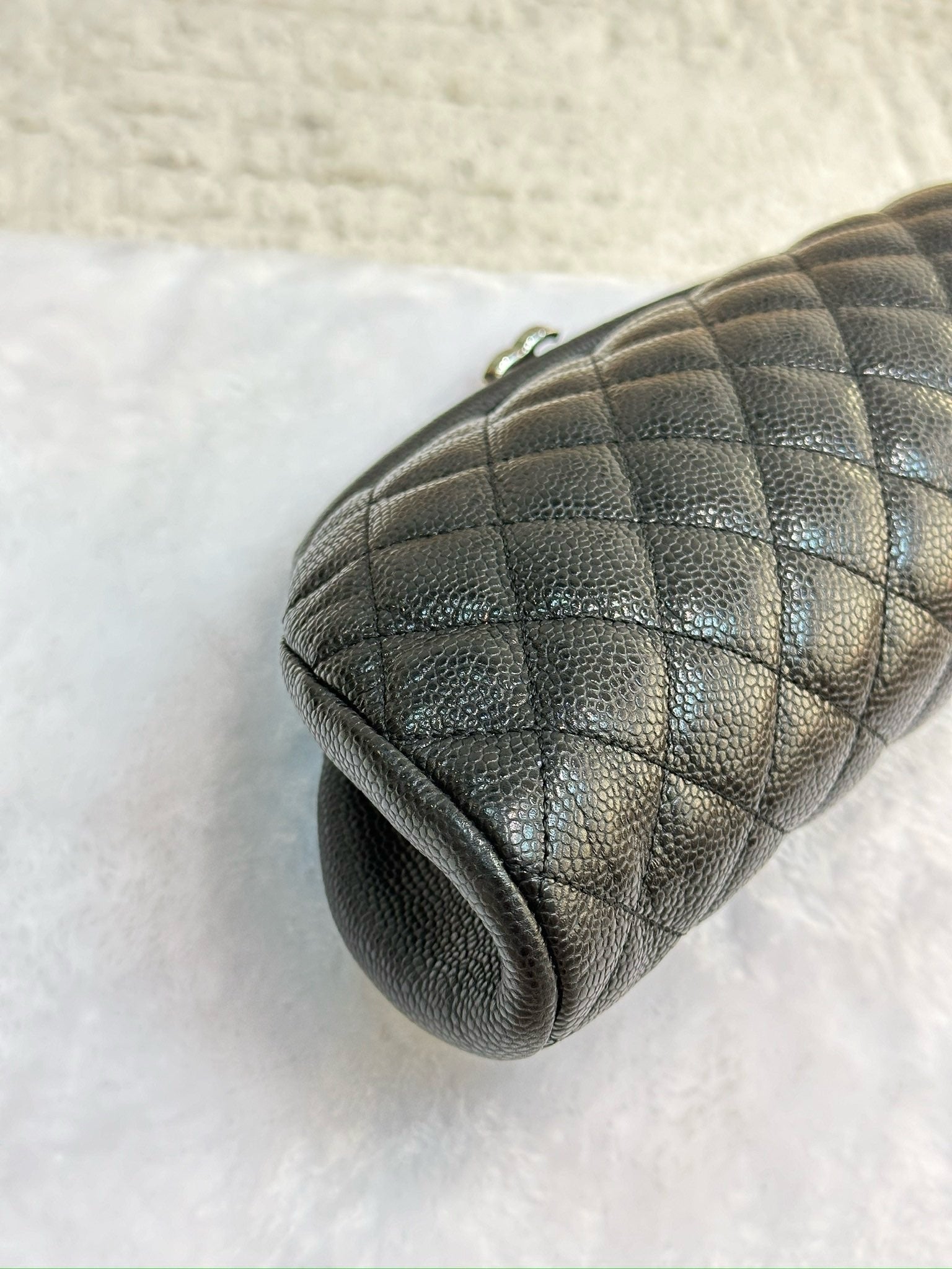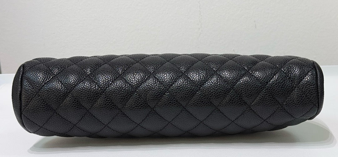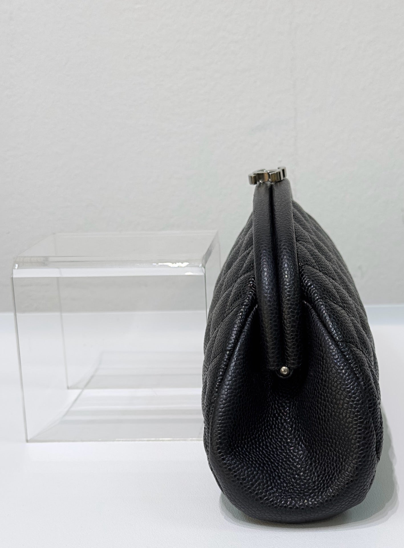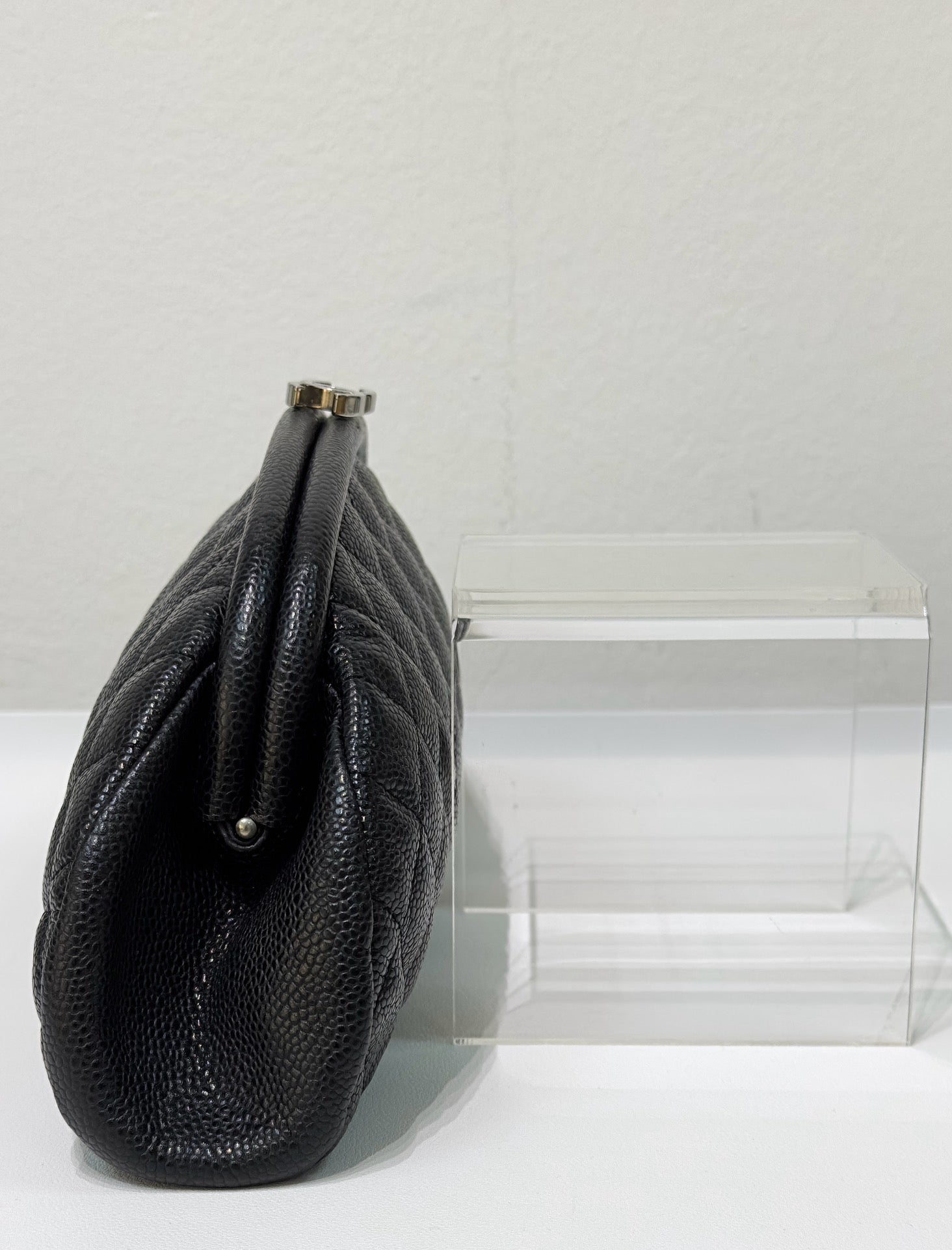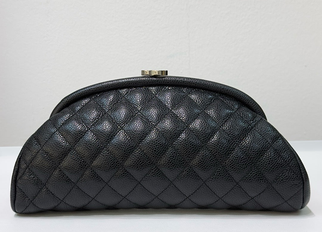 Chanel Quilted Timeless Kisslock Clutch Black Caviar SHW
