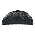 Chanel Quilted Timeless Kisslock Clutch Black Caviar Silver Hardware