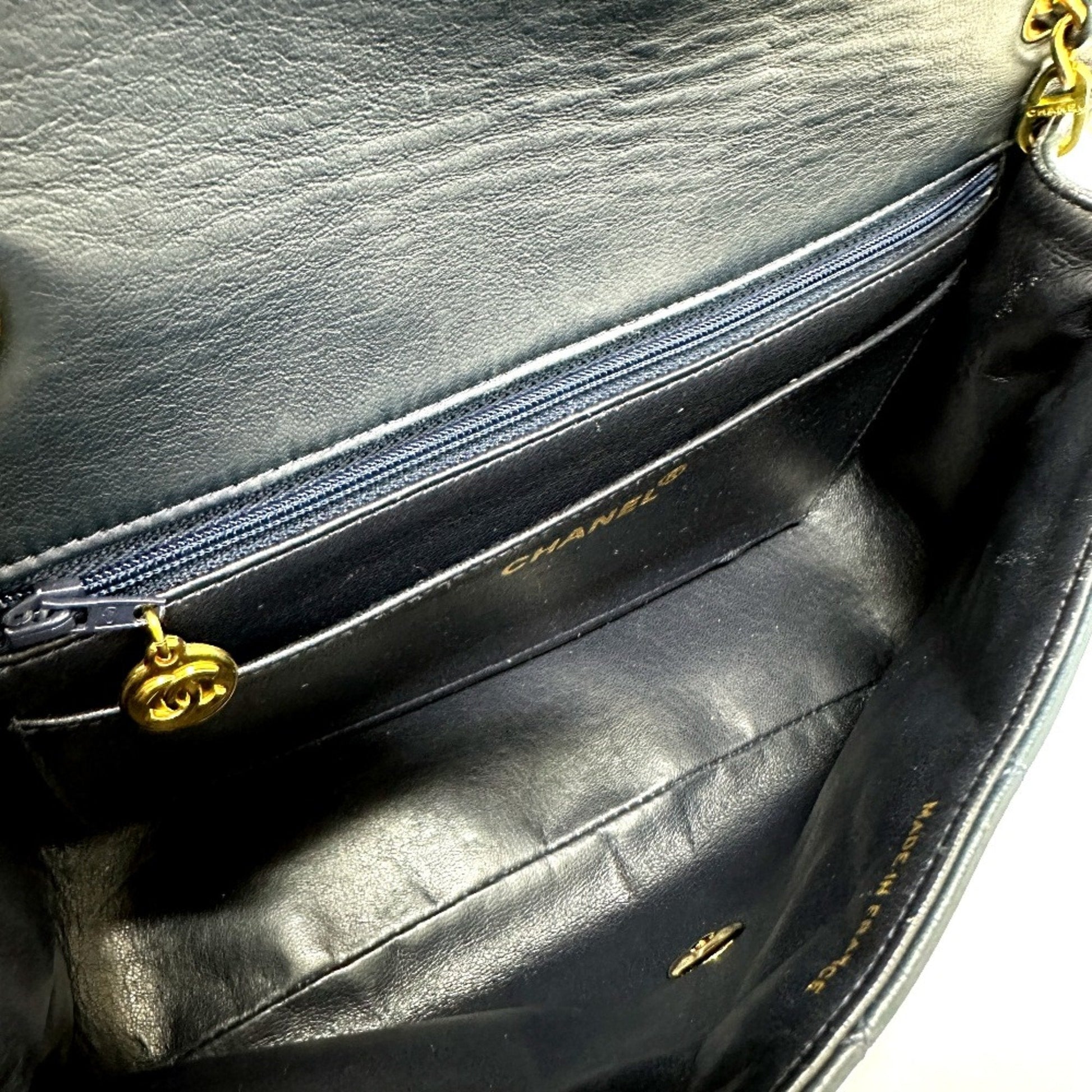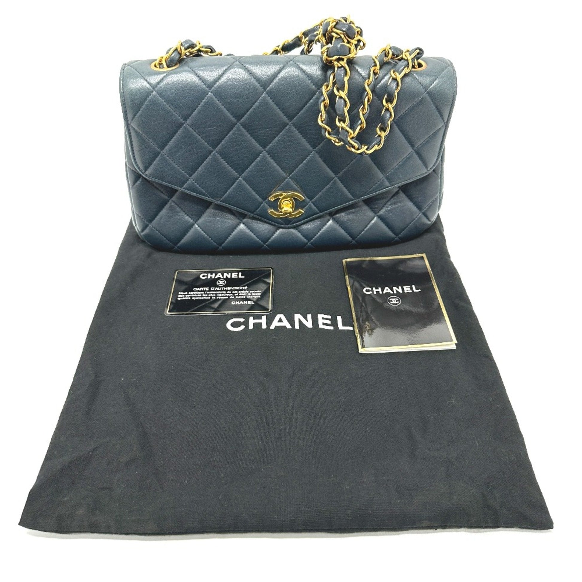 Chanel Quilted Vintage Chain Bag Shoulder Bag Tote Bag Navy GoldHardware