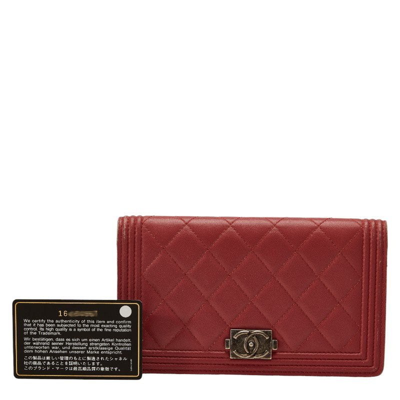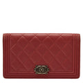 Chanel Quited Leather Le Boy Wallet Leather Long Wallet in Good condition