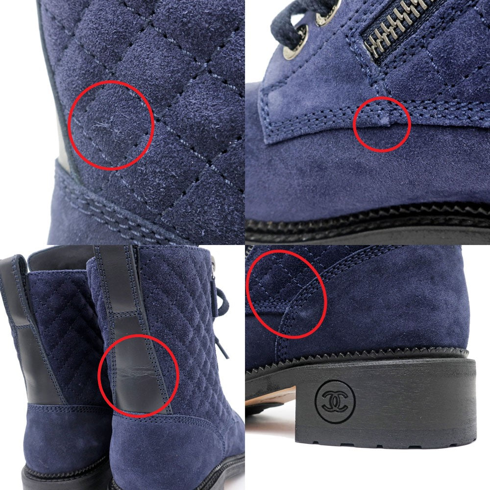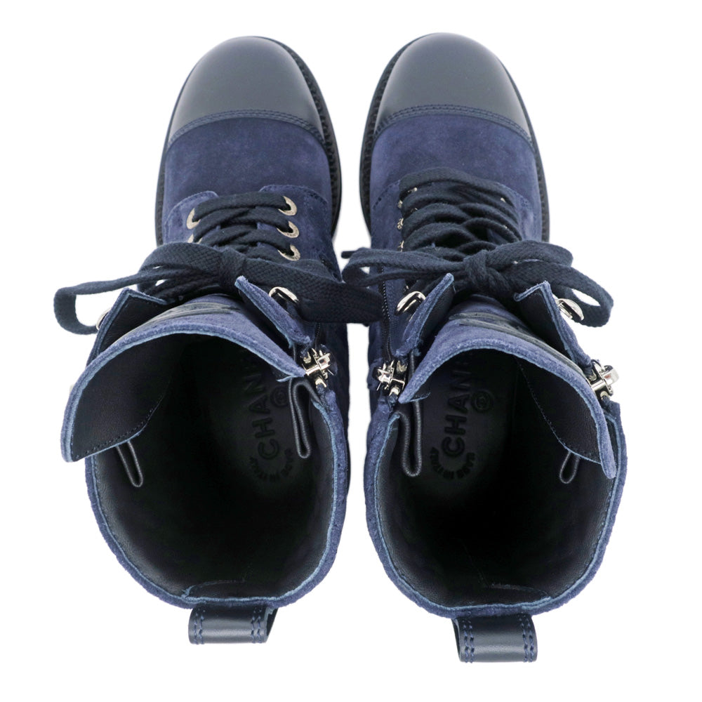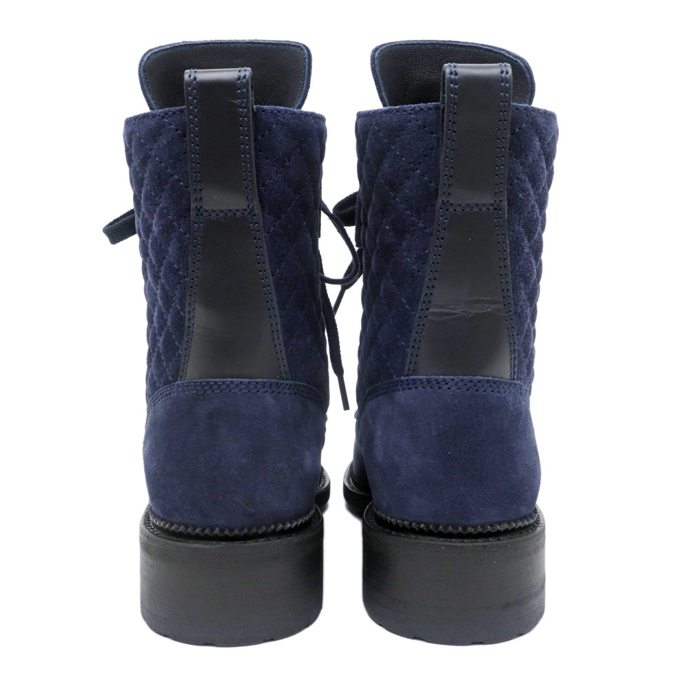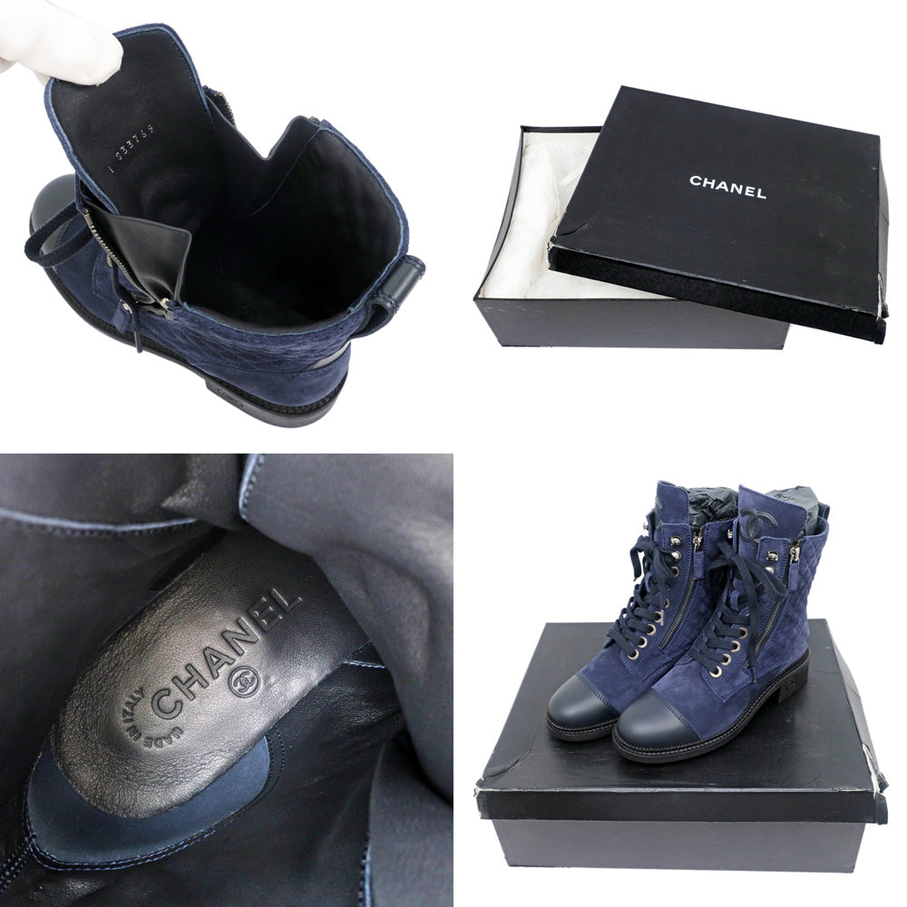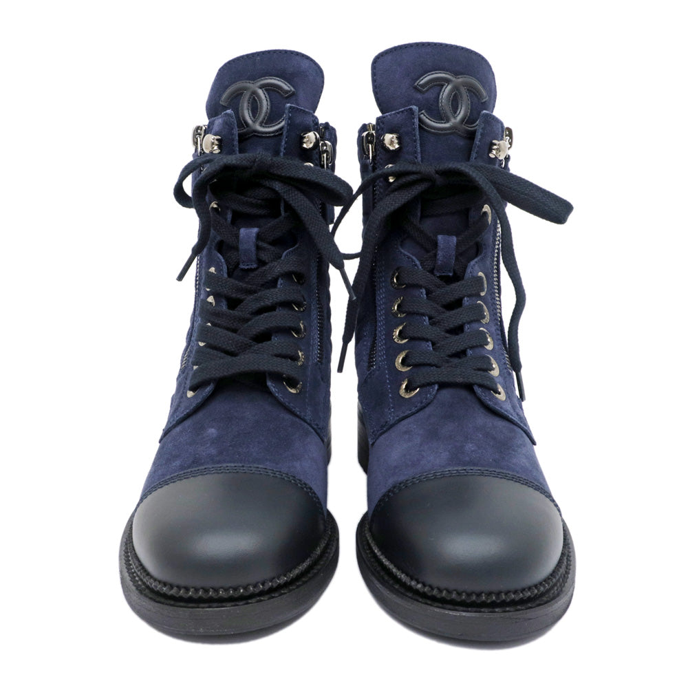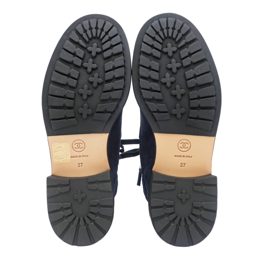 Chanel Race Up Boots tening Suede Navy Highcut Boots Coco G33769 Size 37 Shoes