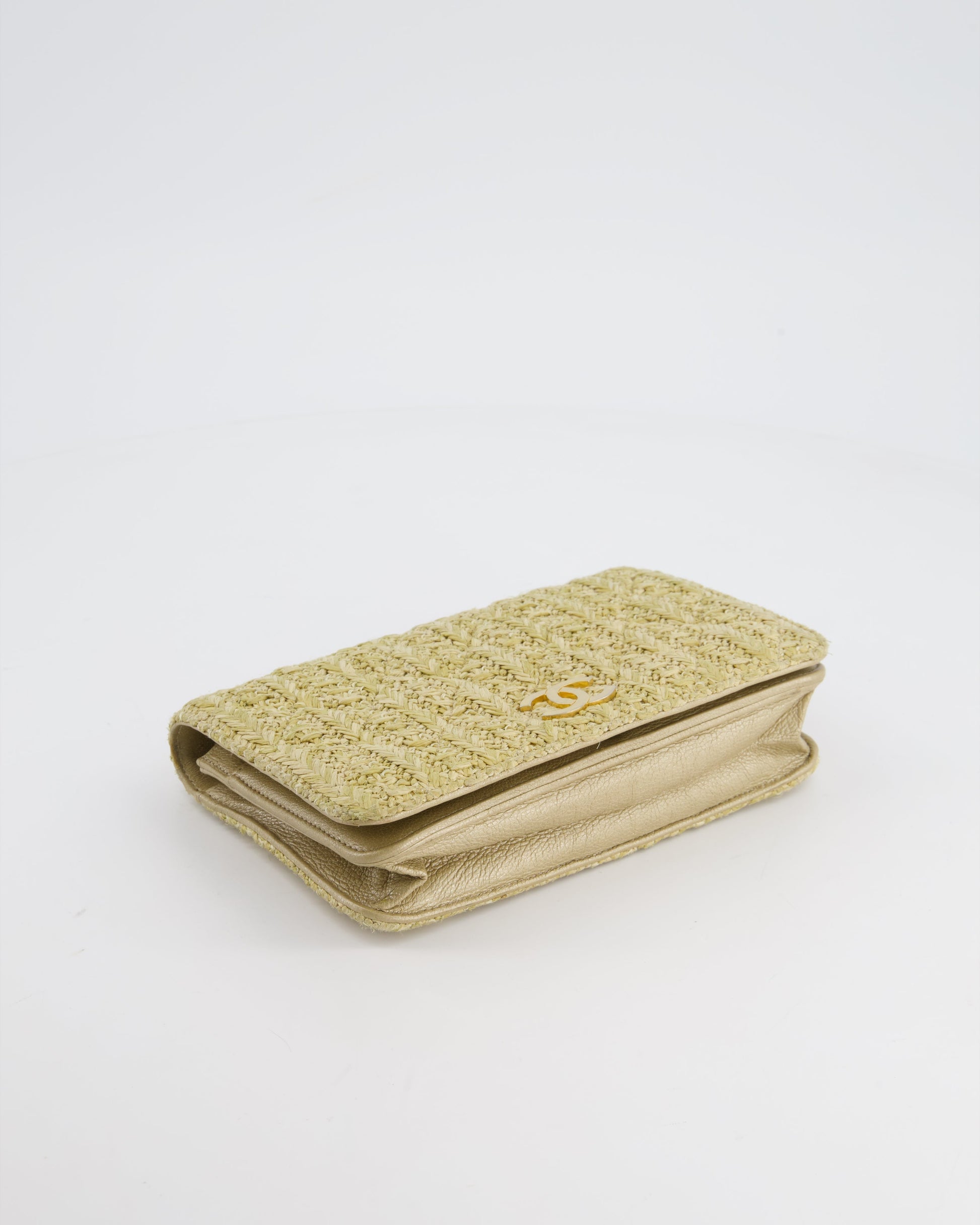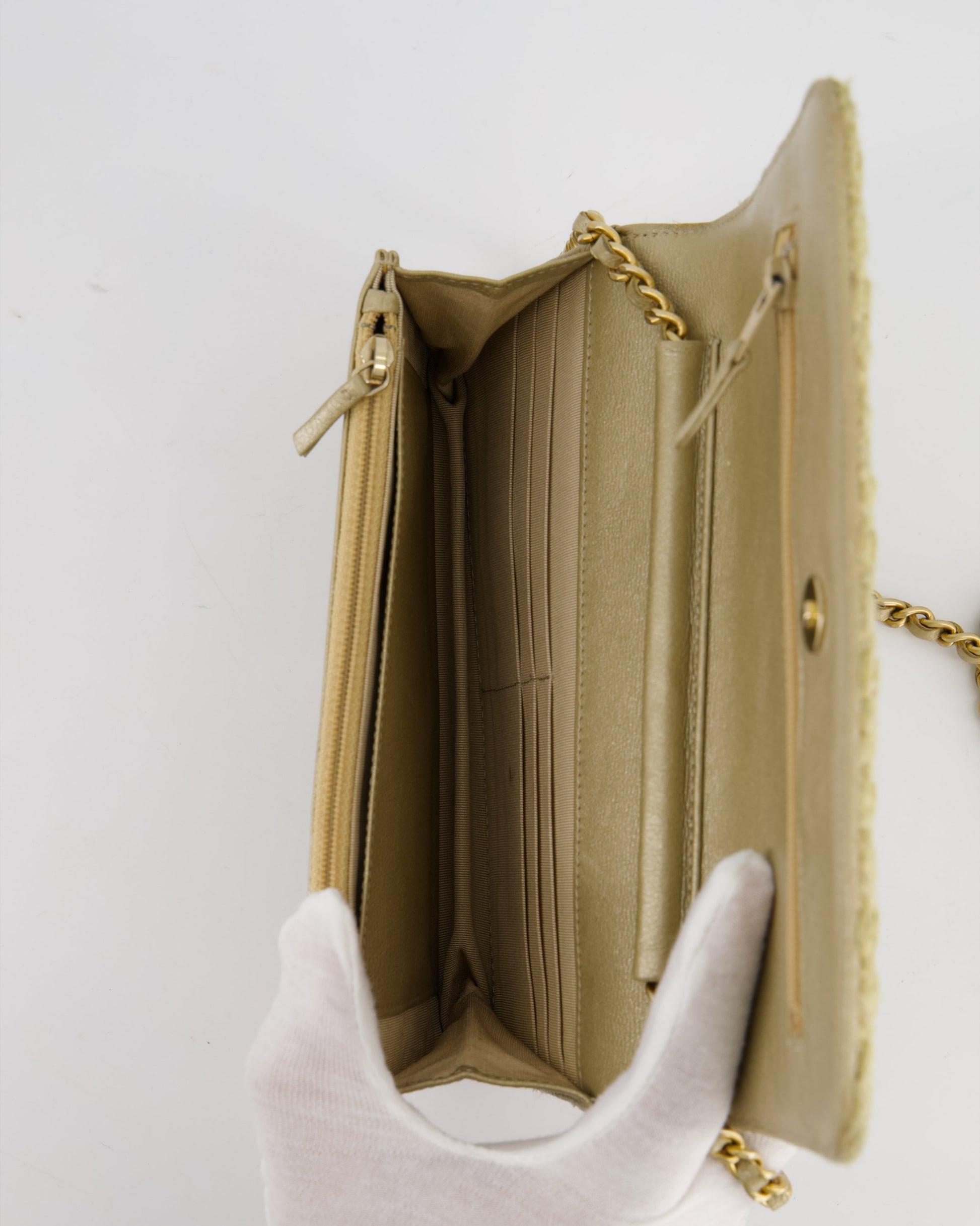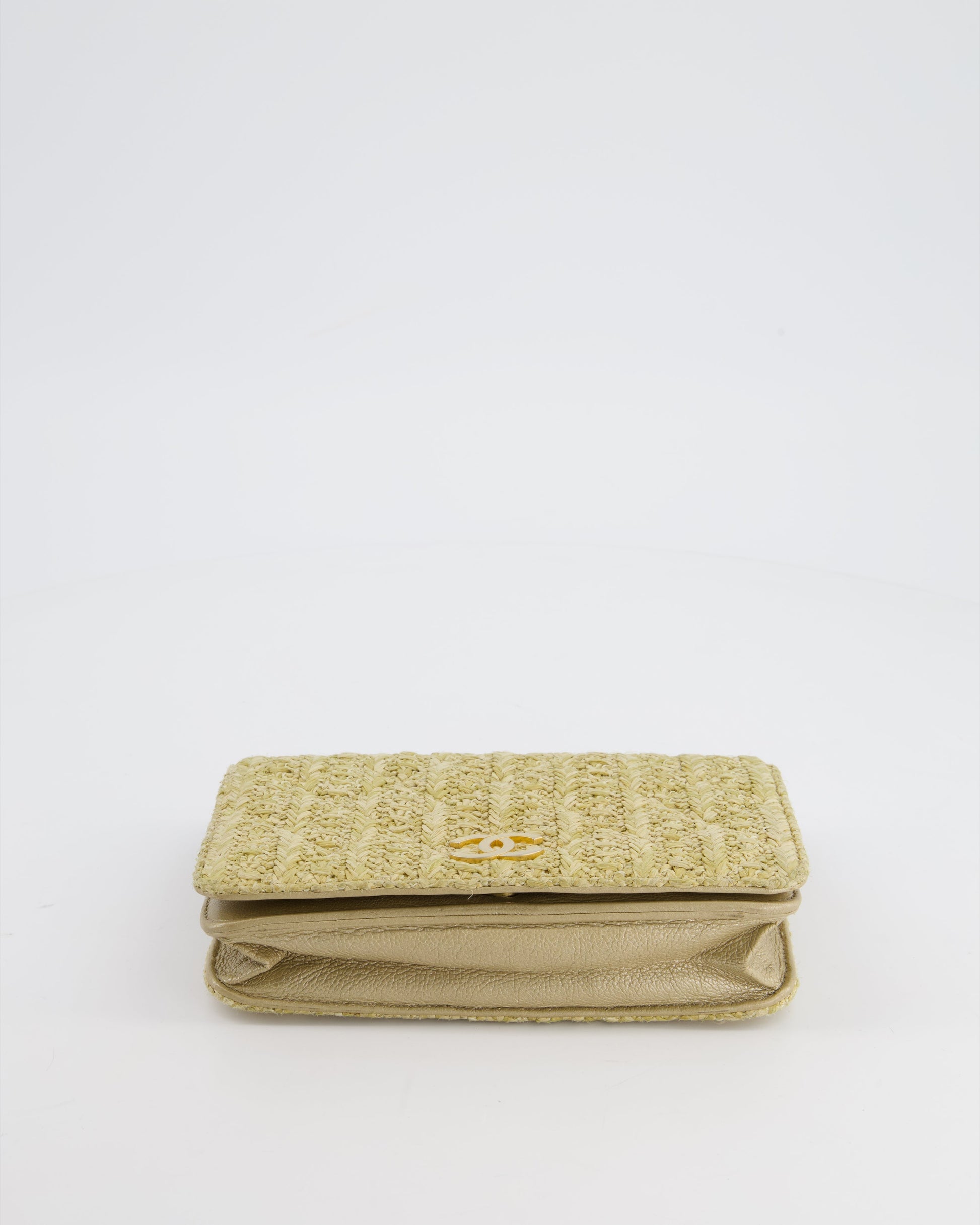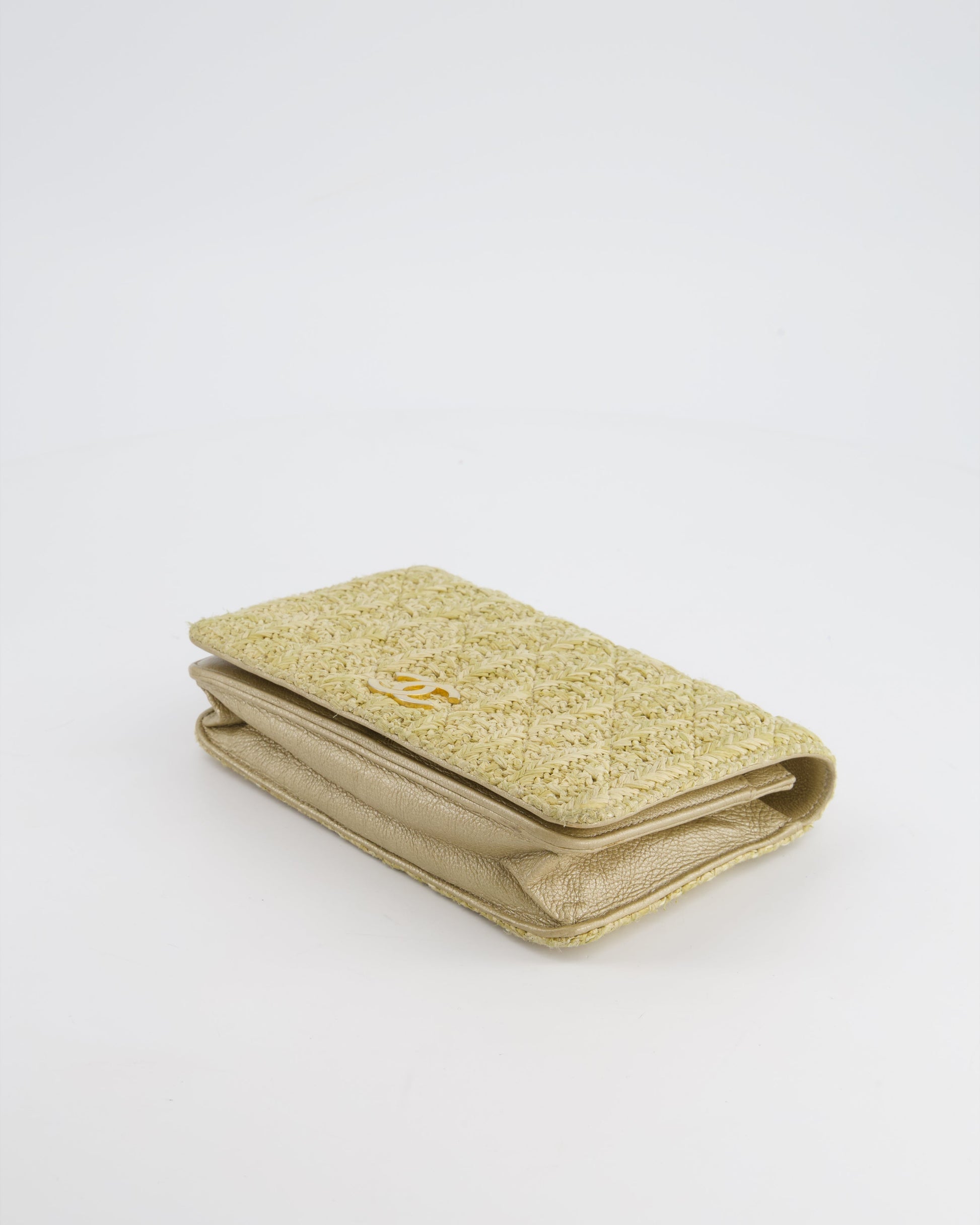 Chanel Raffia Wallet on Chain Bag in Gold Lambskin with Gold Hardware and Charm Detail