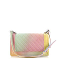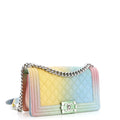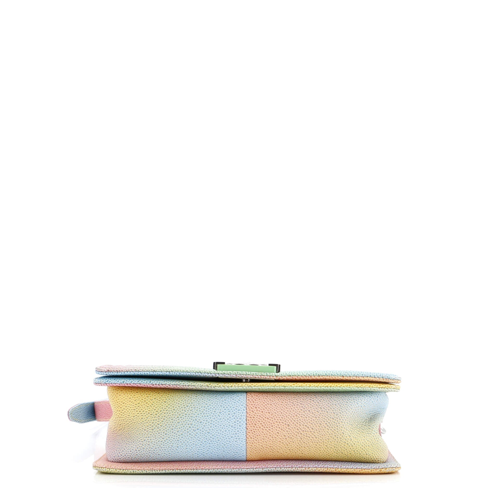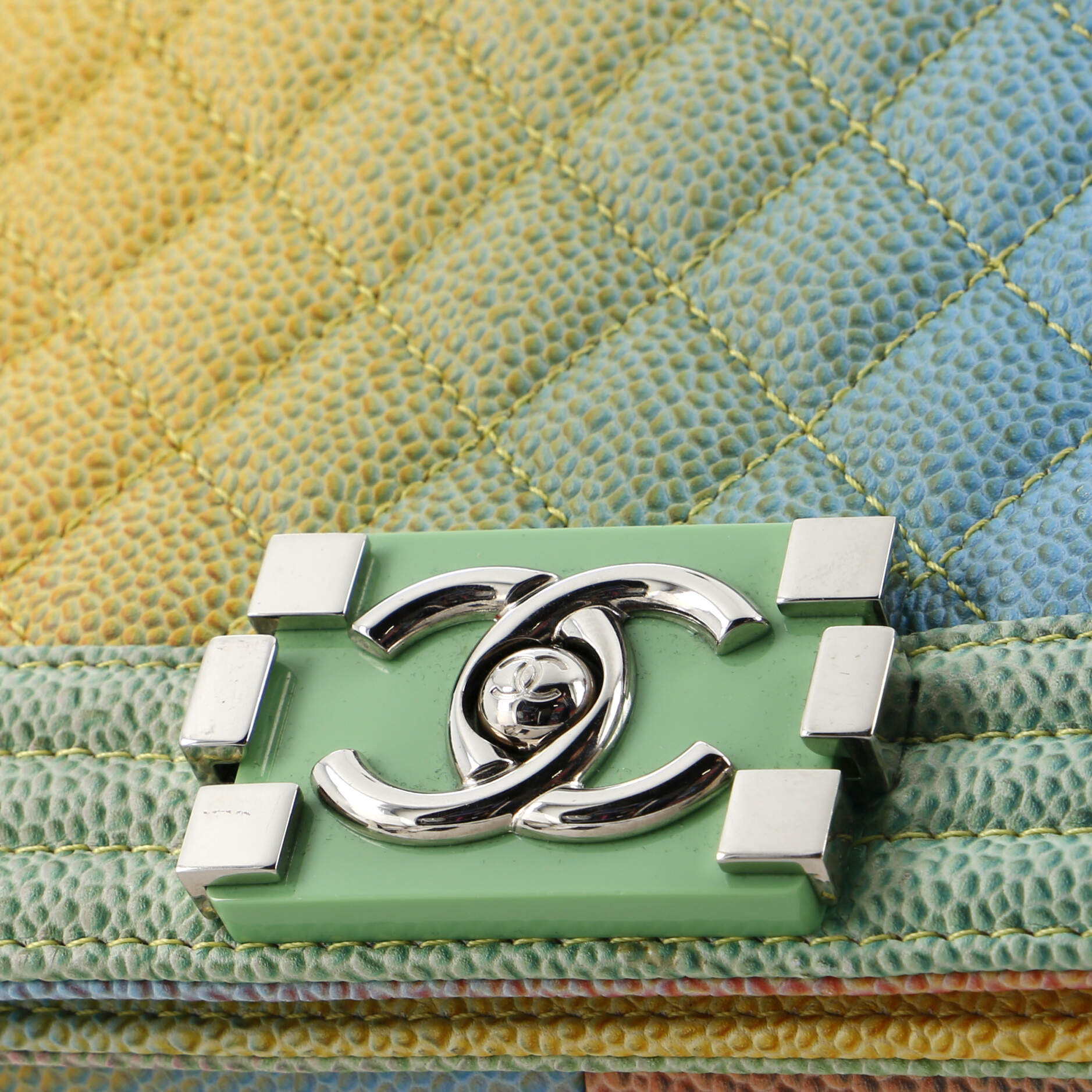 Whether you're dressing up for a special occasion or adding a pop of color to your everyday look, the Chanel Rainbow Boy Flap Bag is a versatile and timeless accessory that exudes luxury and style. Elevate your wardrobe with this statement piece that effortlessly combines classic elegance with a modern edge. Make a bold fashion statement with the Chanel Rainbow Boy Flap Bag in Old Medium size.