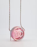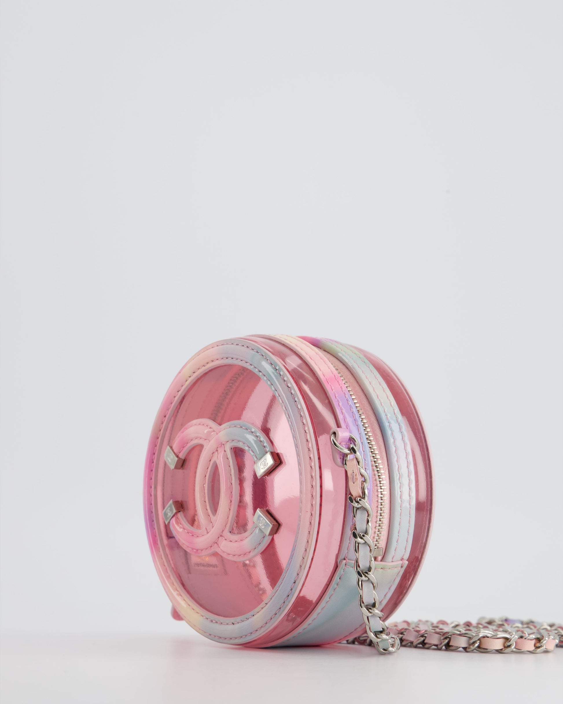Chanel Rainbow Pink Filigree PVC CC Mini Round Crossbody Bag with Silver Hardware