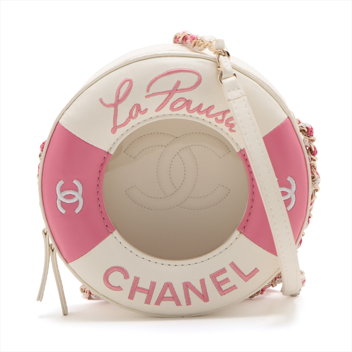 Chanel Rapauza in Chain Shoulder Bag White x Pink G