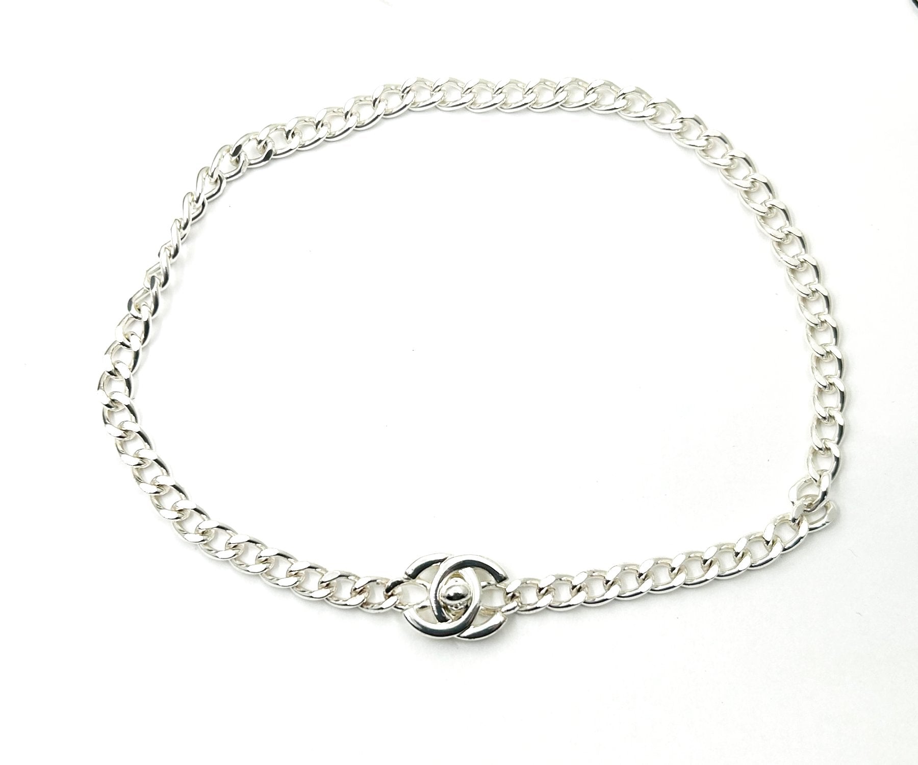 Chanel Rare Vintage Silver CC Small Turnlock Chain Choker Necklace.