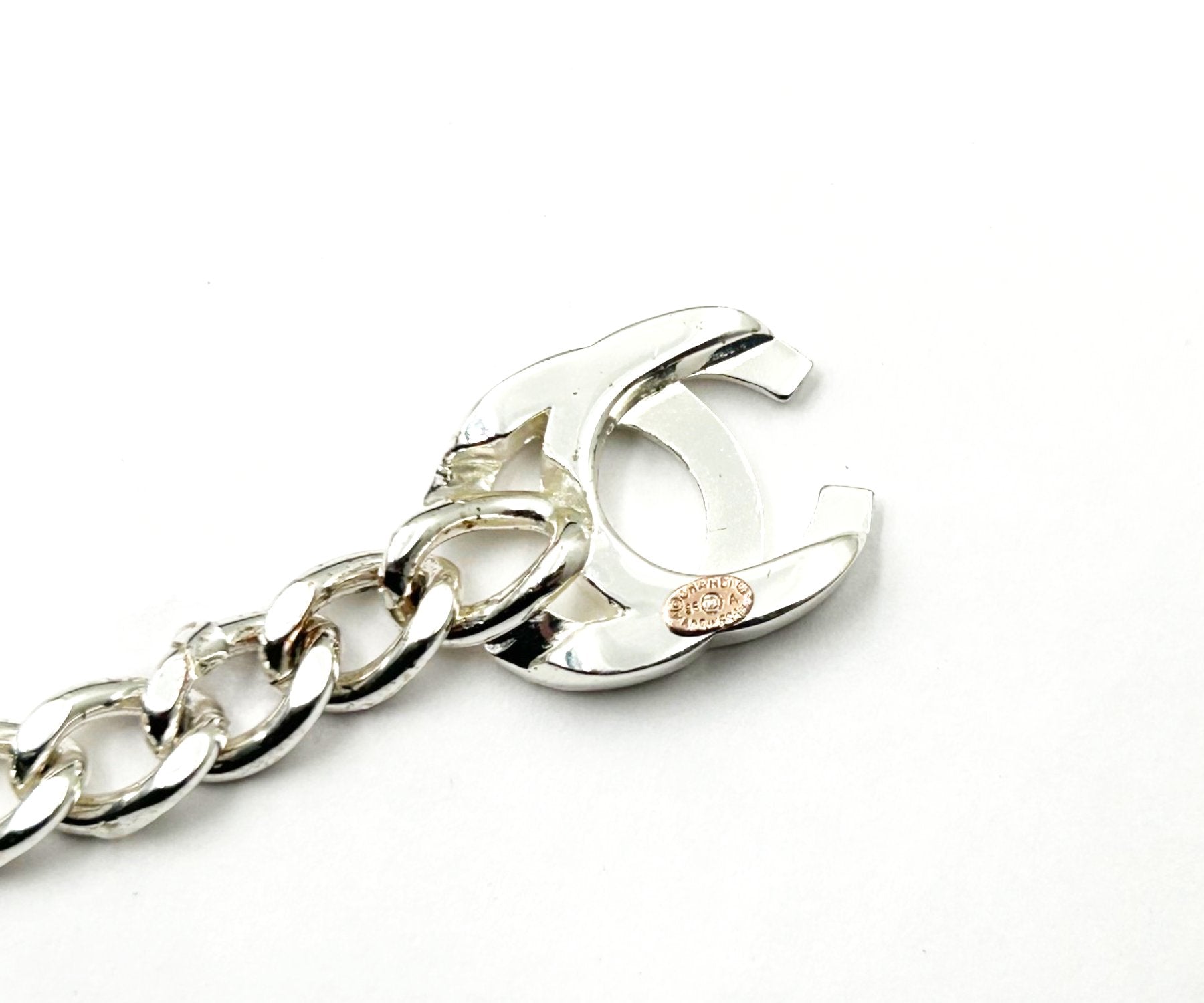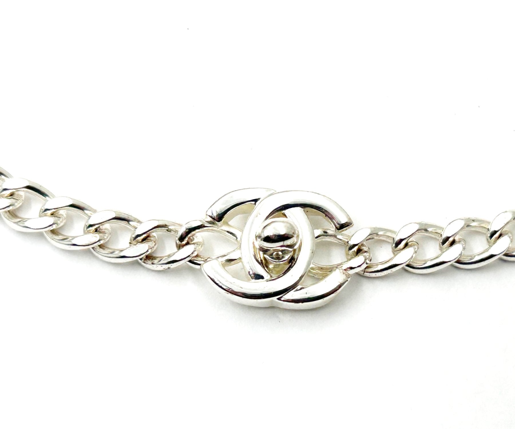 CHANEL Rare Vintage Silver CC Small Turnlock Chain Choker Necklace