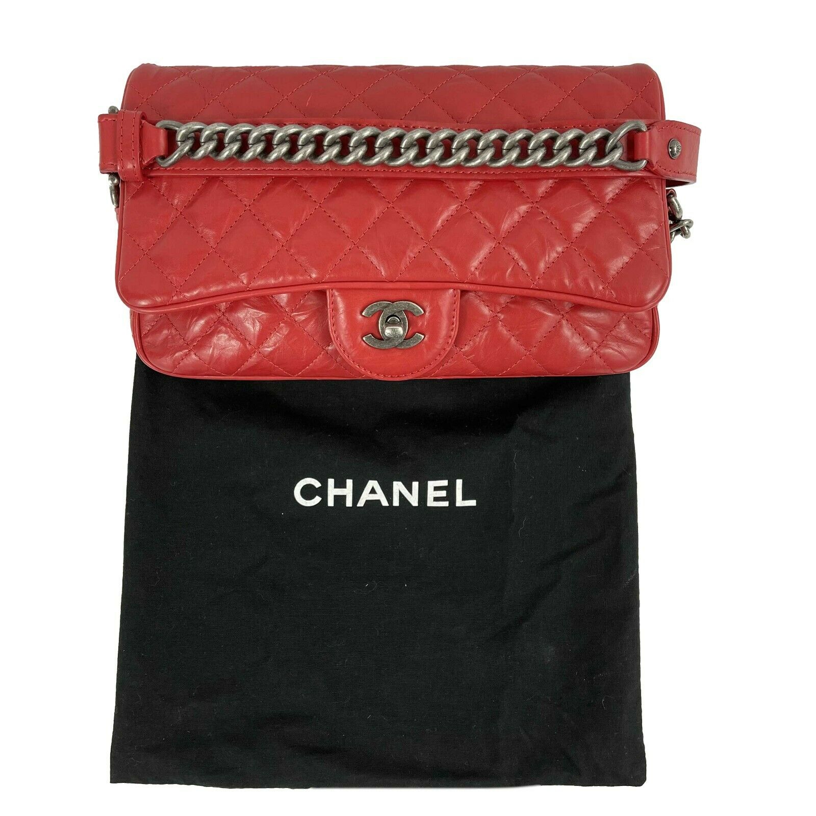 CHANEL - Very Good - 2016 Crinkled Leather Boy-Chain Flap - Red - Handbag