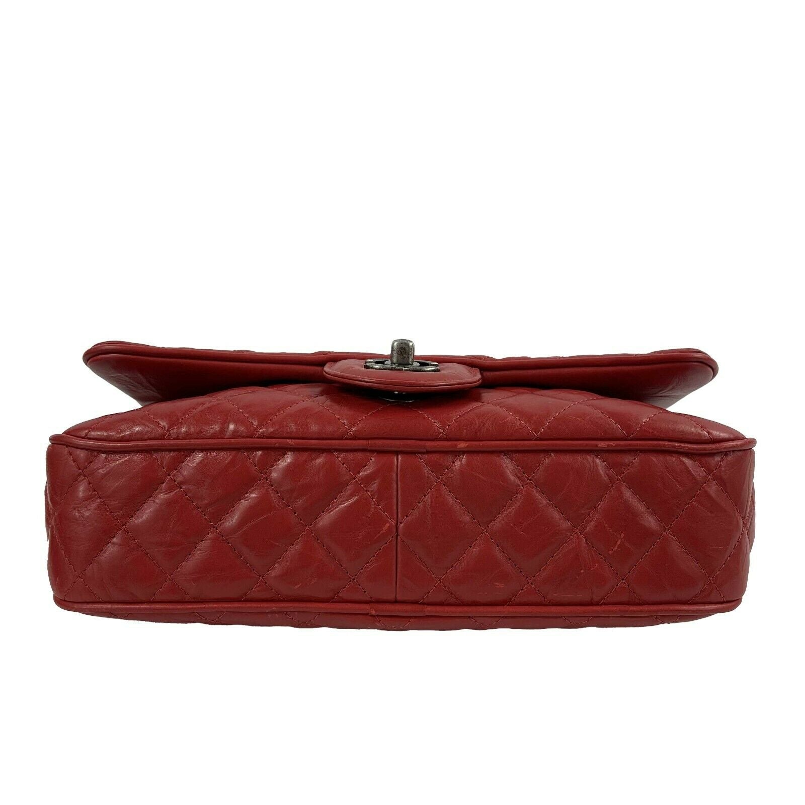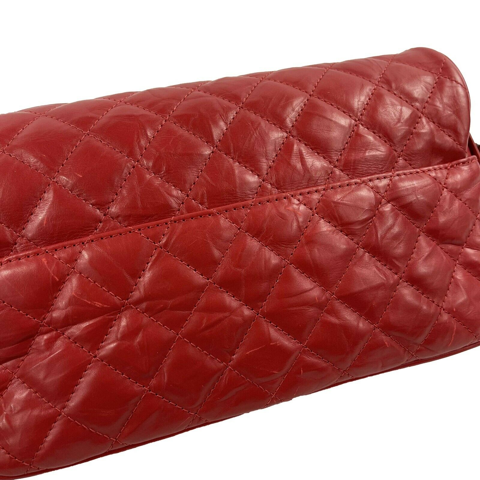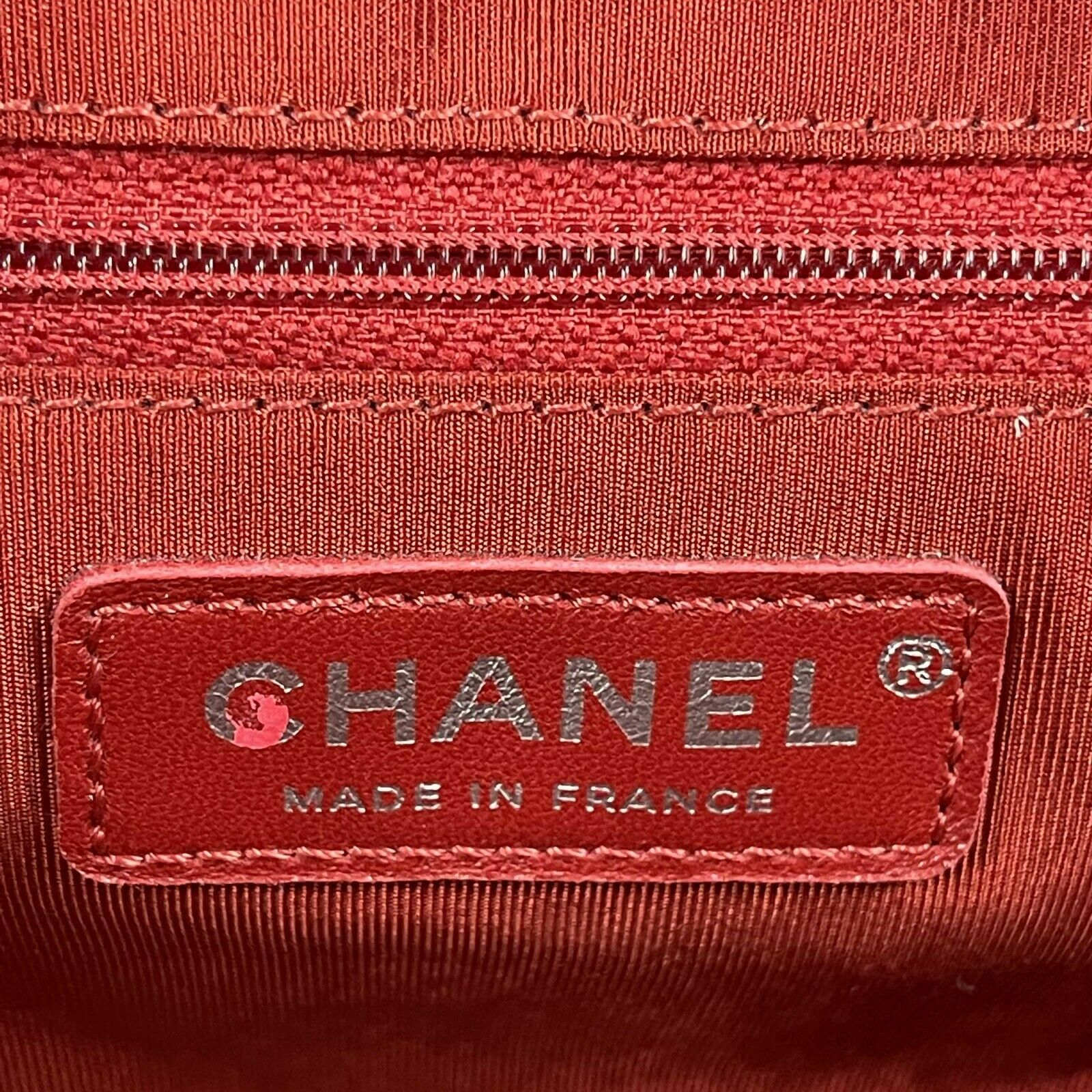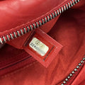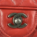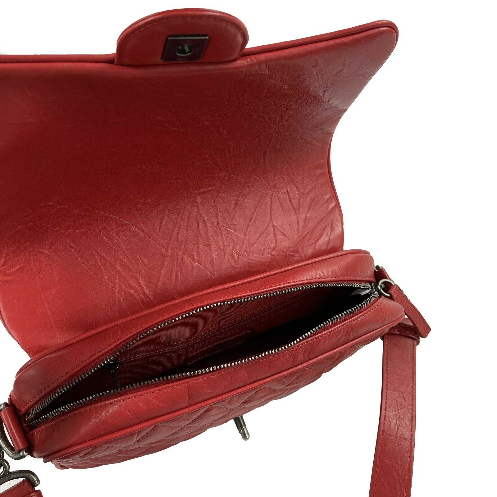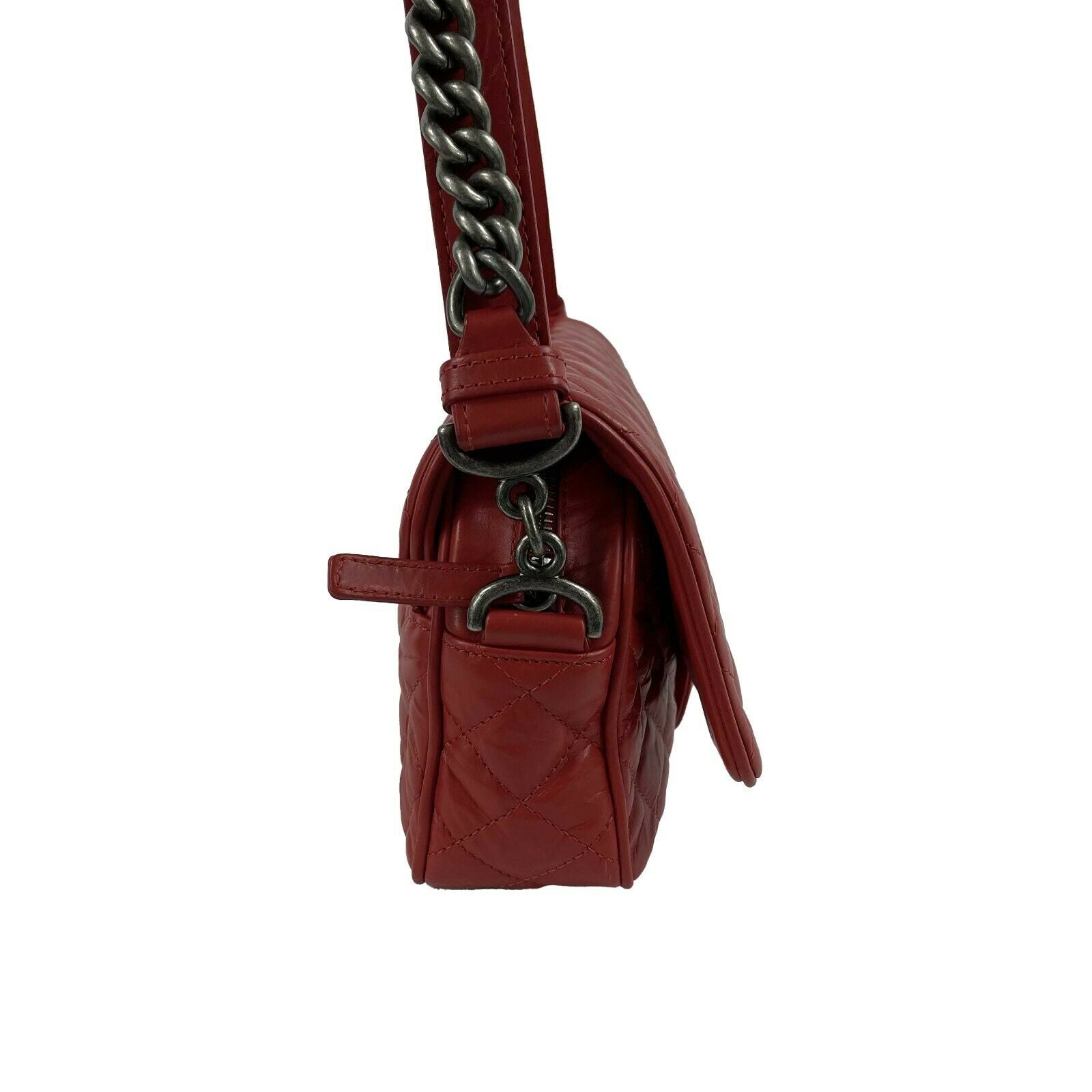 CHANEL Red Crinkled Leather Boy Chain Flap Bag / Silver-Aged - Shoulder Bag
