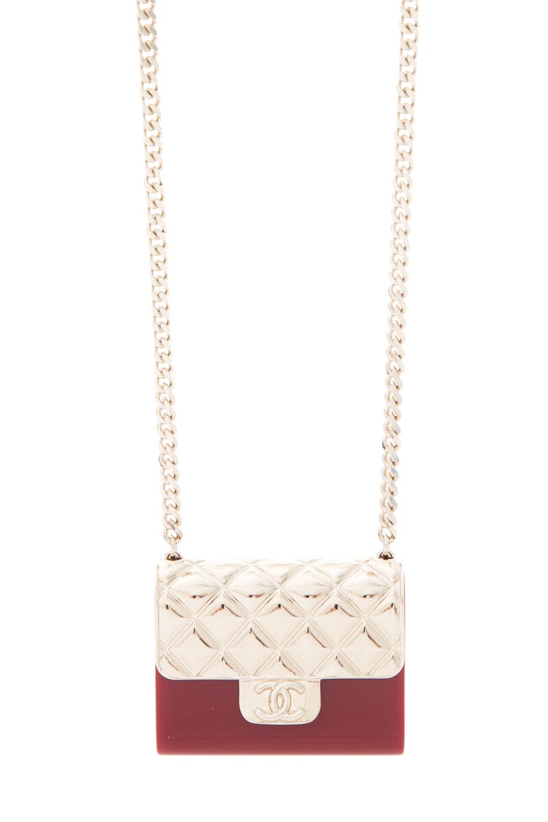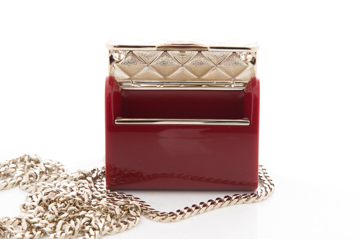 Chanel Red & Gold Resin Quilted Minaudiere Flap Clutch on Chain