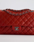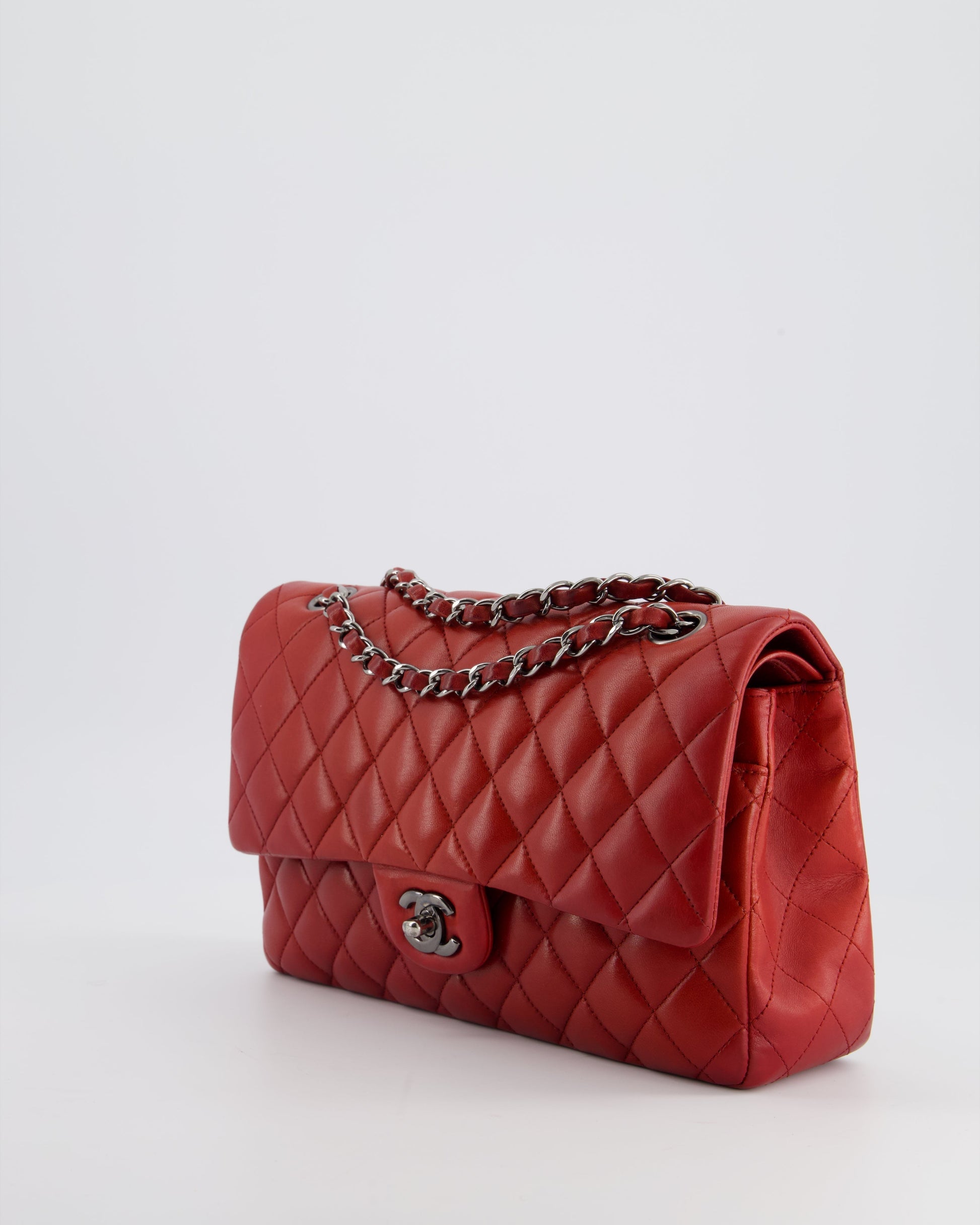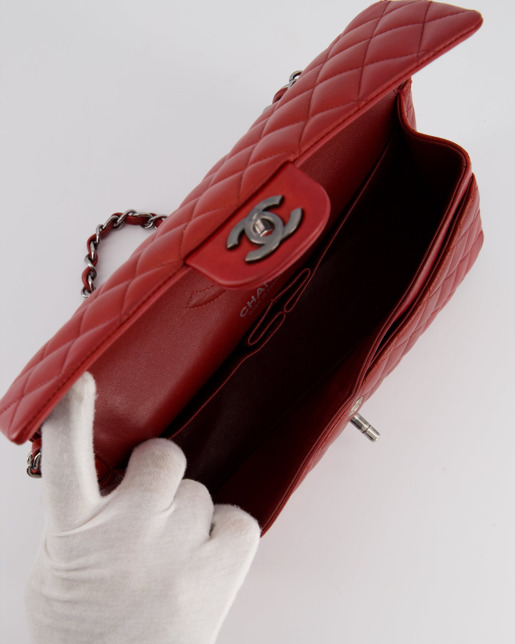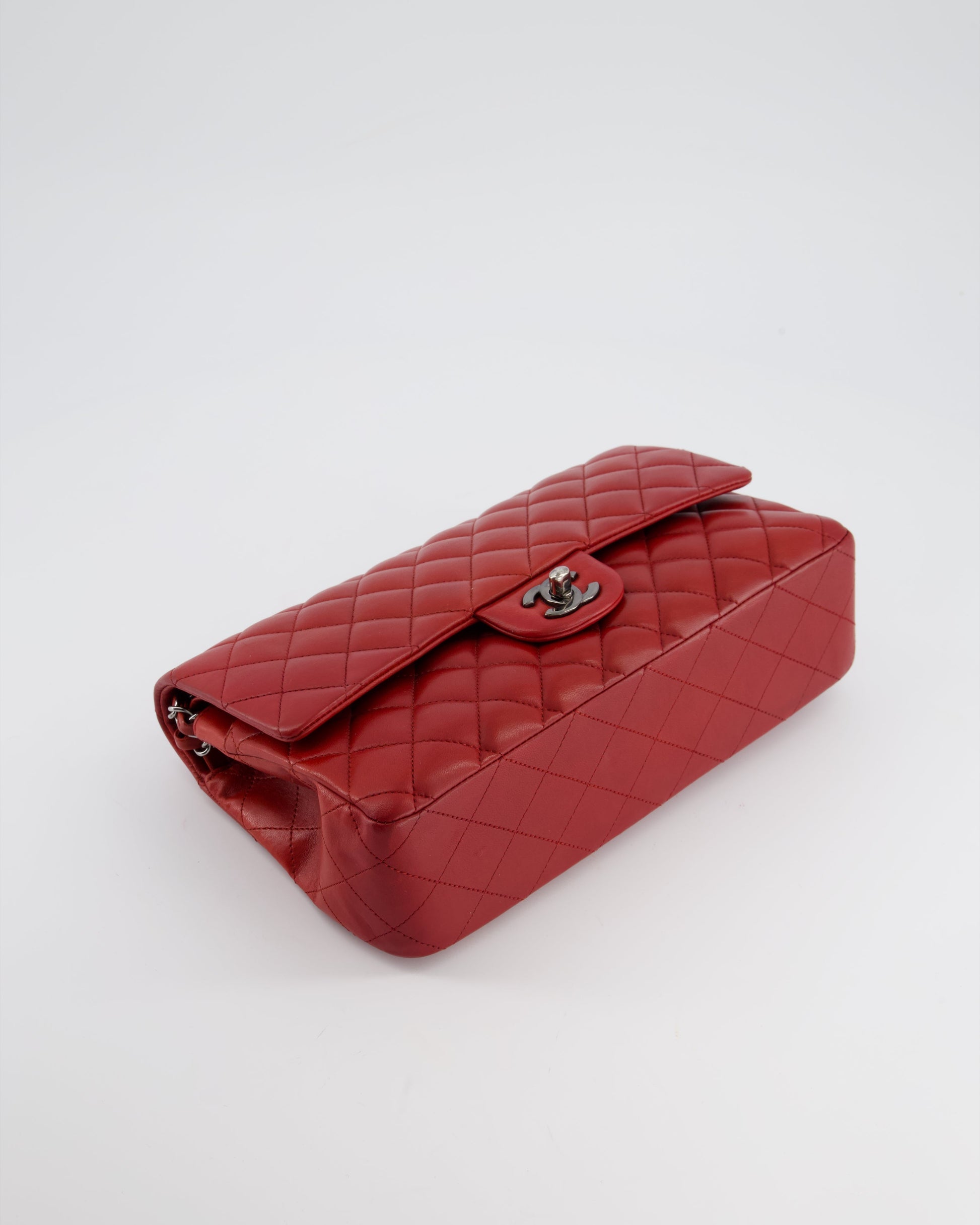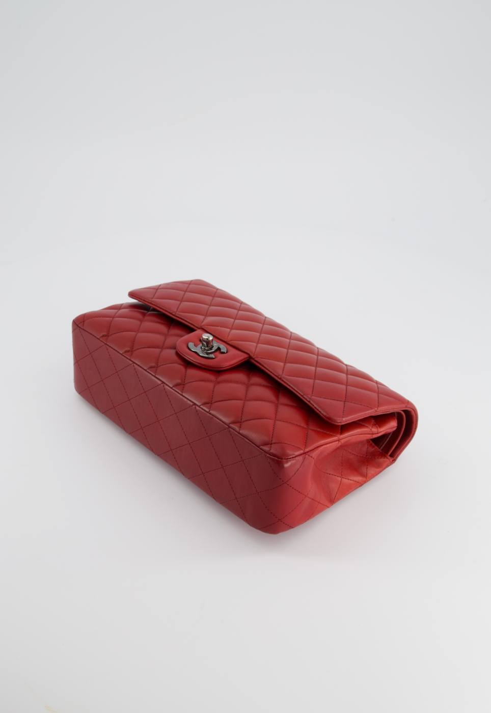 Chanel Red Medium Classic Double Flap Bag in Lambskin Leather with Gun Metal Silver Hardware RRP £8530