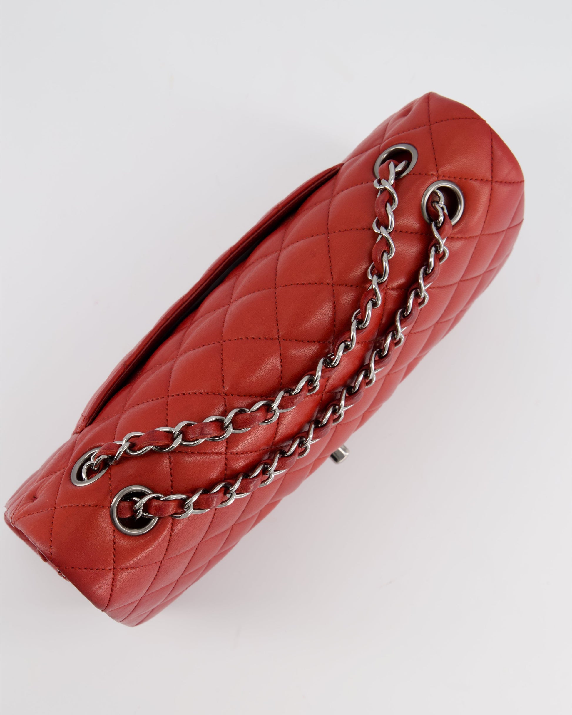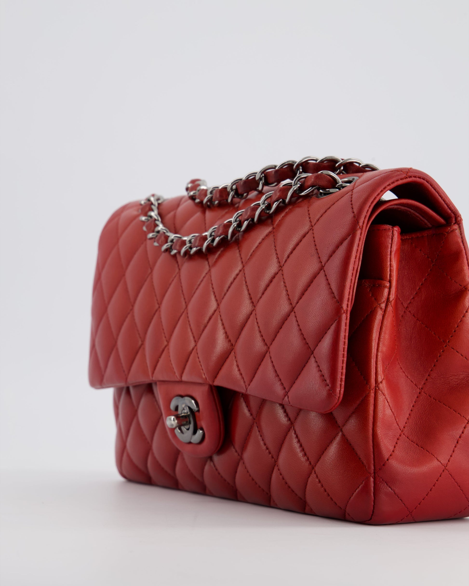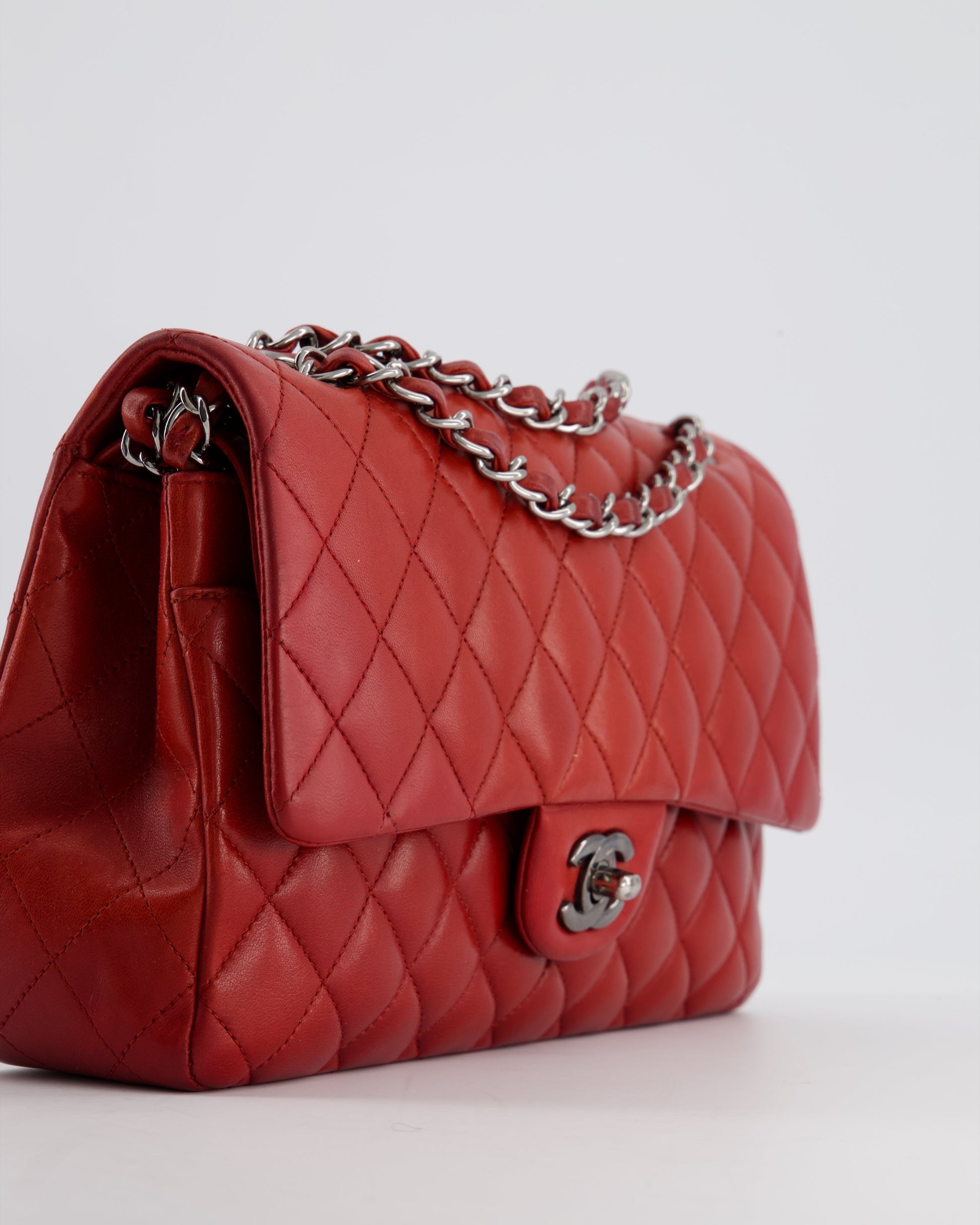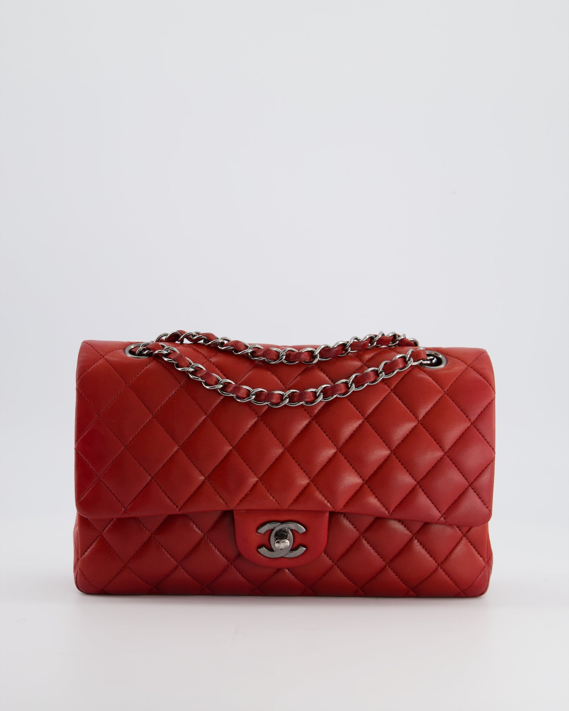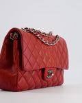 Chanel Red Medium Classic Double Flap Bag in Lambskin Leather with Gun Metal Silver Hardware RRP £8530