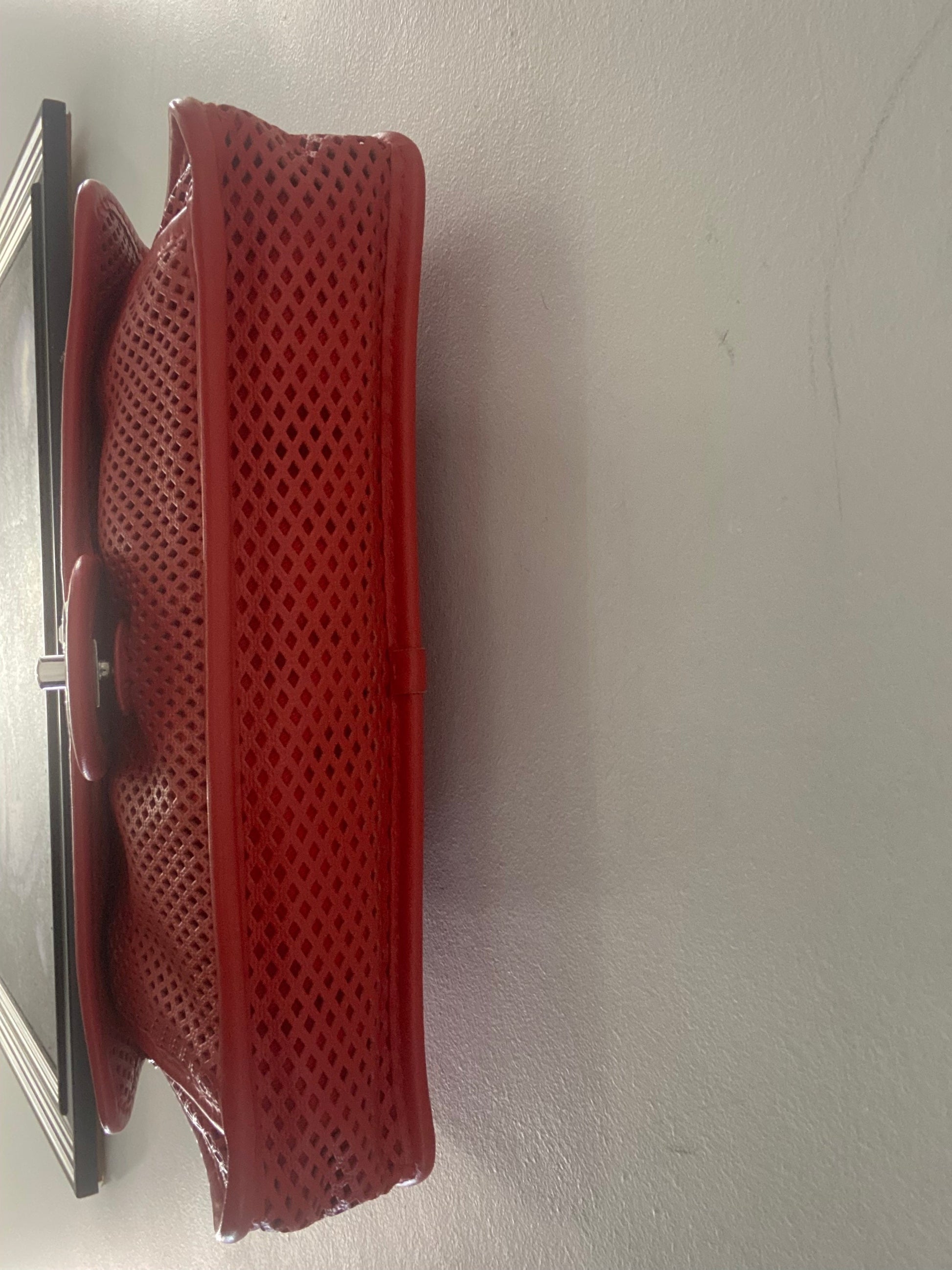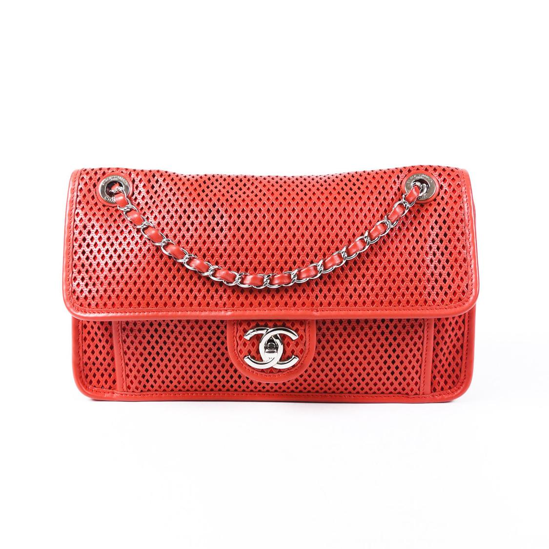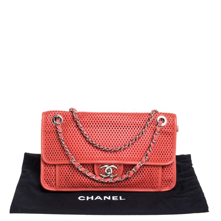 This bag is crafted from perforated leather and comes in a beautiful shade of red. Features a sophisticated silhouette, and comes with a front flap with the iconic CC turn-lock that opens to a fabric interior spaced to house your essentials.