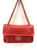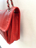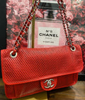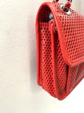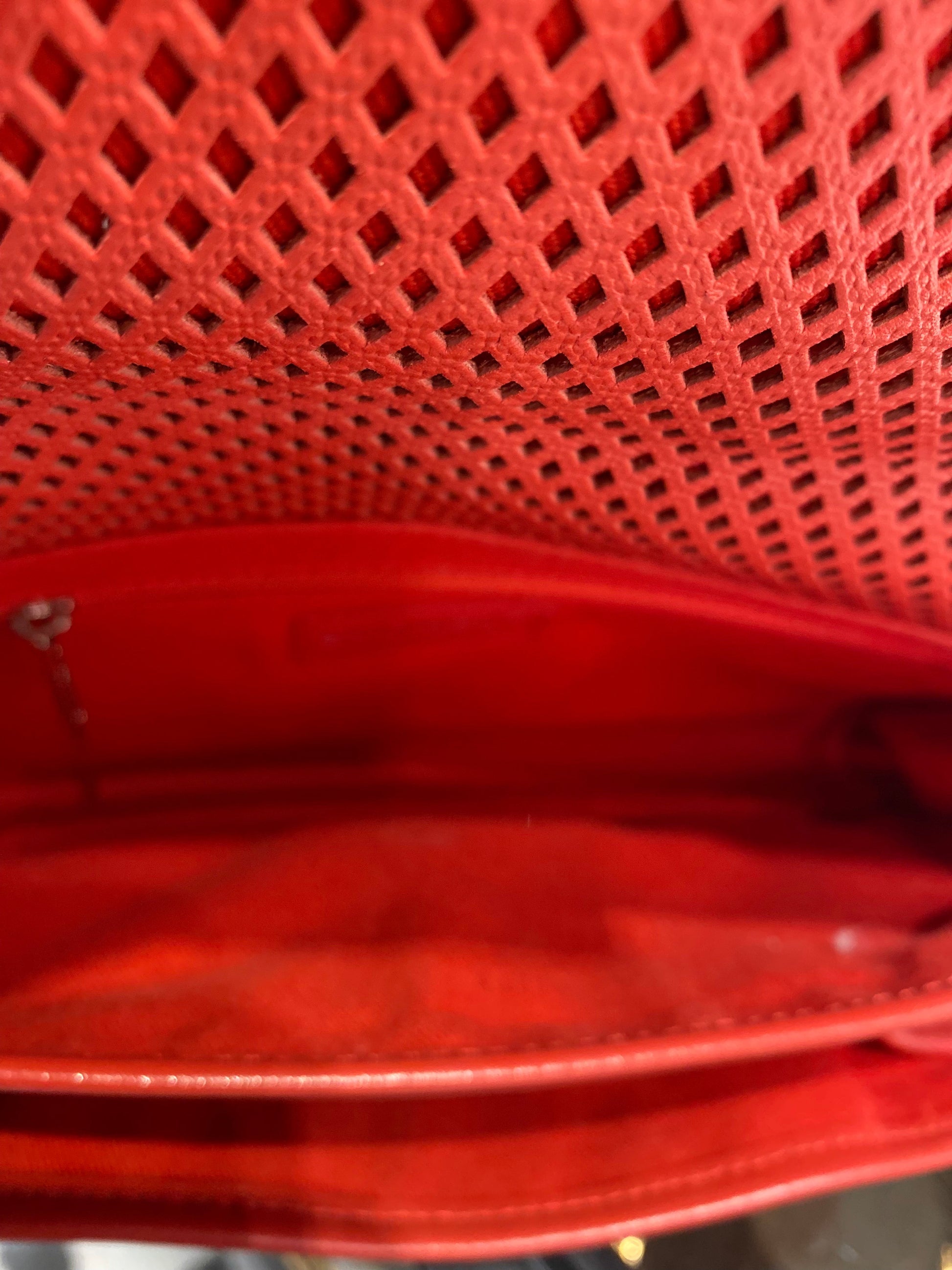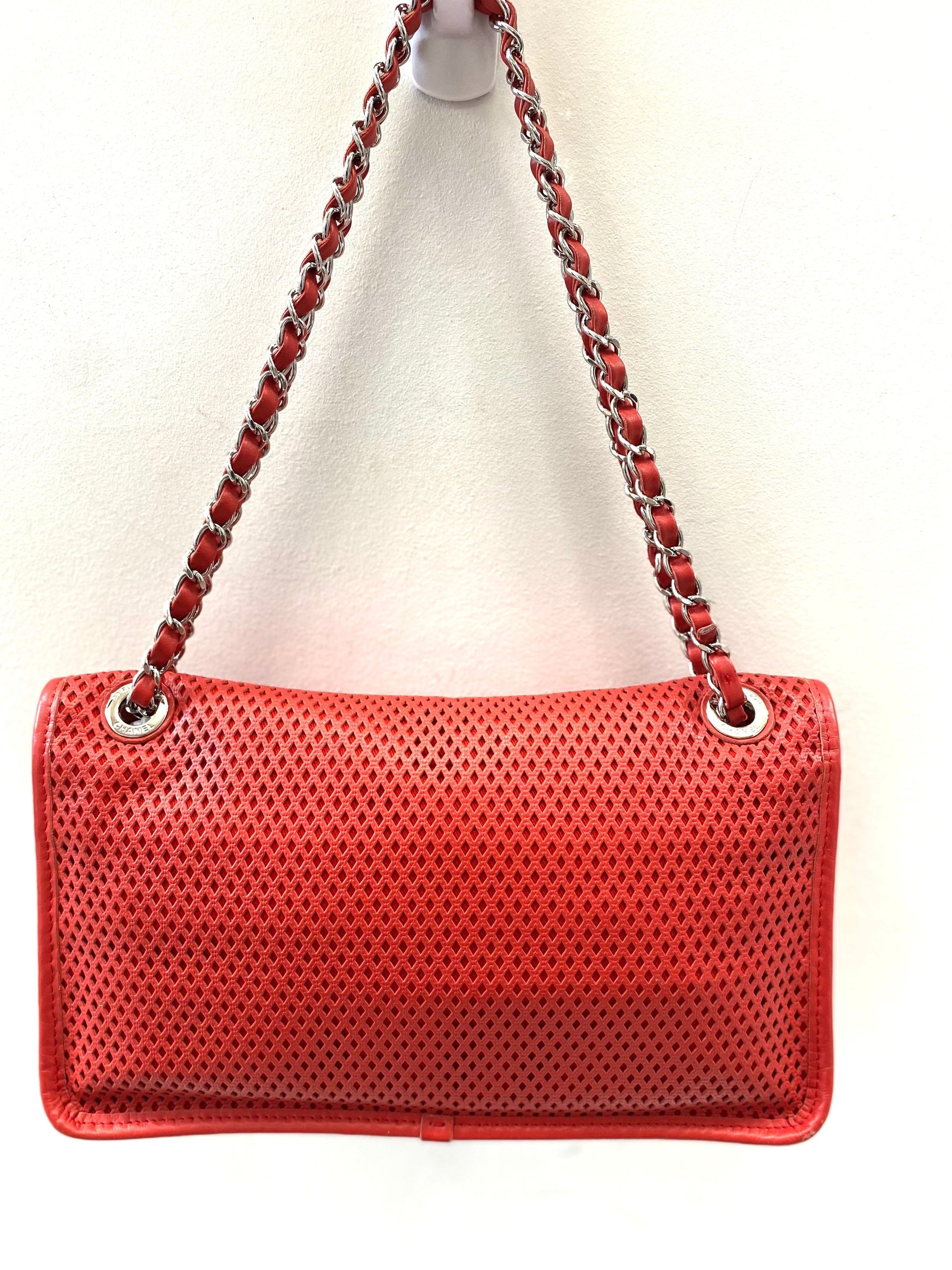 Chanel Red Perforated Lambskin Leather Up in the Air Flap Bag With Silver Hardware.