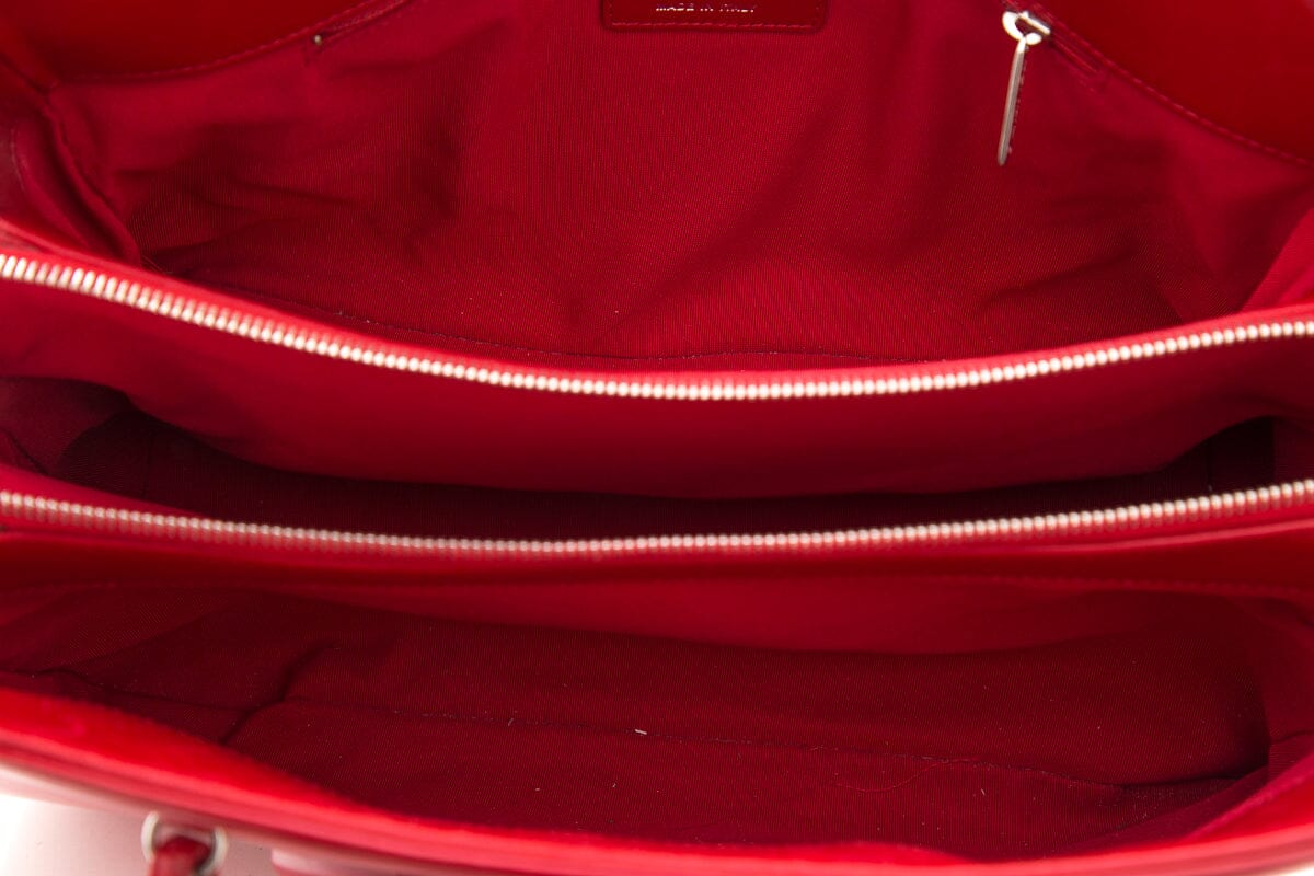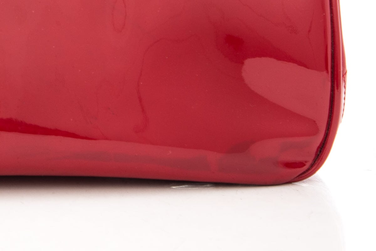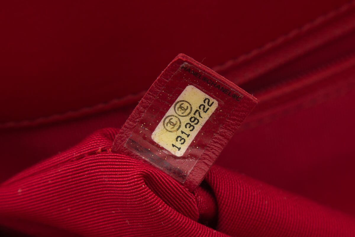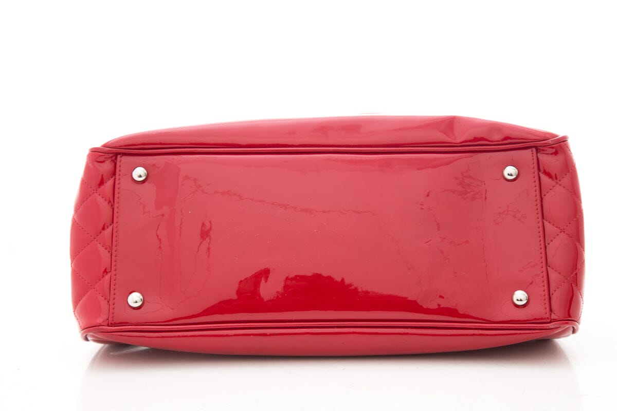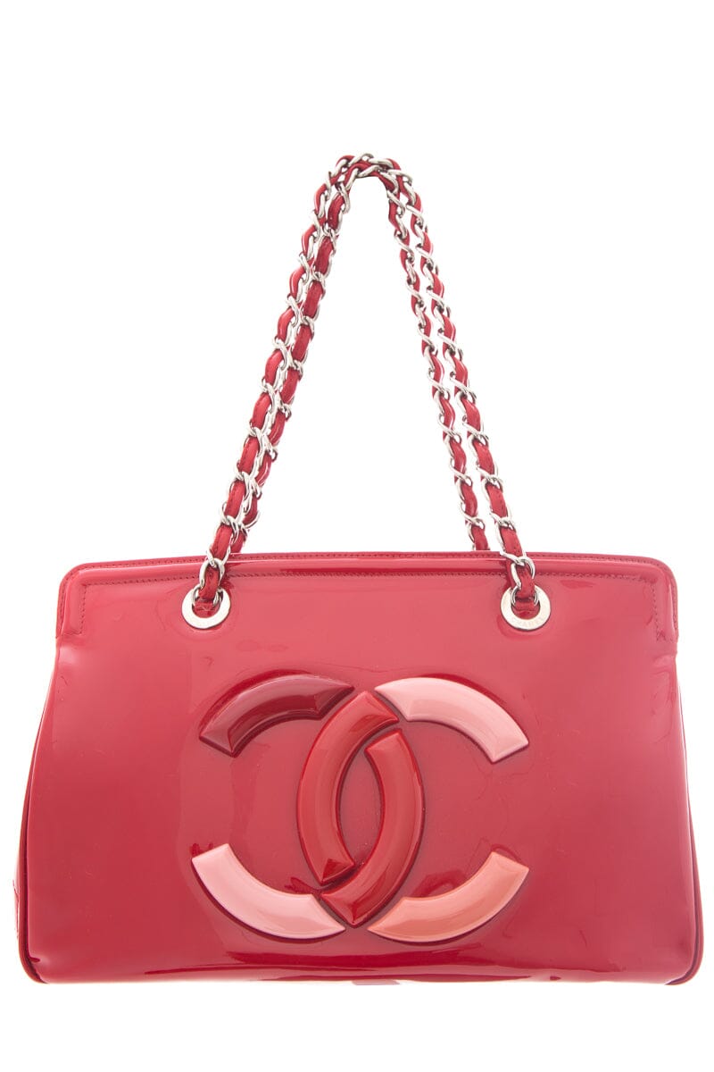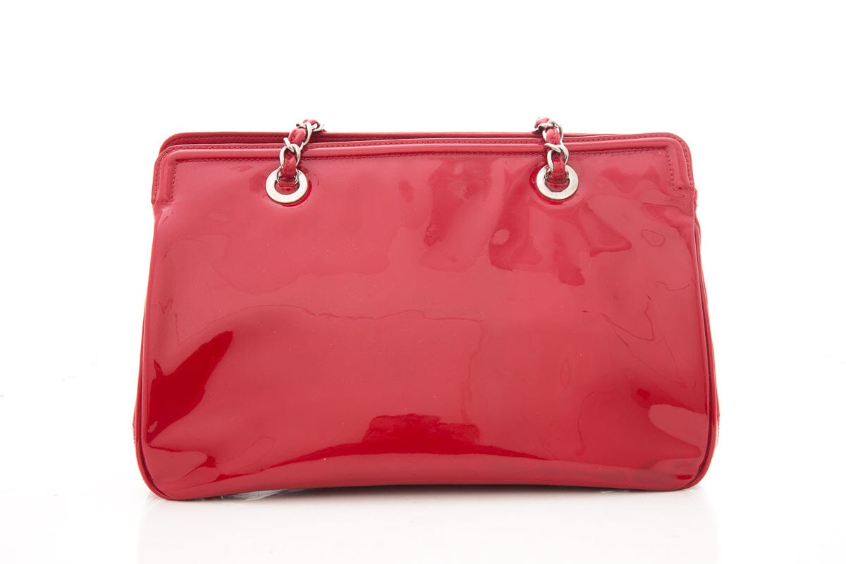 Chanel Red/Pink Lipstick Patent Leather Handbag. This item is in good condition; some color transfer.