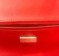 This bag is crafted of python in red. It features a back pocket, gold-tone hardware with plated top handle, and a leather-threaded chain strap. The front CC logo has a turn-style closure which opens the flap to a red leather interior with one zip pocket.