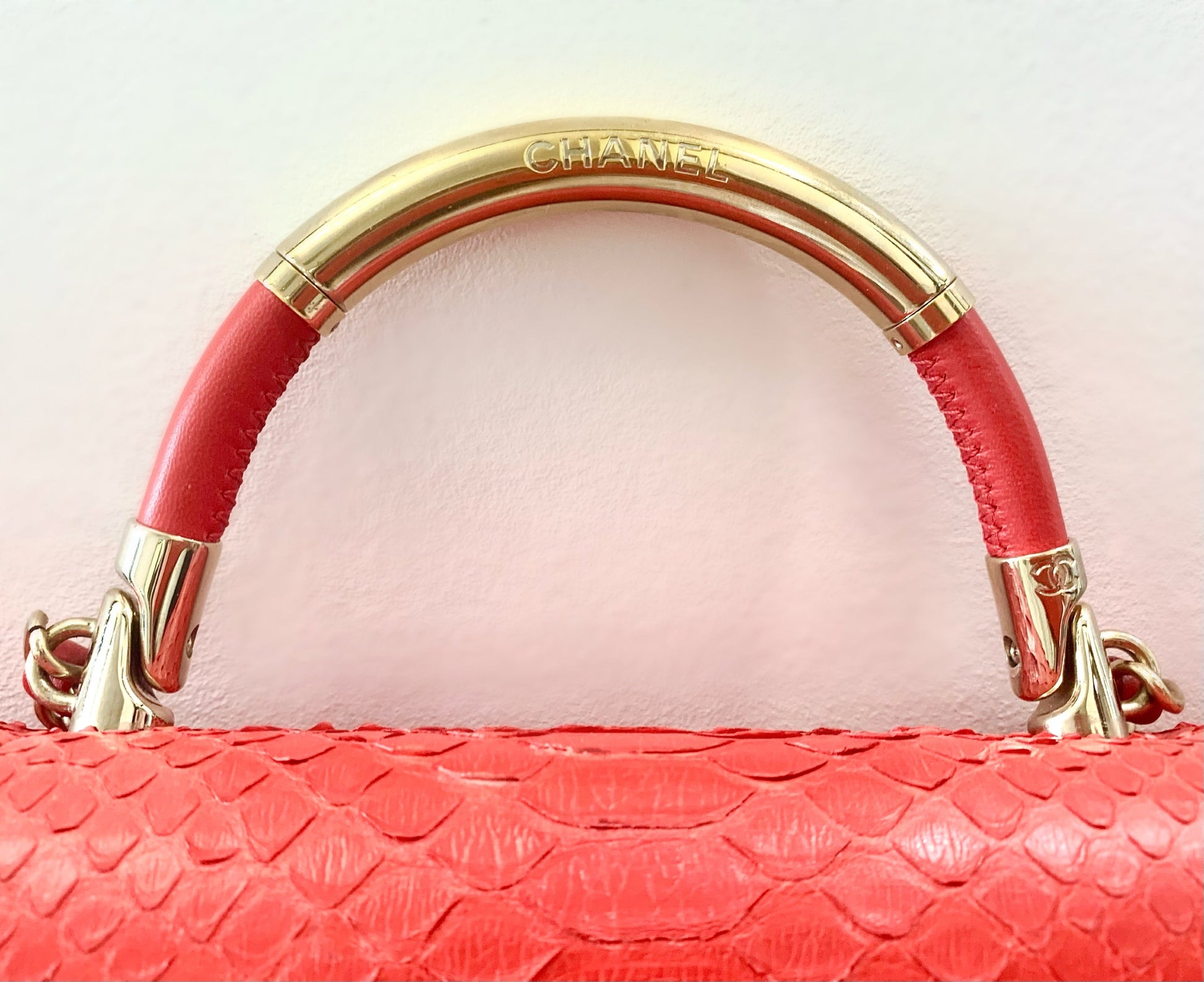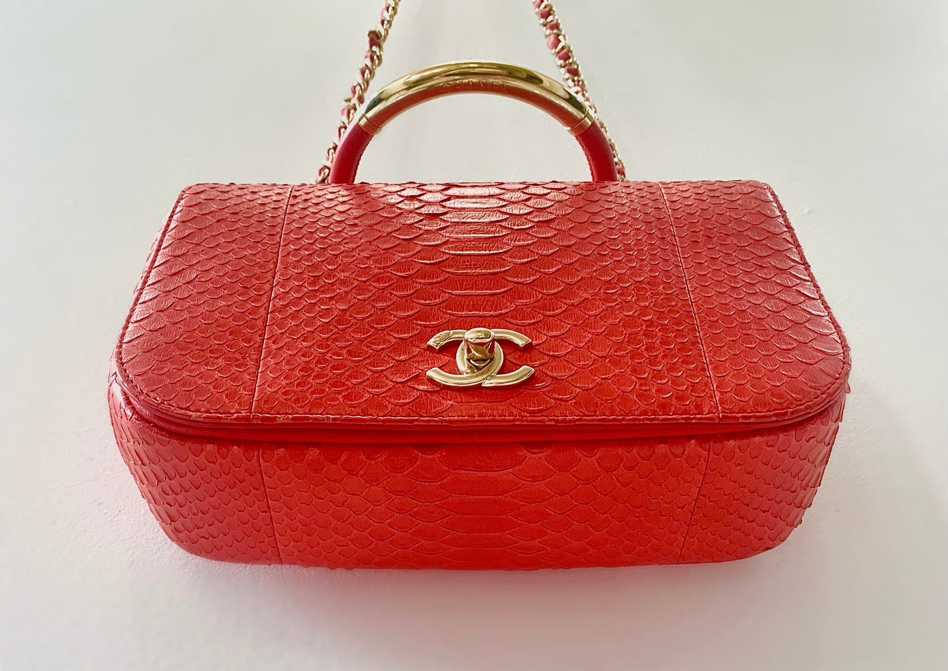 CHANEL RED PYTHON FLAP BAG