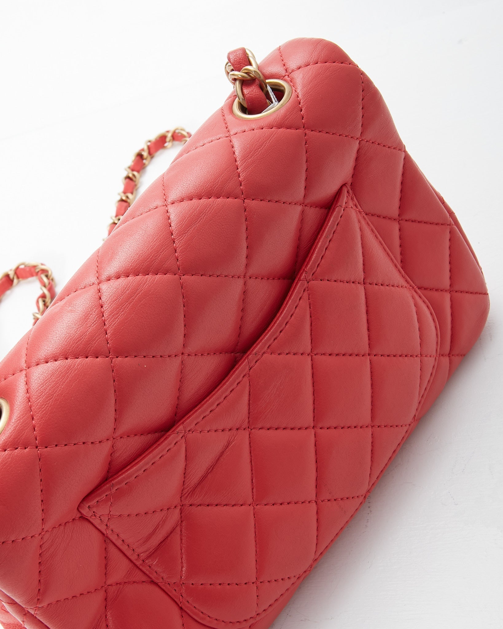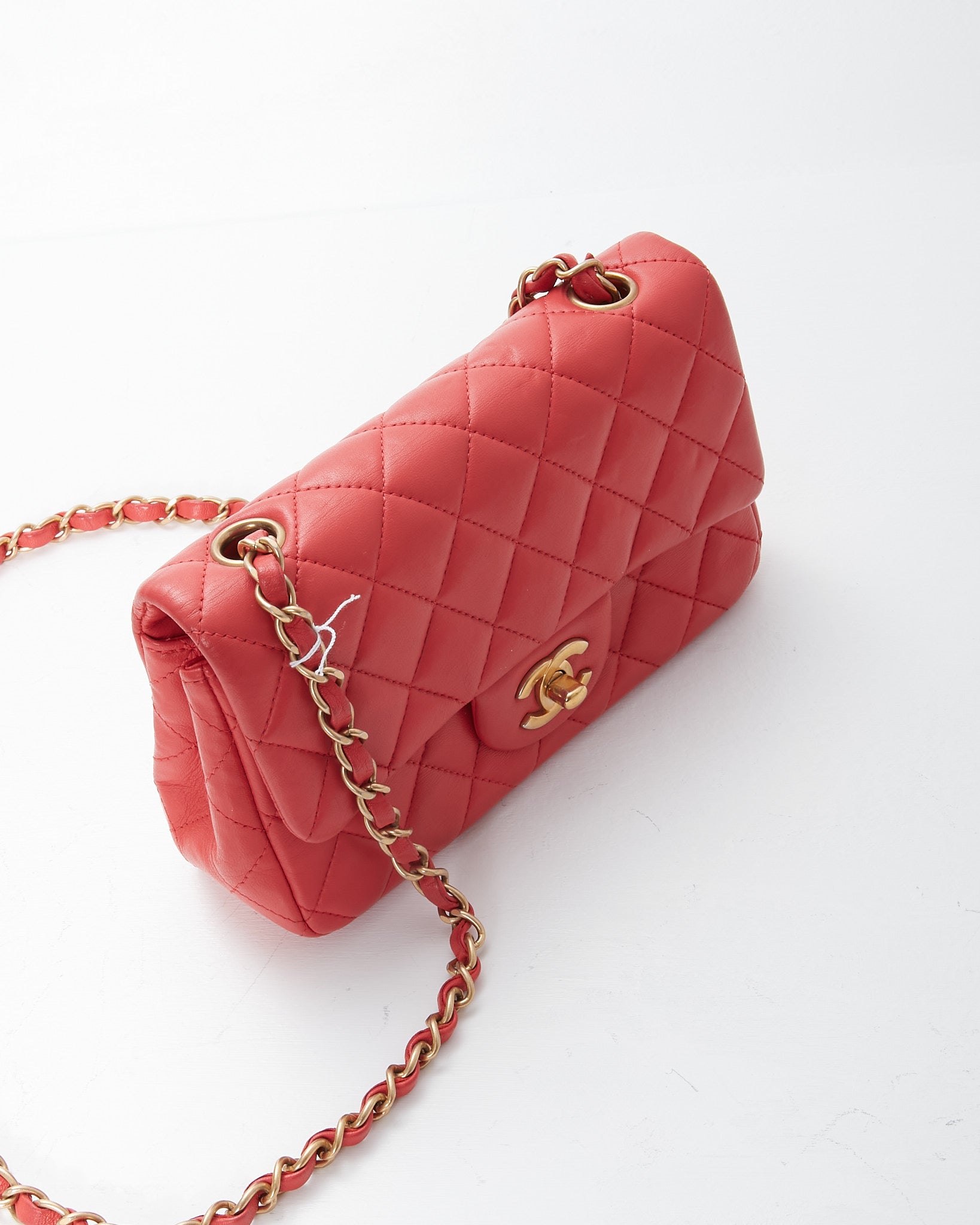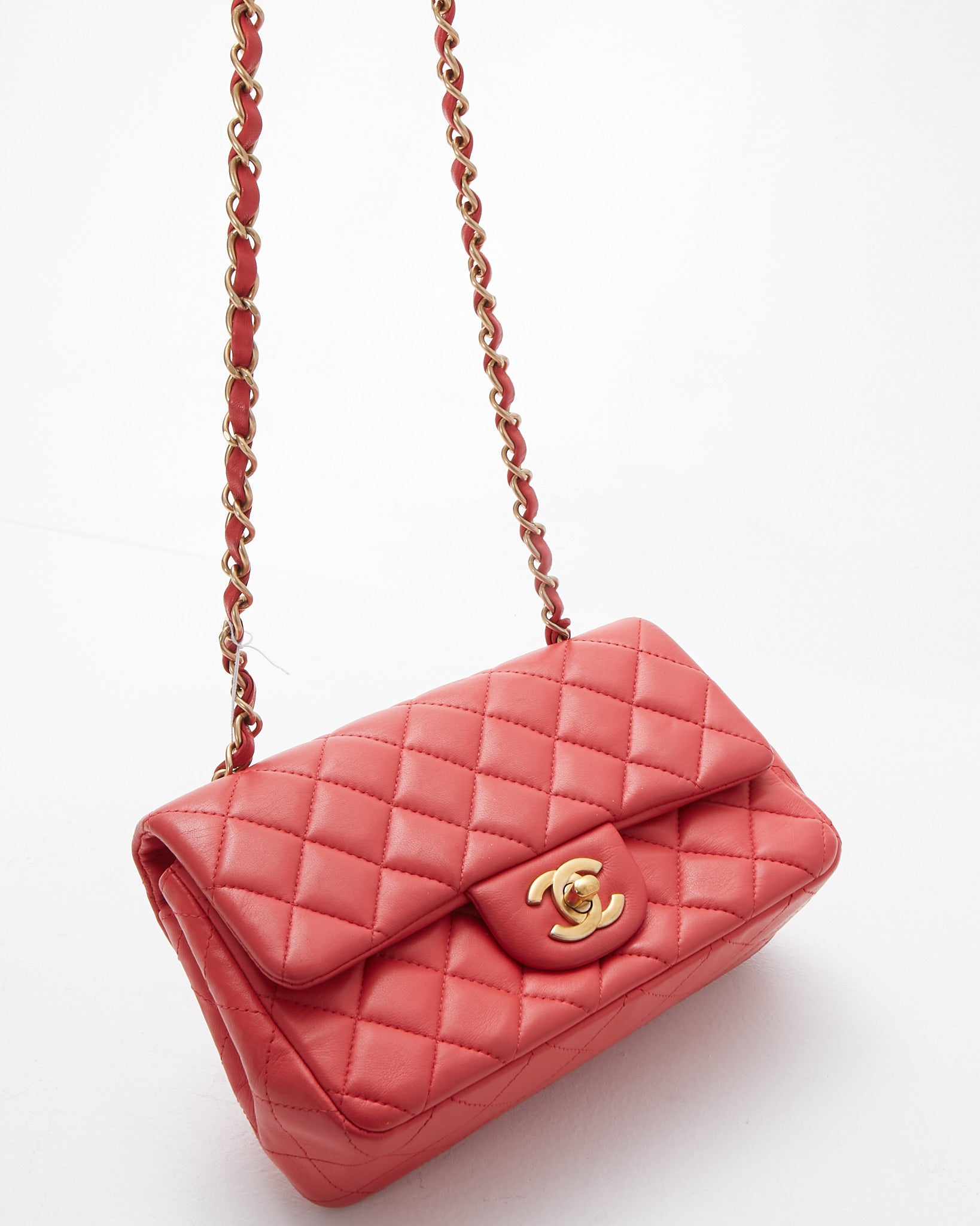 Chanel Red Quilted Leather Mini Rectangular Classic Chain Flap Bag