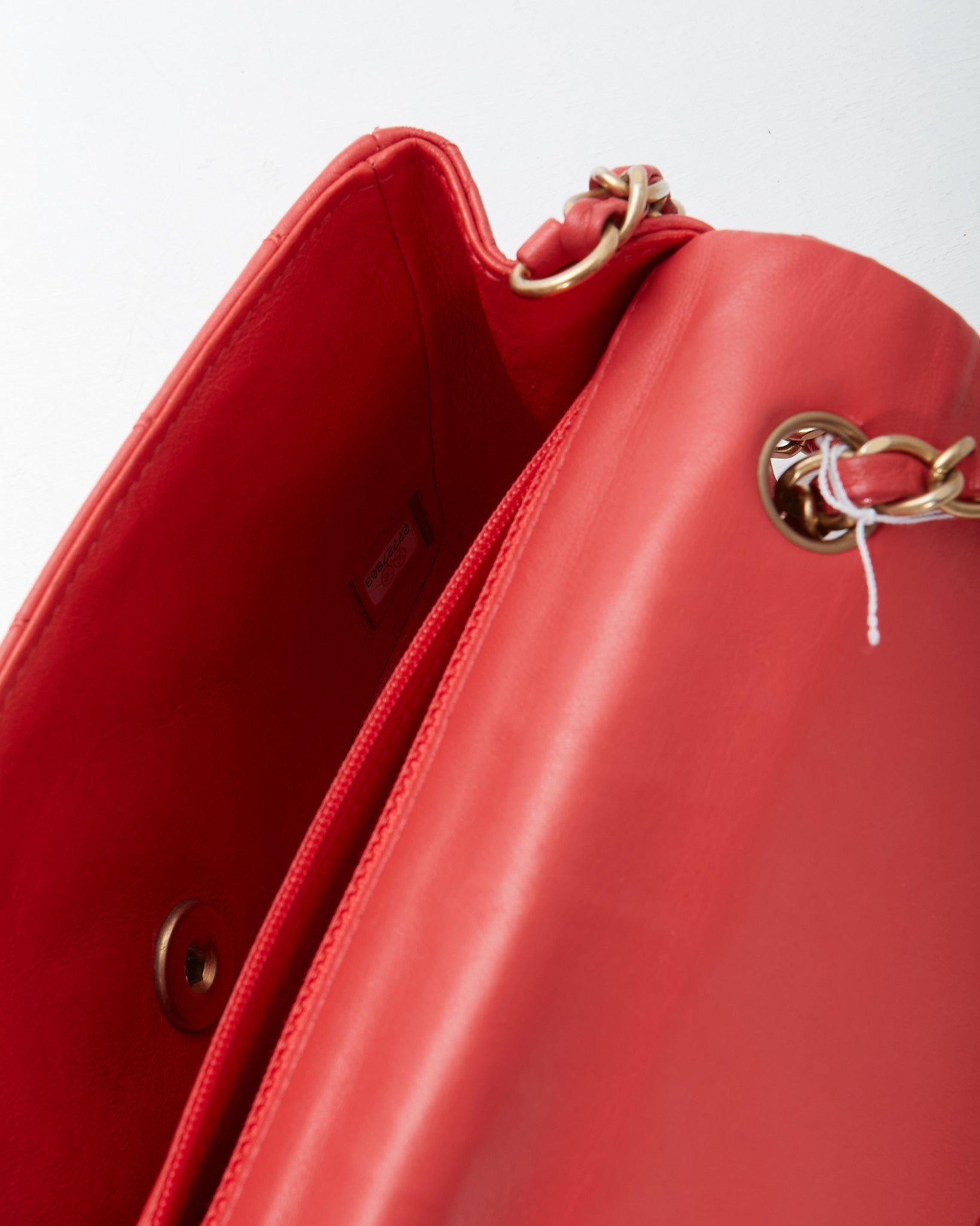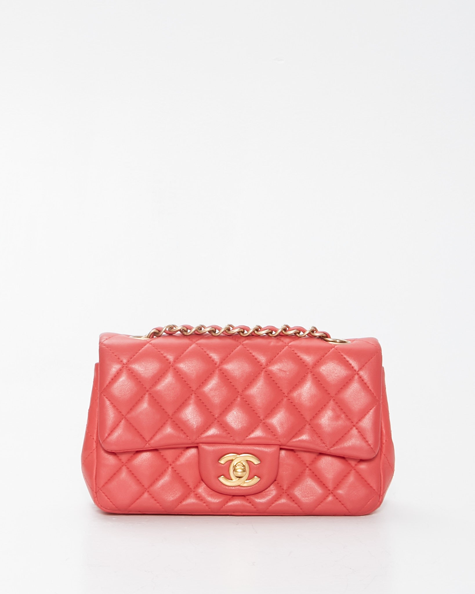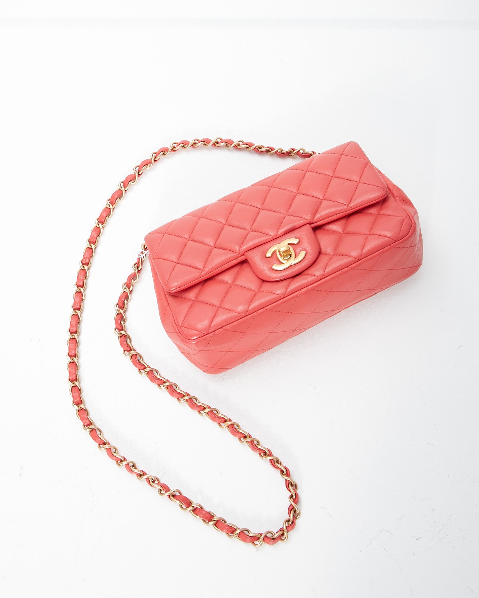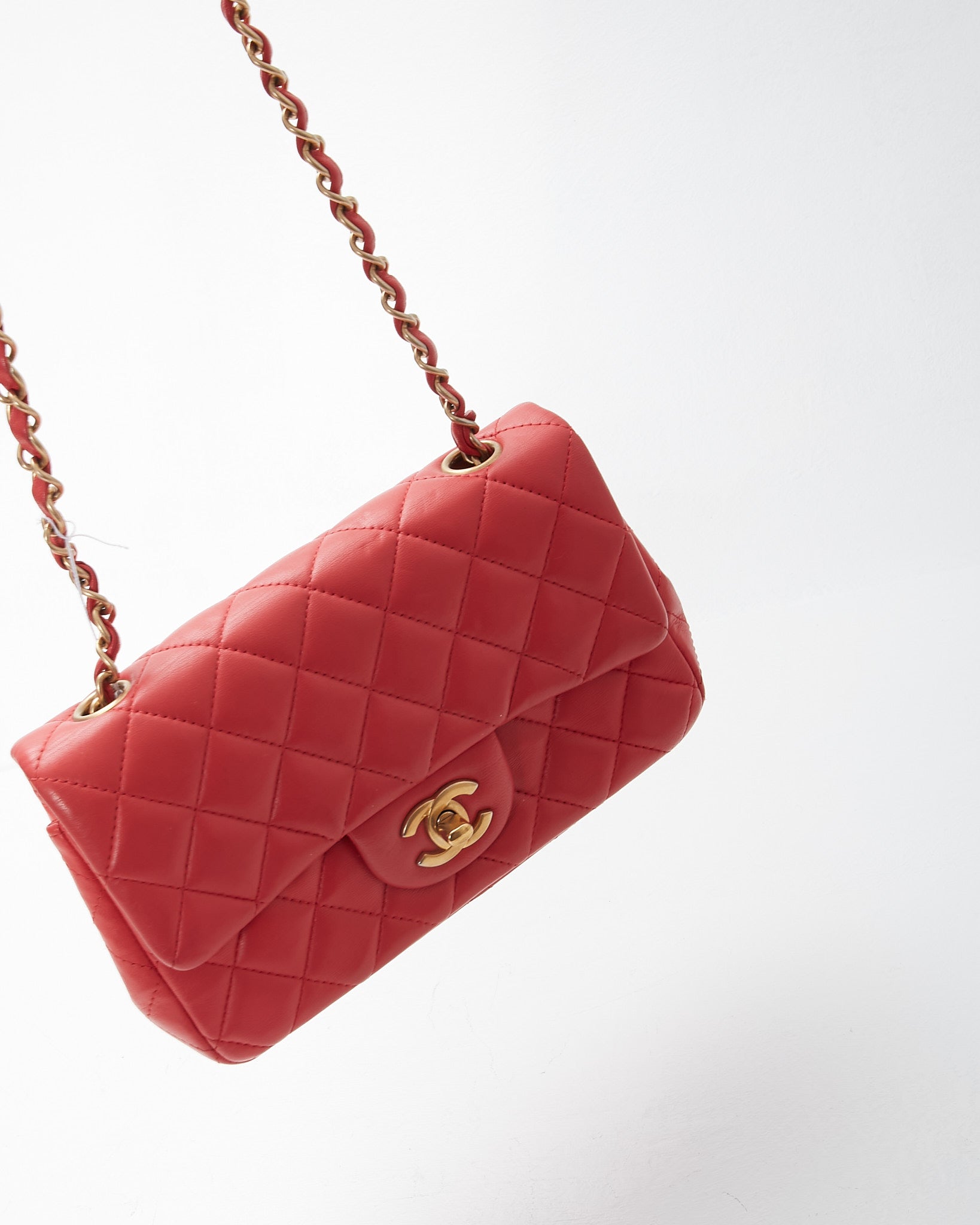 Chanel Red Quilted Leather Mini Rectangular Classic Chain Flap Bag