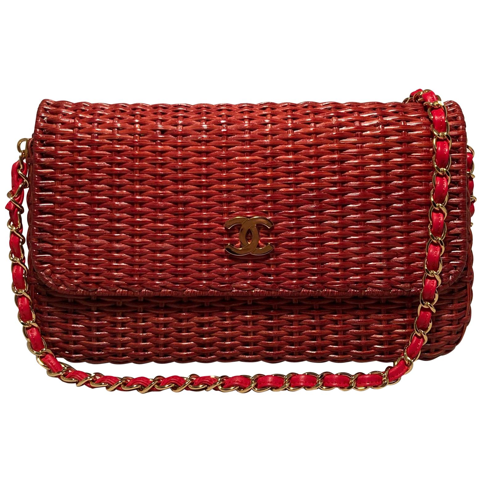 Chanel Red Wicker Classic Flap Shoulder Bag in excellent condition.
