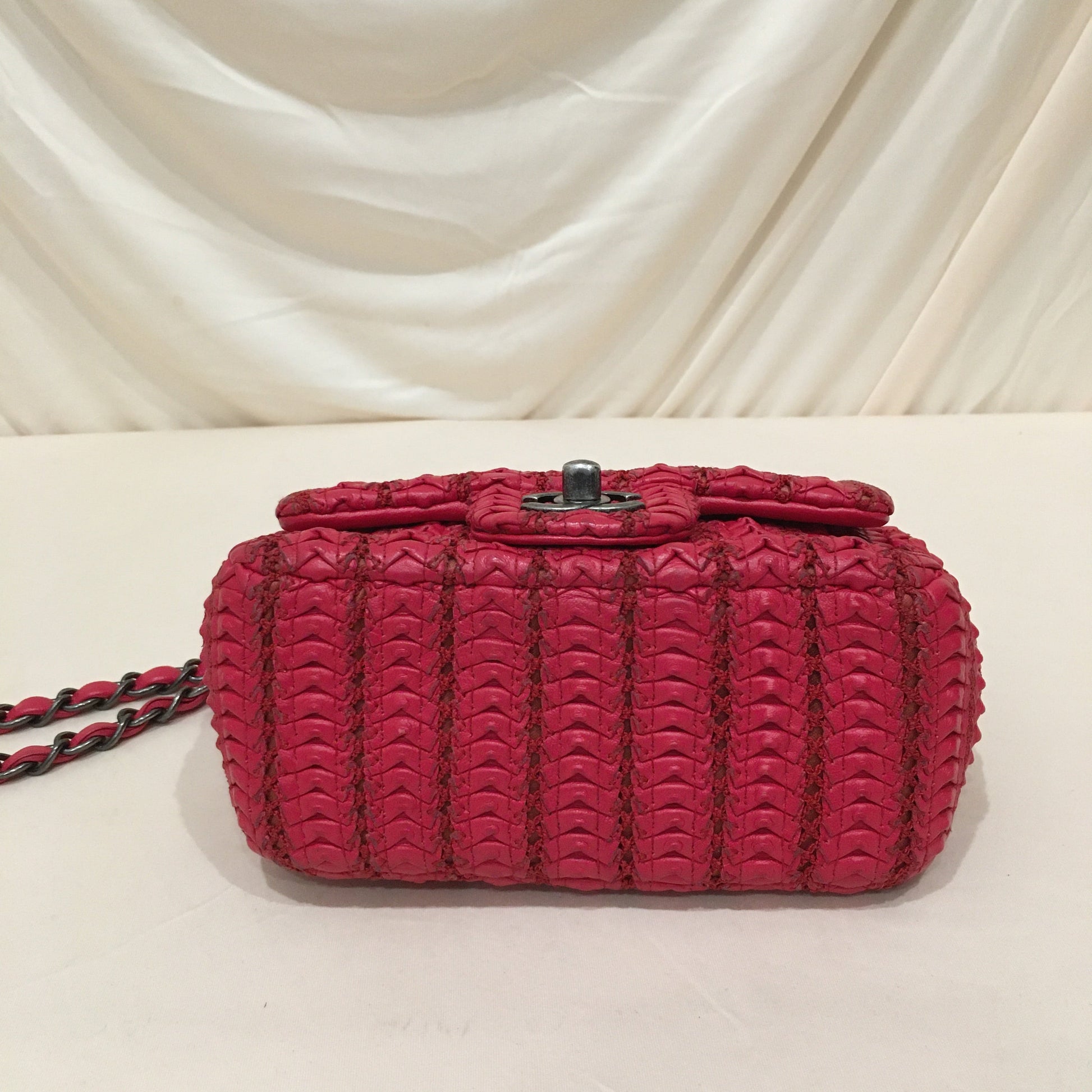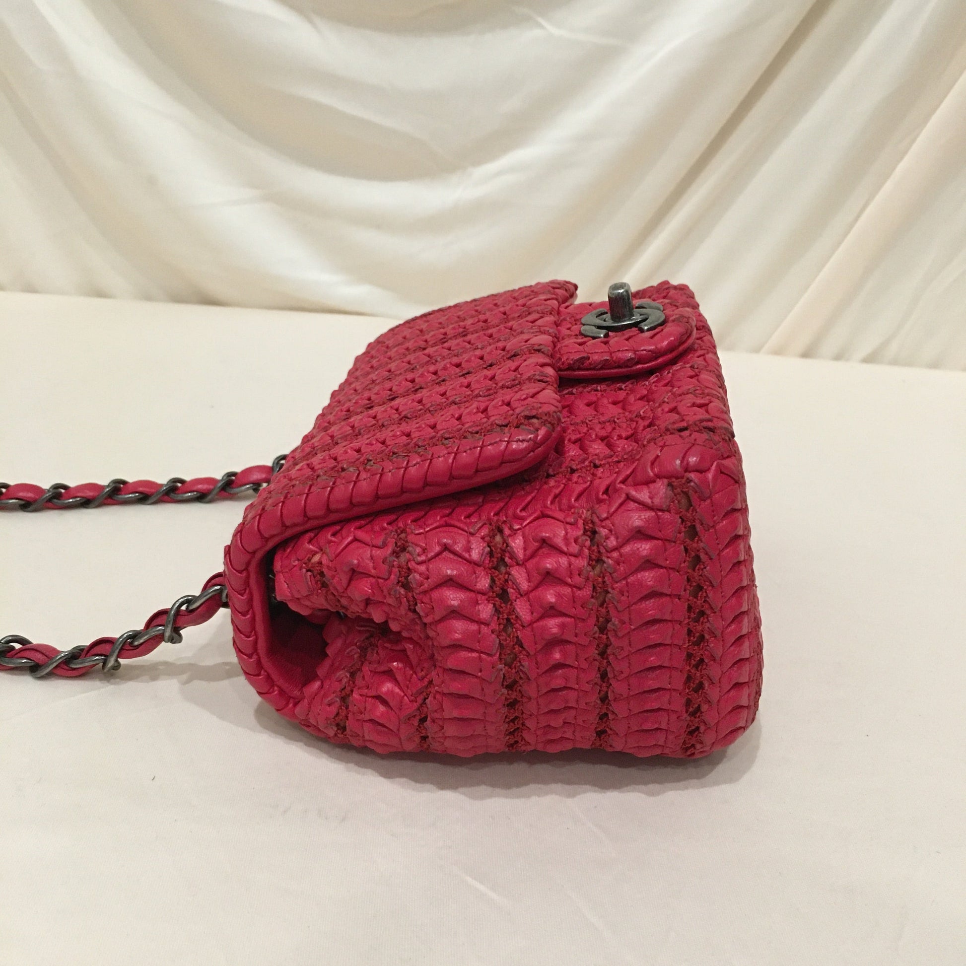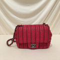 Chanel Red Woven Braided Leather Square Single Flap Crossbody Bag Sku# 75888