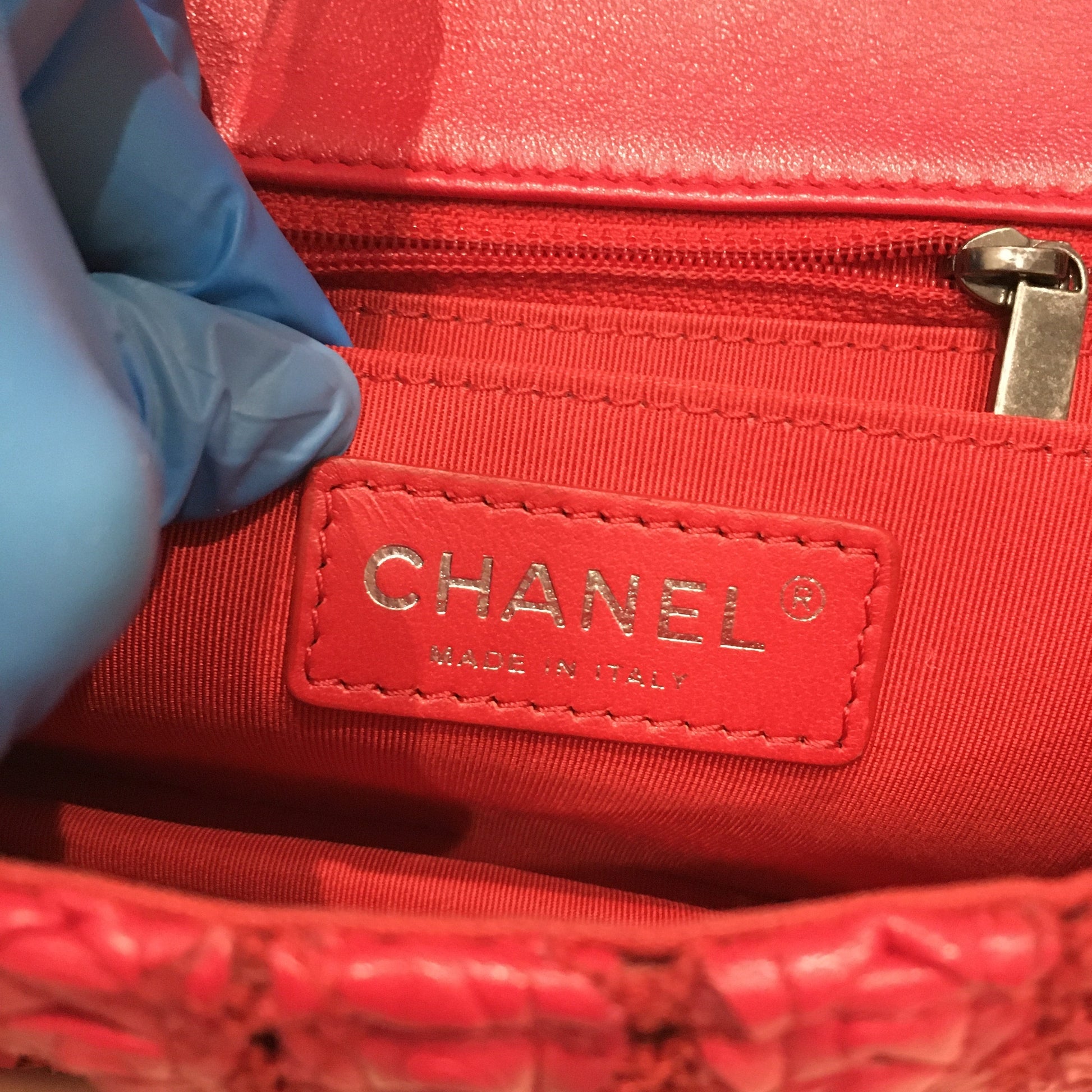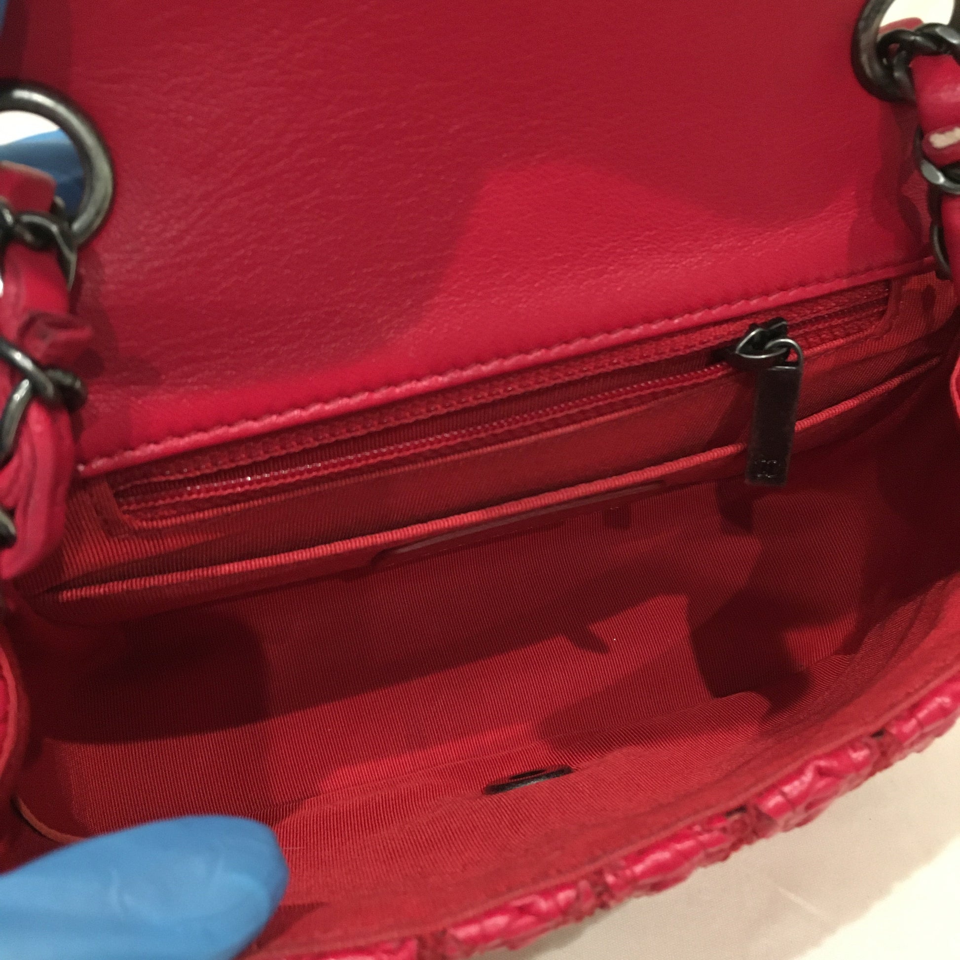 Chanel Red Woven Braided Leather Square Single Flap Crossbody Bag Size/Measurements:
