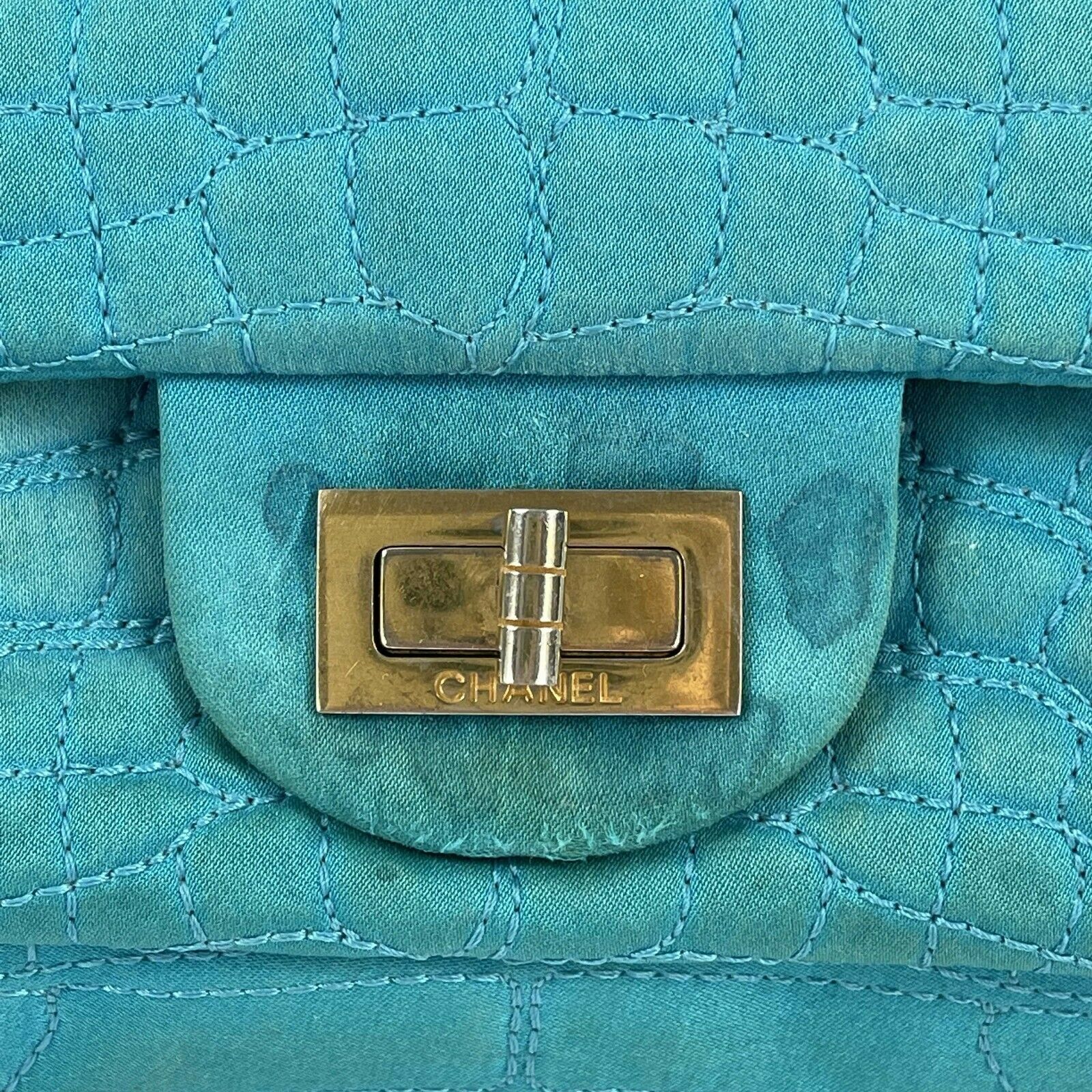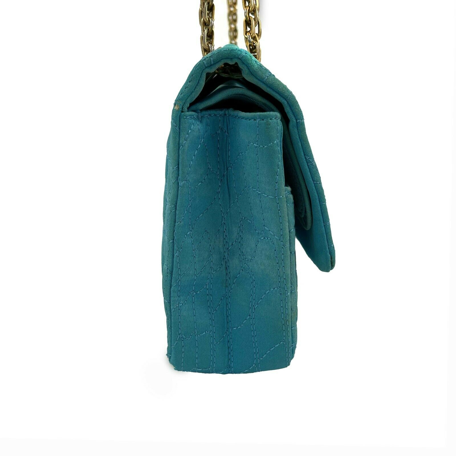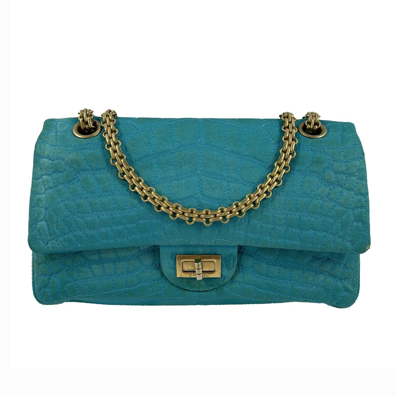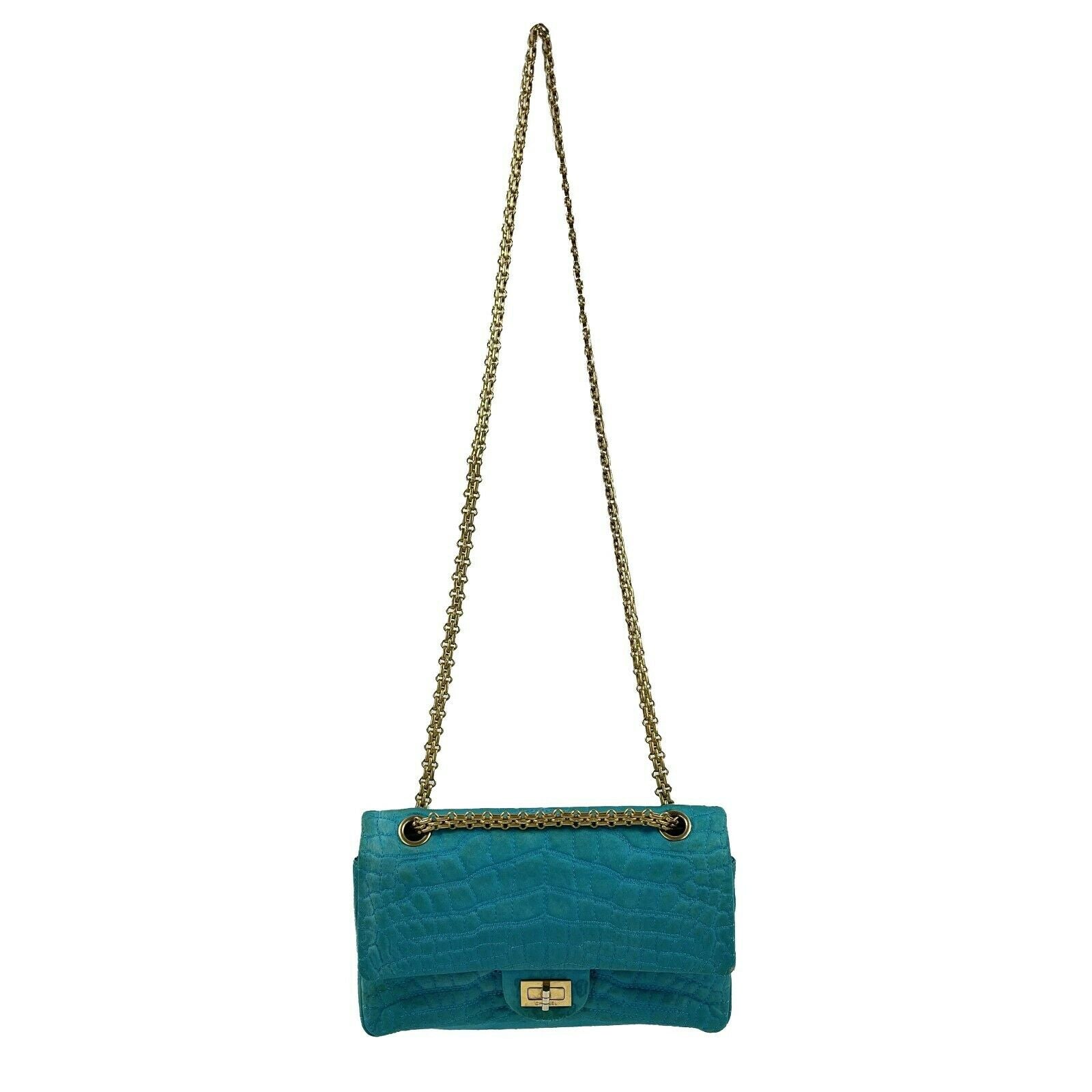 CHANEL - Reissue Small 2.55 Satin Crocodile Stitch - Turquoise / Gold Crossbody